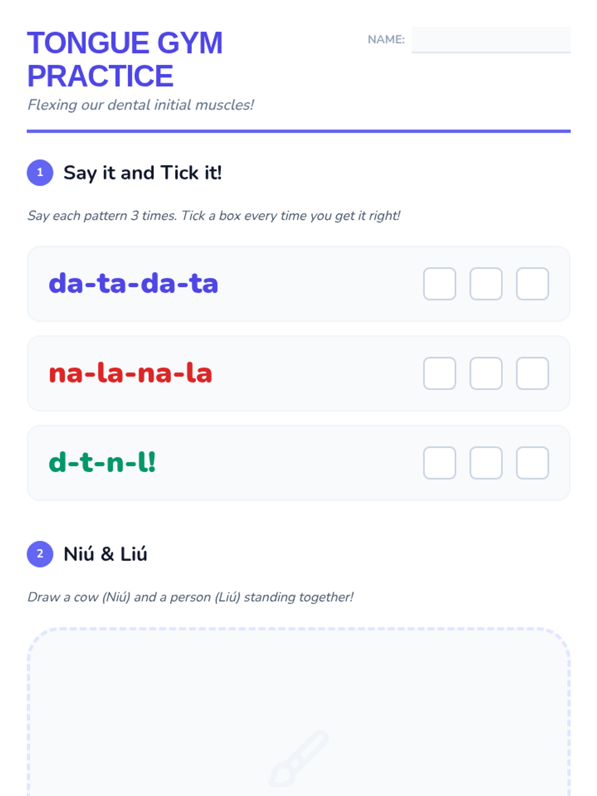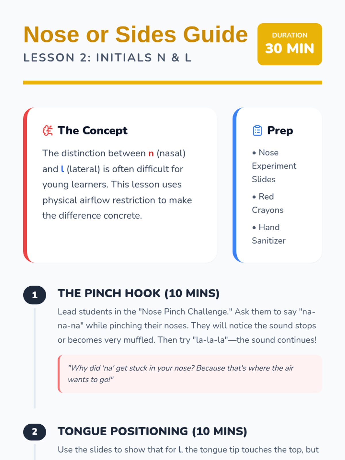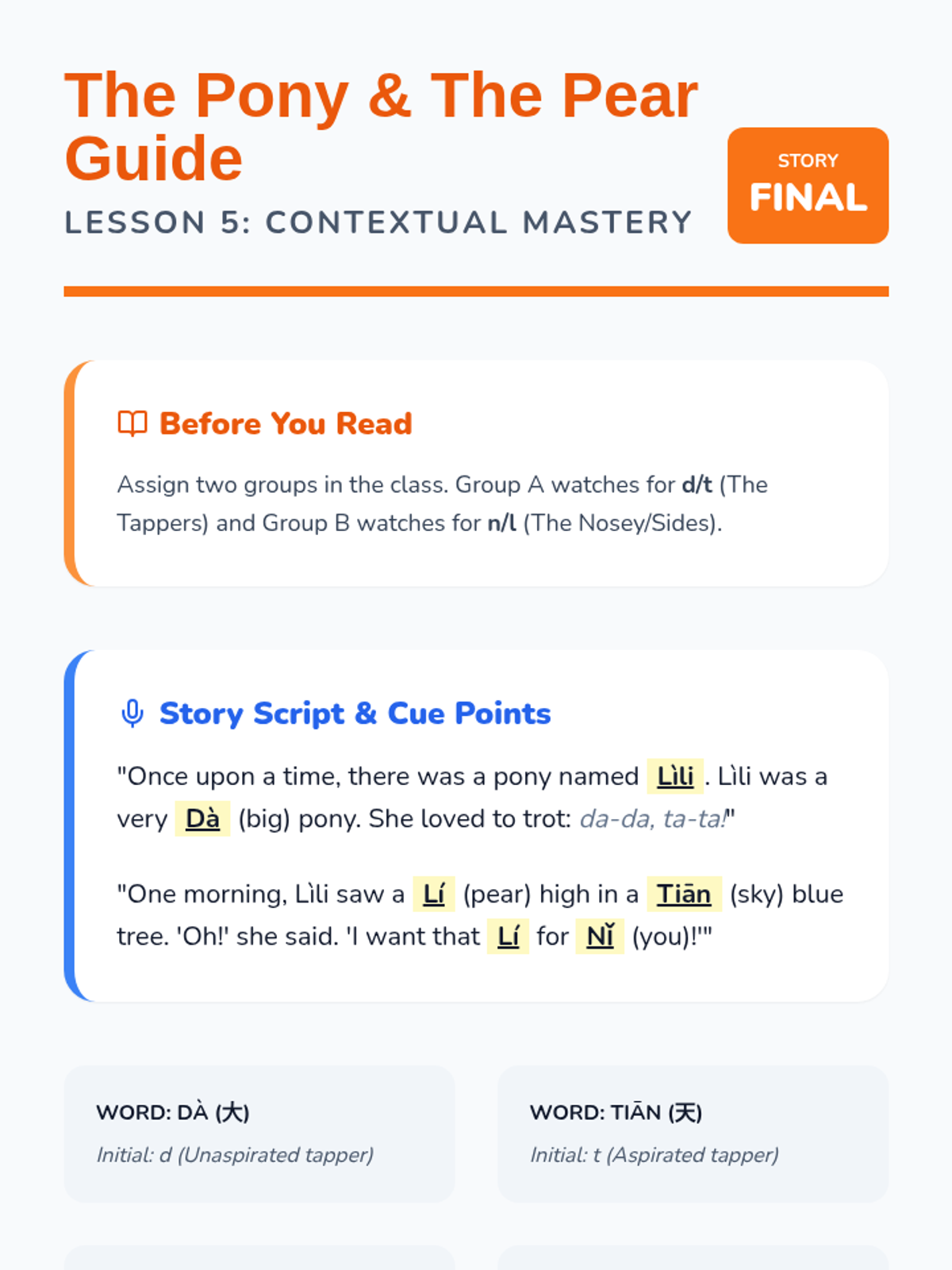 A fun, kinetic sequence for Kindergarteners to master the dental Pinyin initials (d, t, n, l). Students use sensory experiments, games, and storytelling to understand tongue placement and airflow.