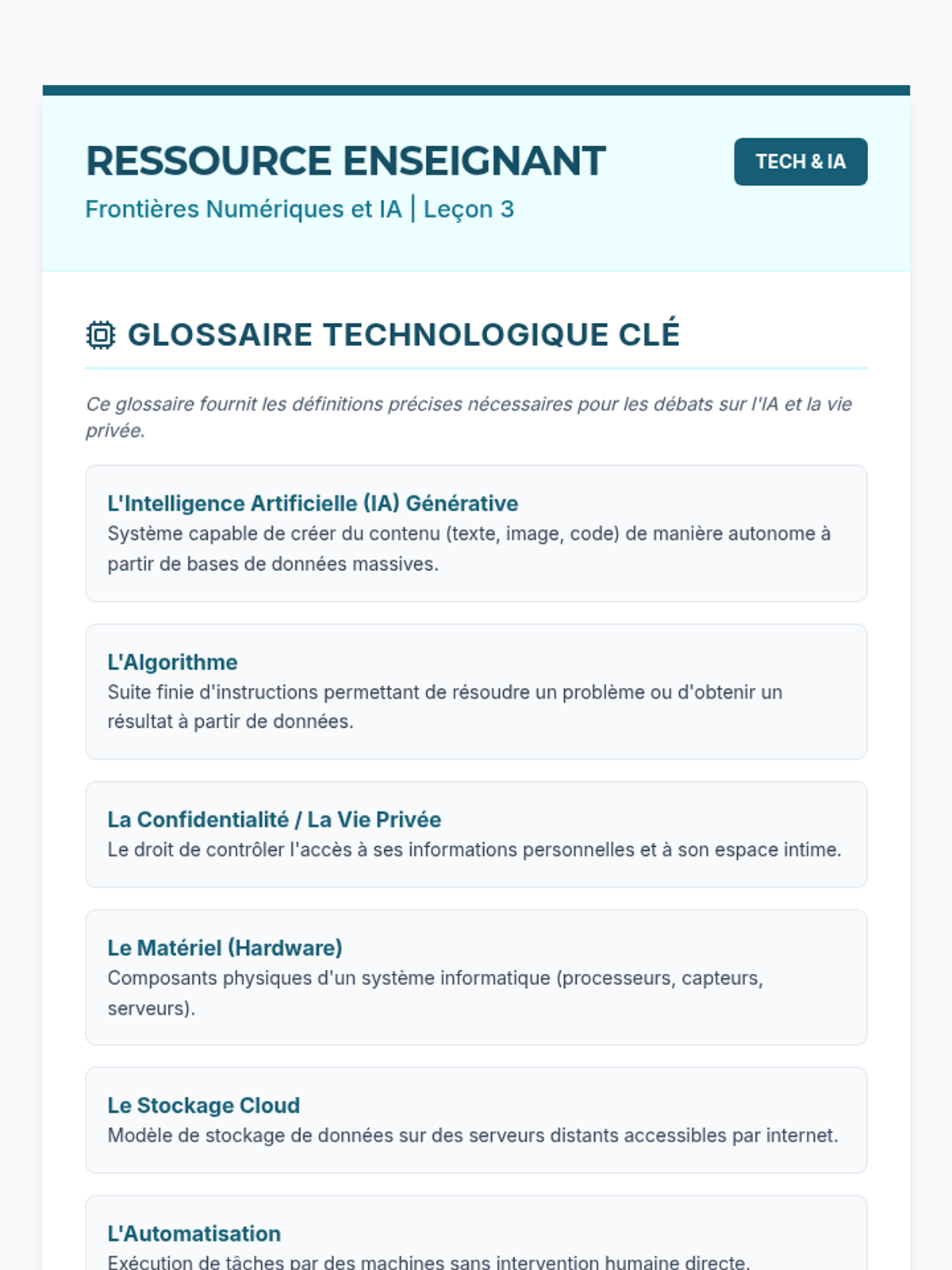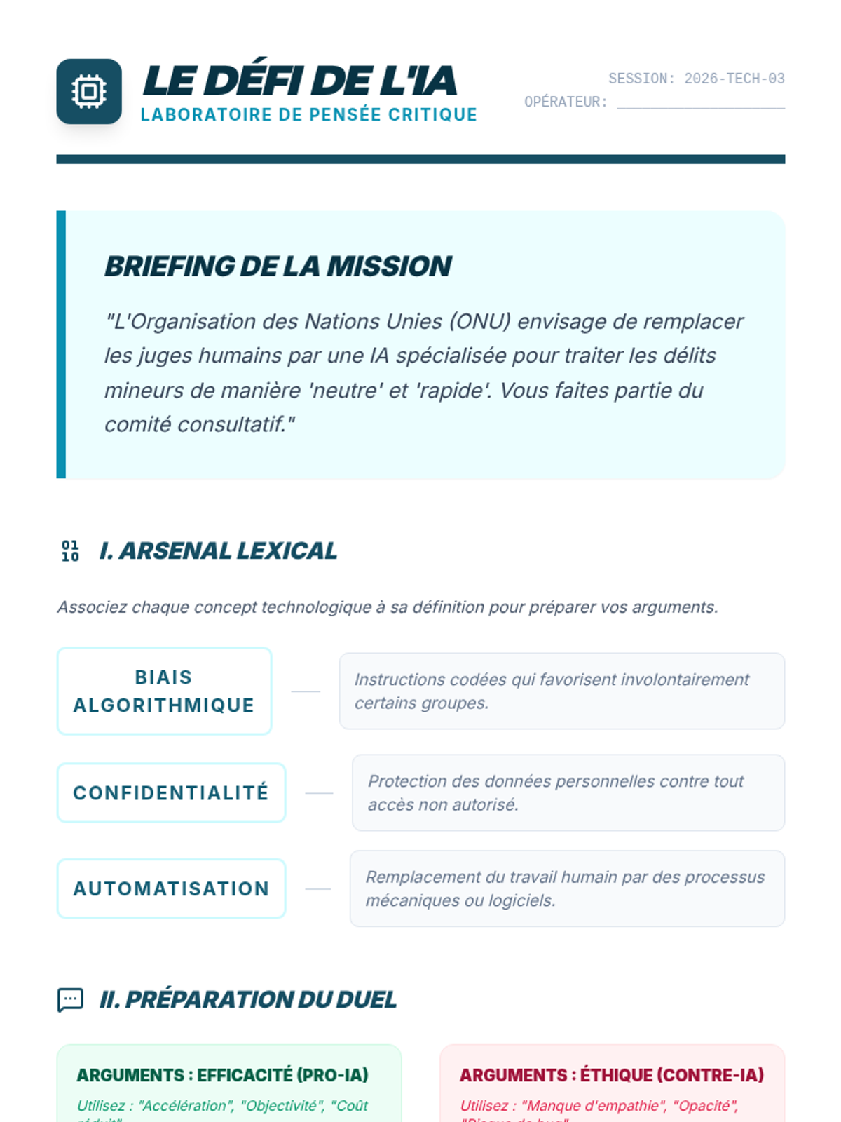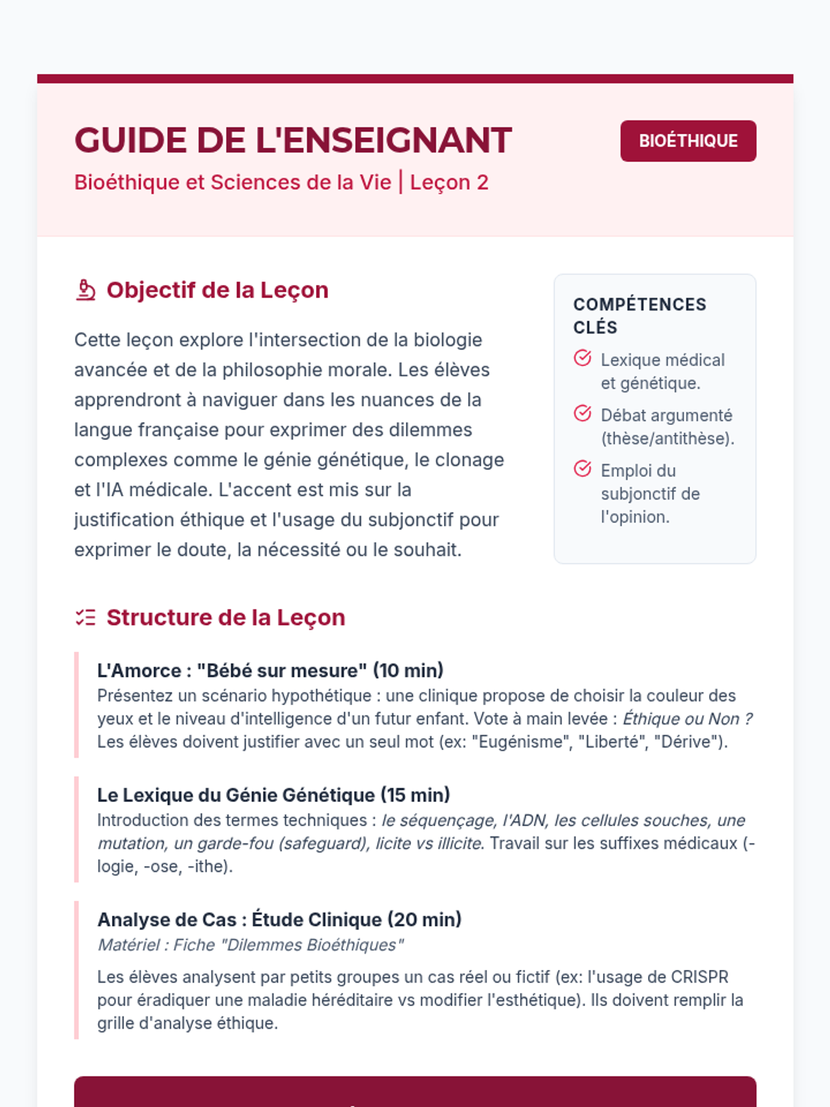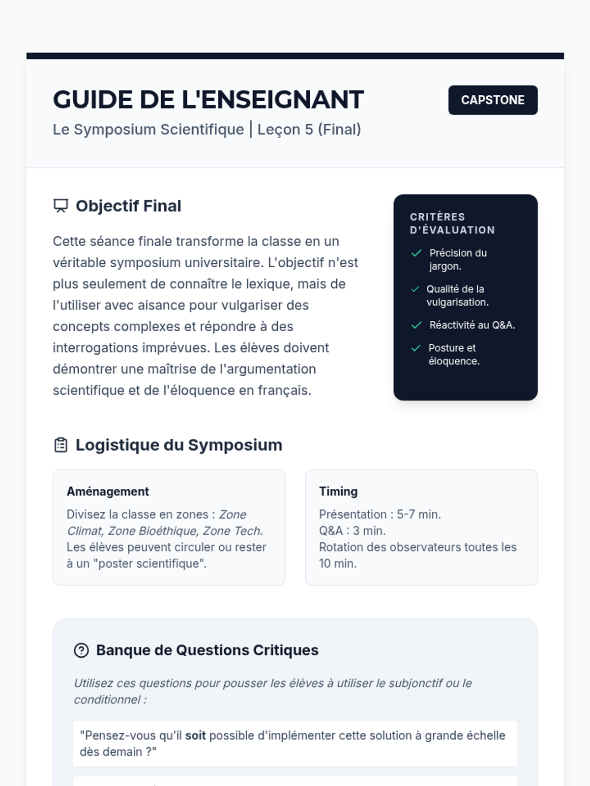 This advanced French sequence equips 11th-grade students with the technical vocabulary and grammatical structures necessary to discuss environmental science, bioethics, and technological innovation. Students progress from descriptive tasks to complex ethical debates and scientific presentations, bridging the gap between language proficiency and STEM topics.