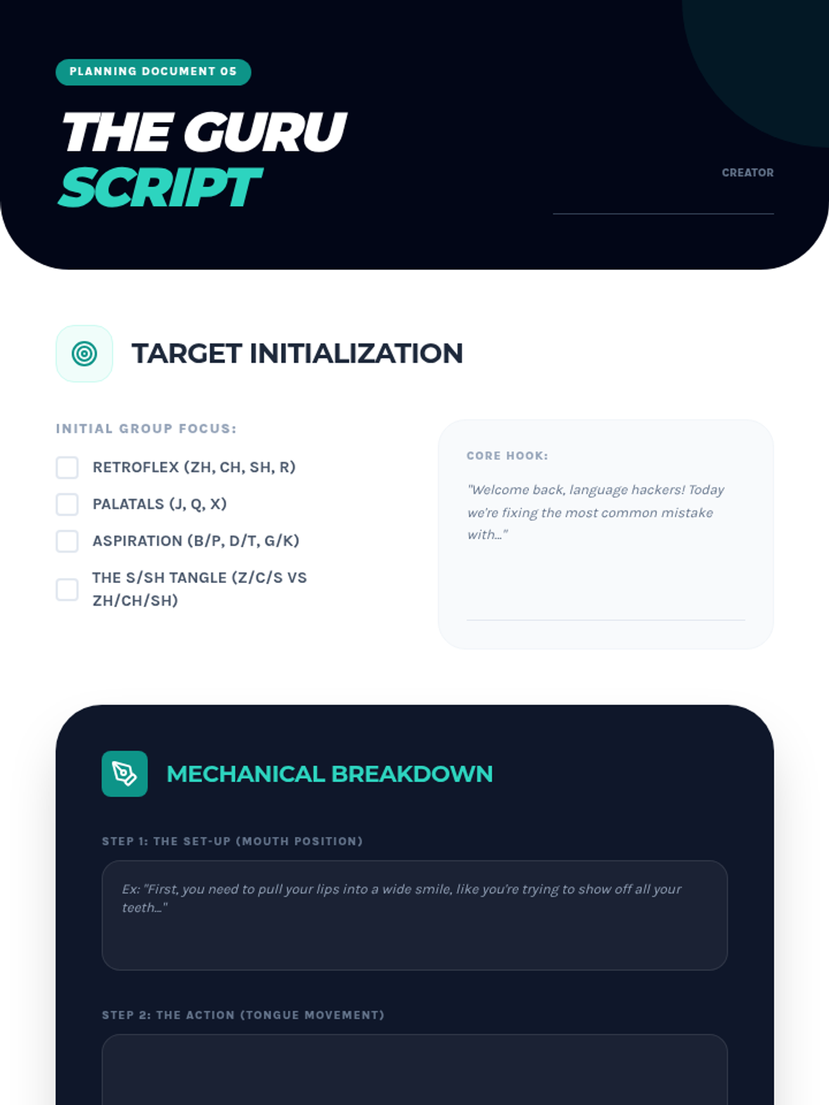 An inquiry-based exploration of Mandarin Chinese initials (consonants), focusing on articulatory phonetics, aspiration control, and tongue positioning for retroflex and palatal sounds.