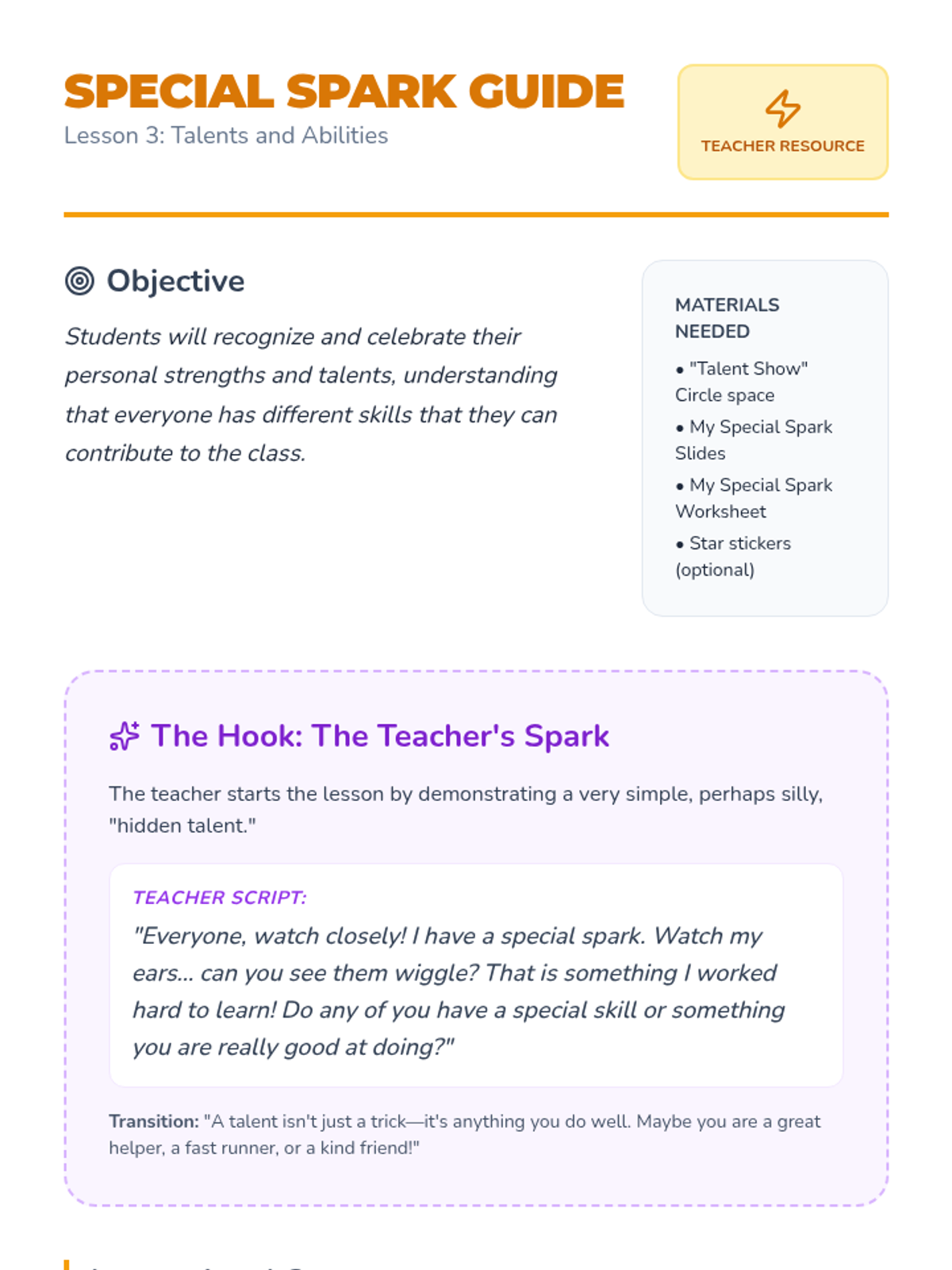 A multi-day social-emotional learning sequence that teaches students how to identify, manage, and communicate difficult emotions like anger and conflict using the metaphor of an 'Emotional Backpack'. Designed with high-visual support for EAL and neurodivergent learners.