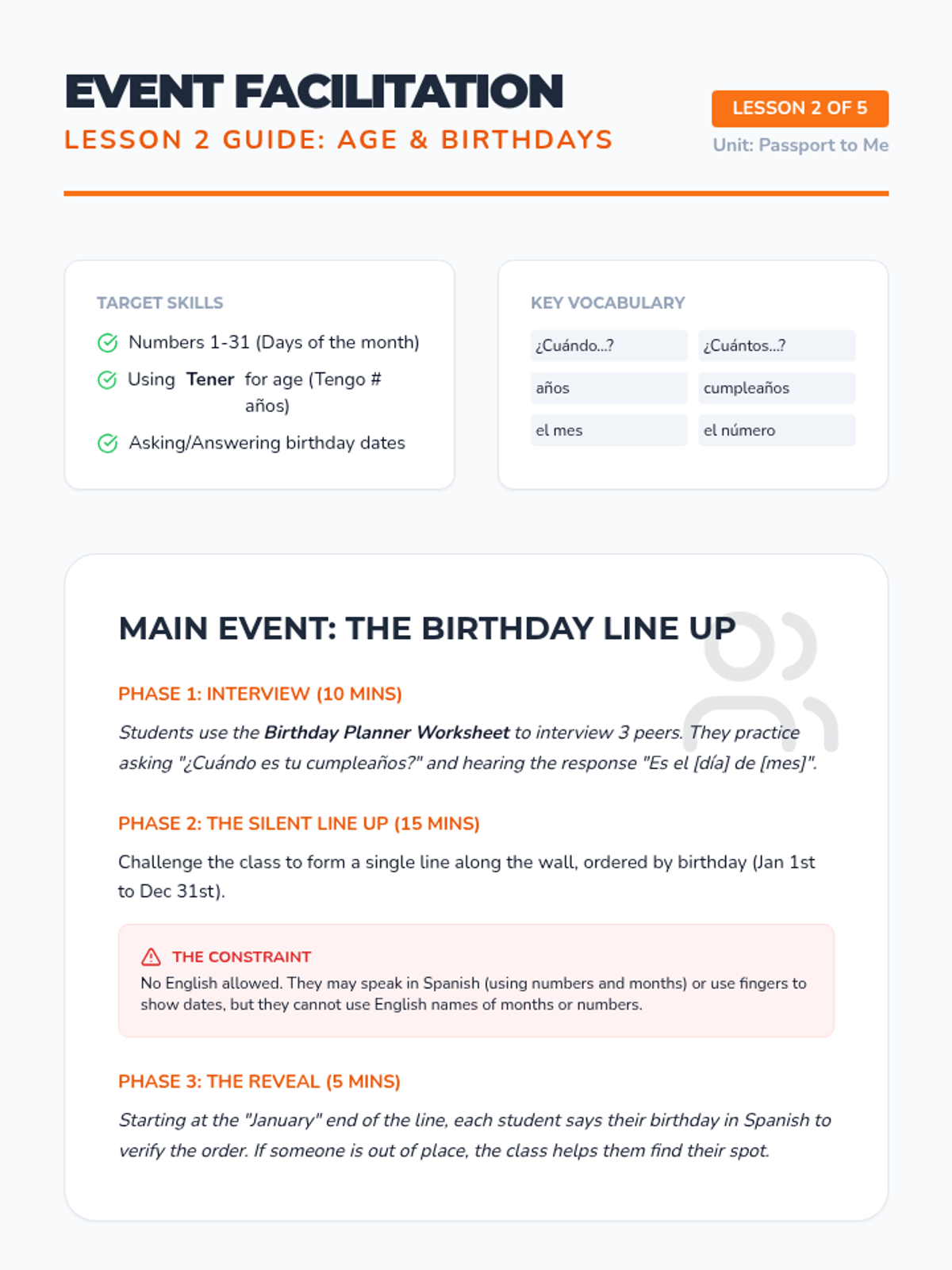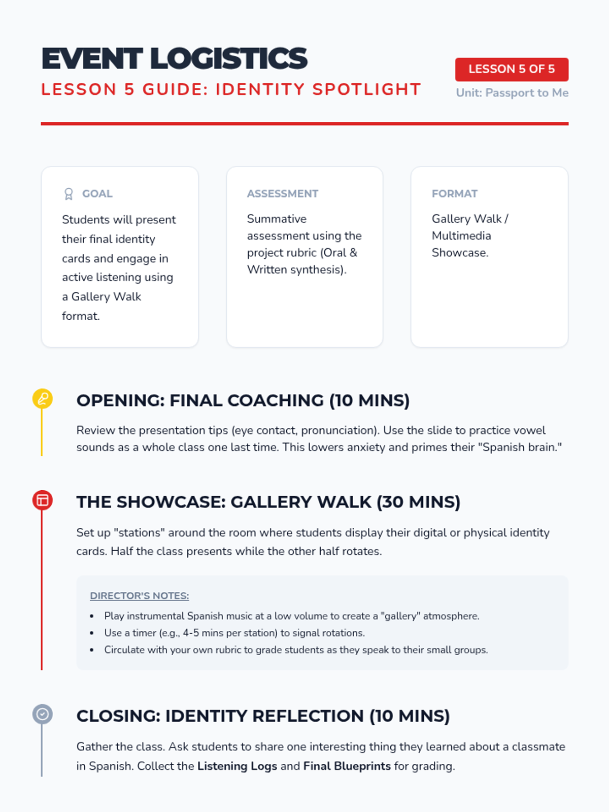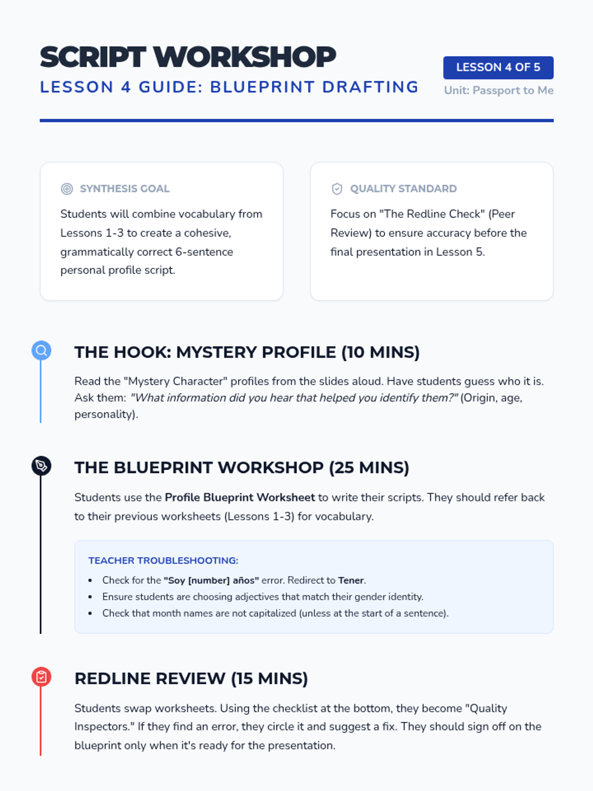 A project-based unit where 6th-grade students learn to articulate their identity, origin, age, and personality in Spanish using 'Ser', 'Tener', and 'Estar'. The sequence culminates in a multimedia 'All About Me' presentation.