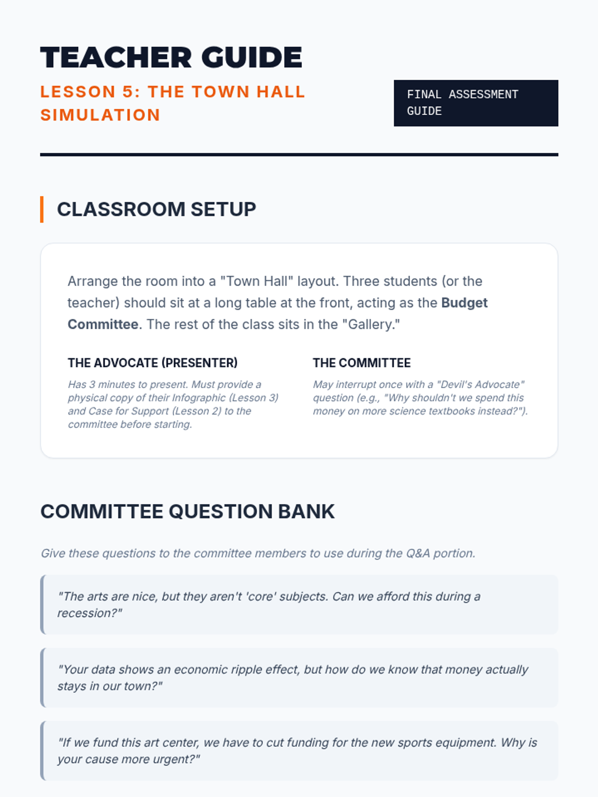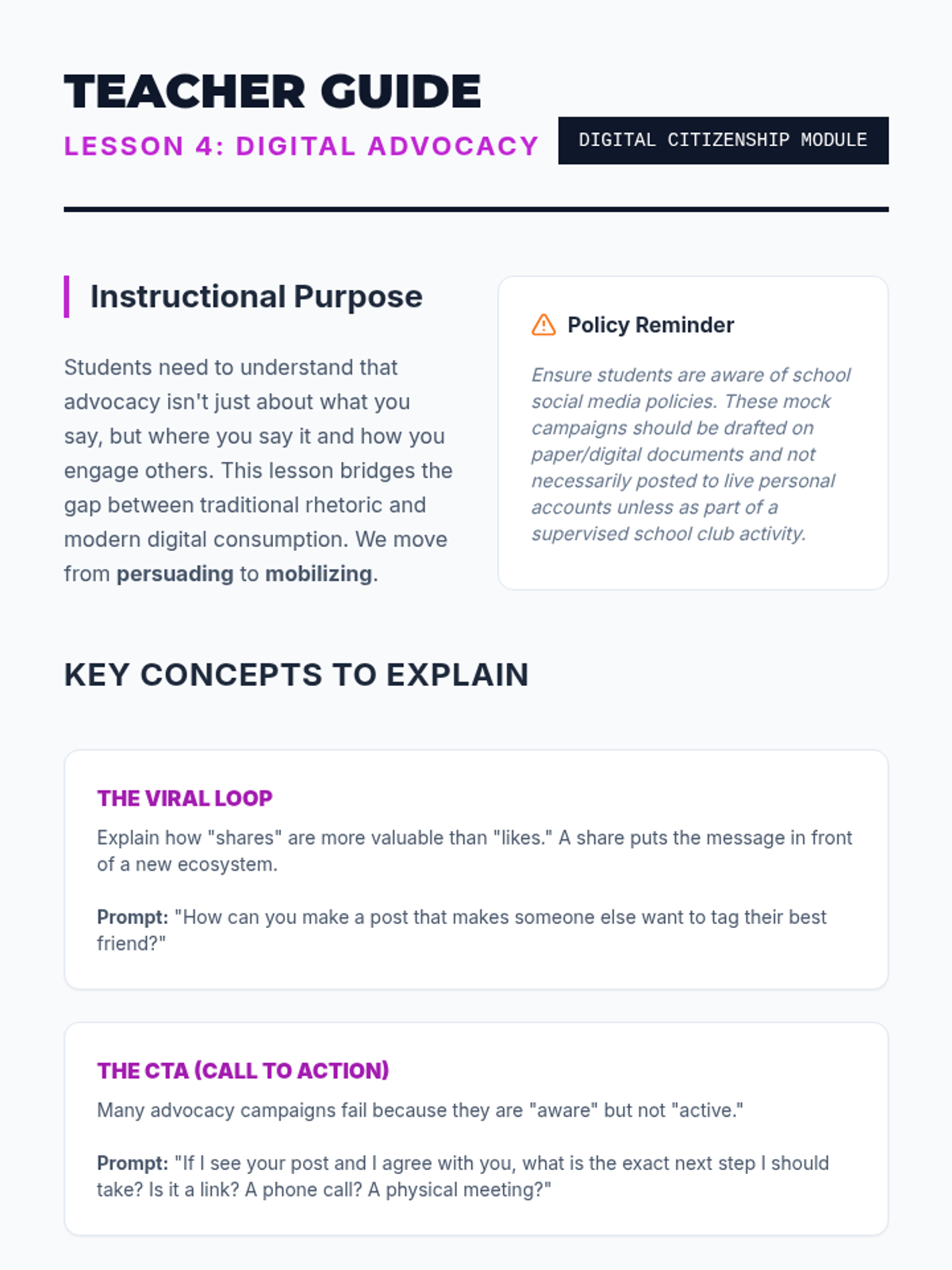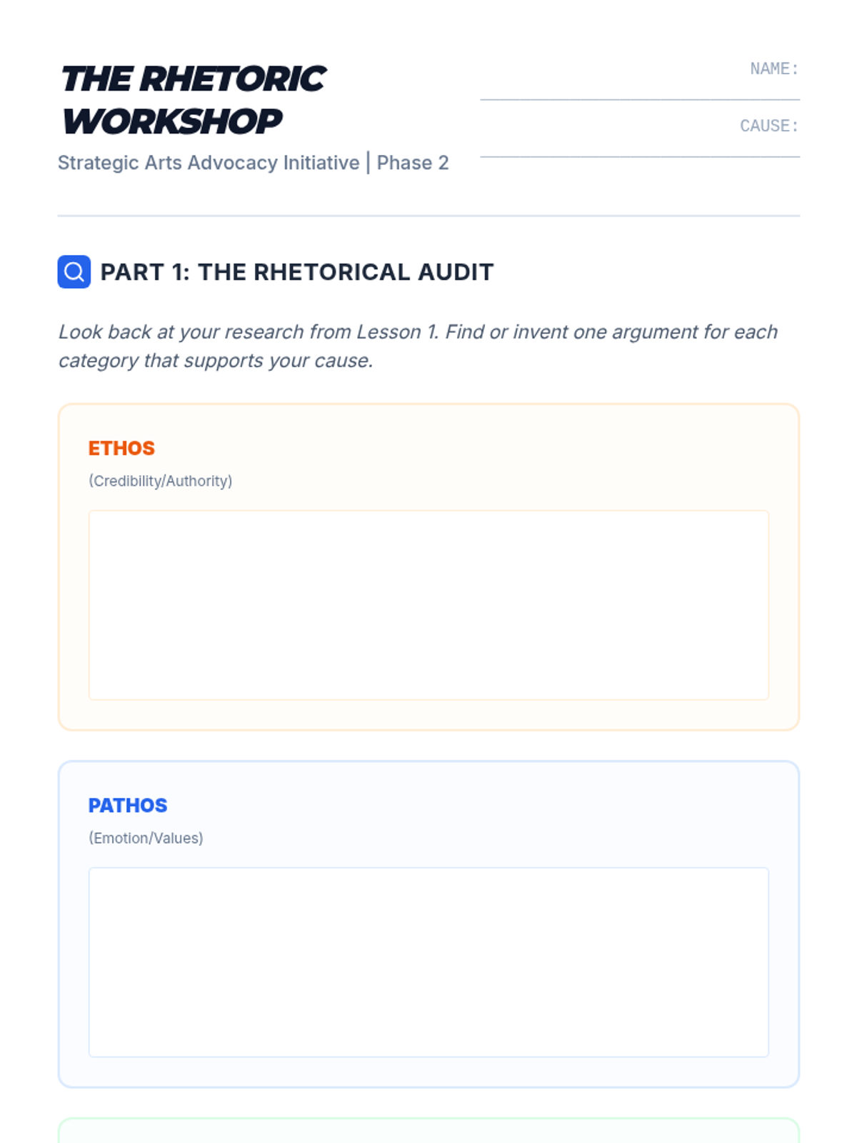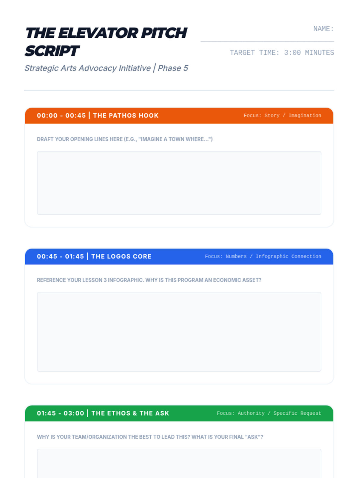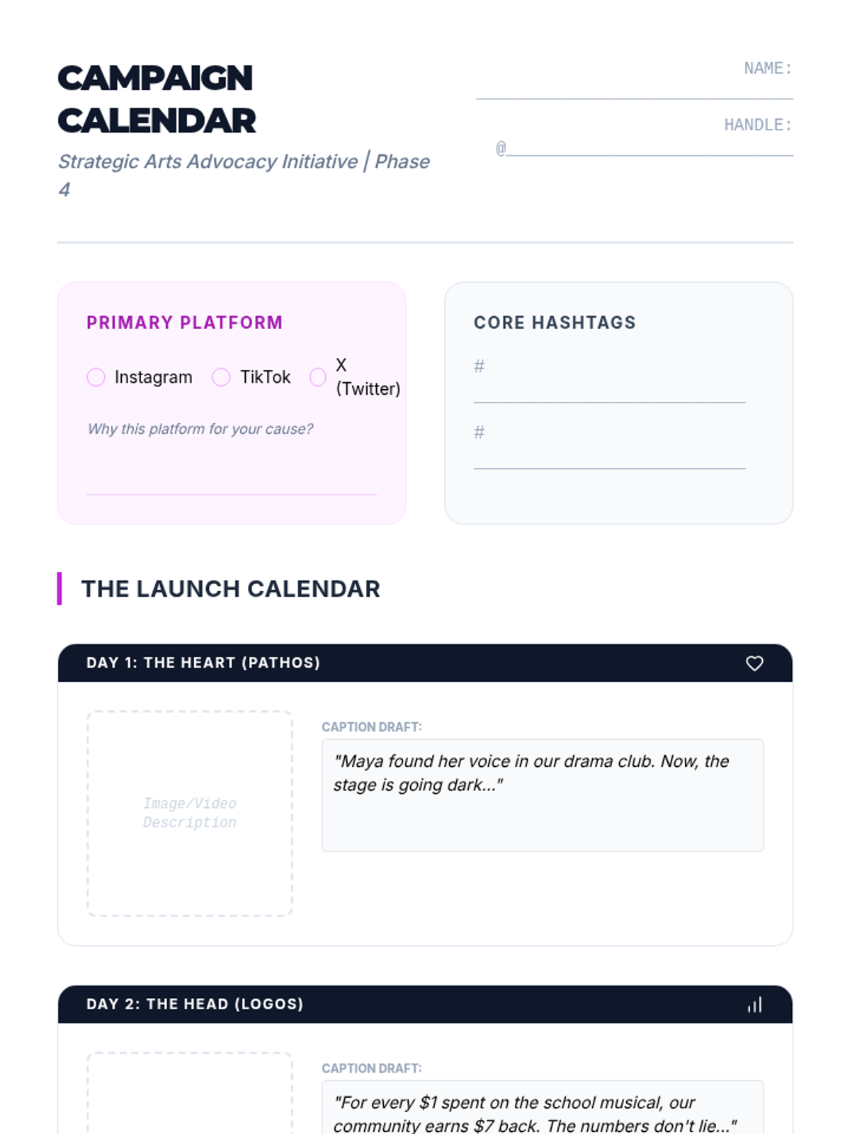 Students transition from passive observers of the arts to active advocates by developing a strategic communications campaign for a local arts initiative. The sequence covers stakeholder mapping, rhetorical strategies, data visualization, digital campaigning, and public speaking.