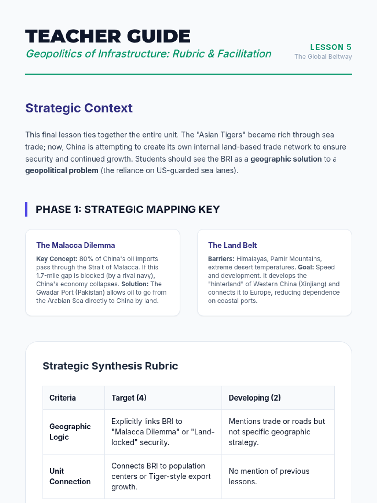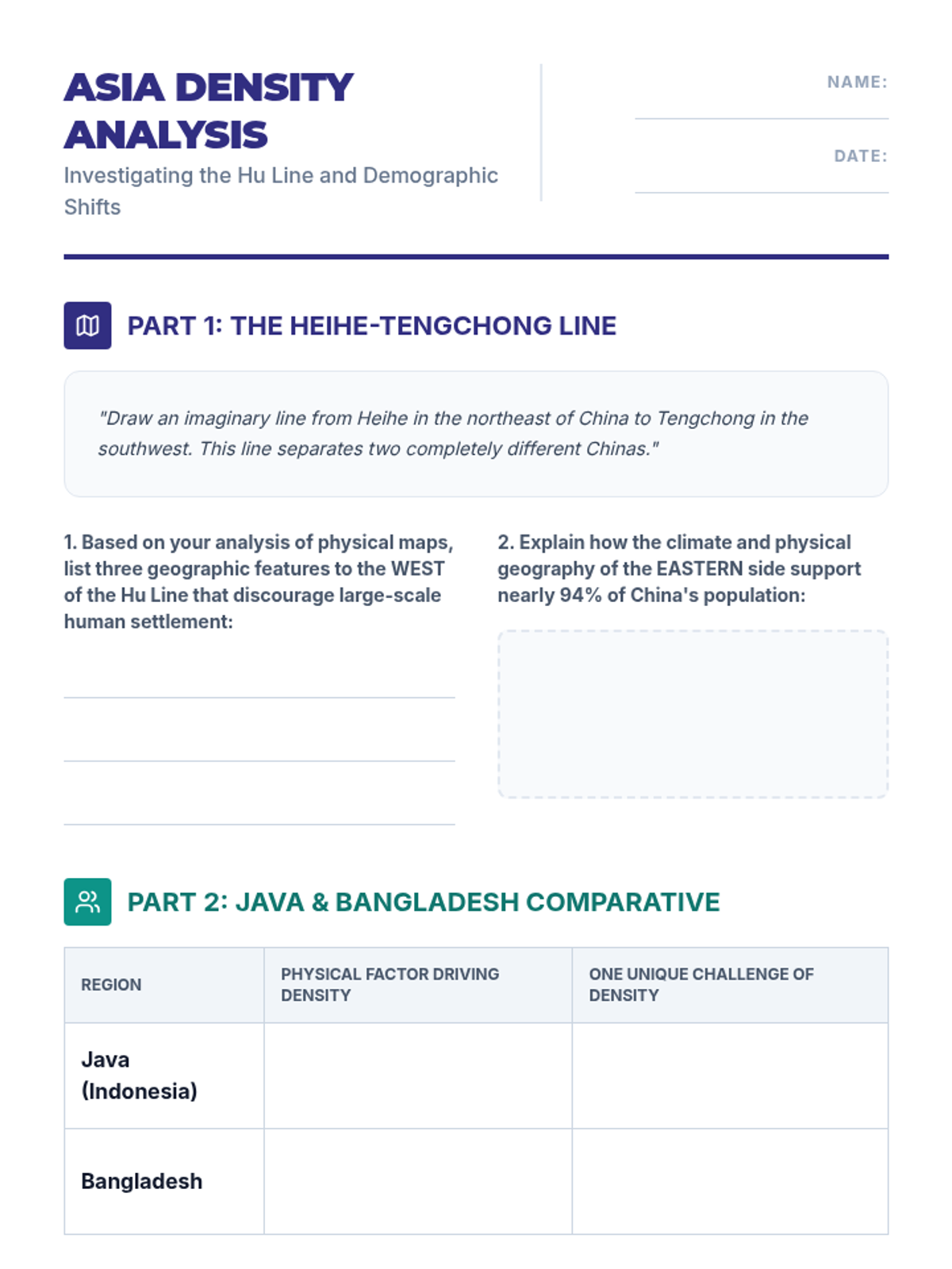 This 10th-grade geography sequence explores the human geography of Asia, focusing on the relationship between high population density, rapid urbanization, and economic growth. Students analyze demographic trends, the 'Asian Tiger' economic models, the challenges of megacities, and the geopolitical impact of modern infrastructure projects like the Belt and Road Initiative.
