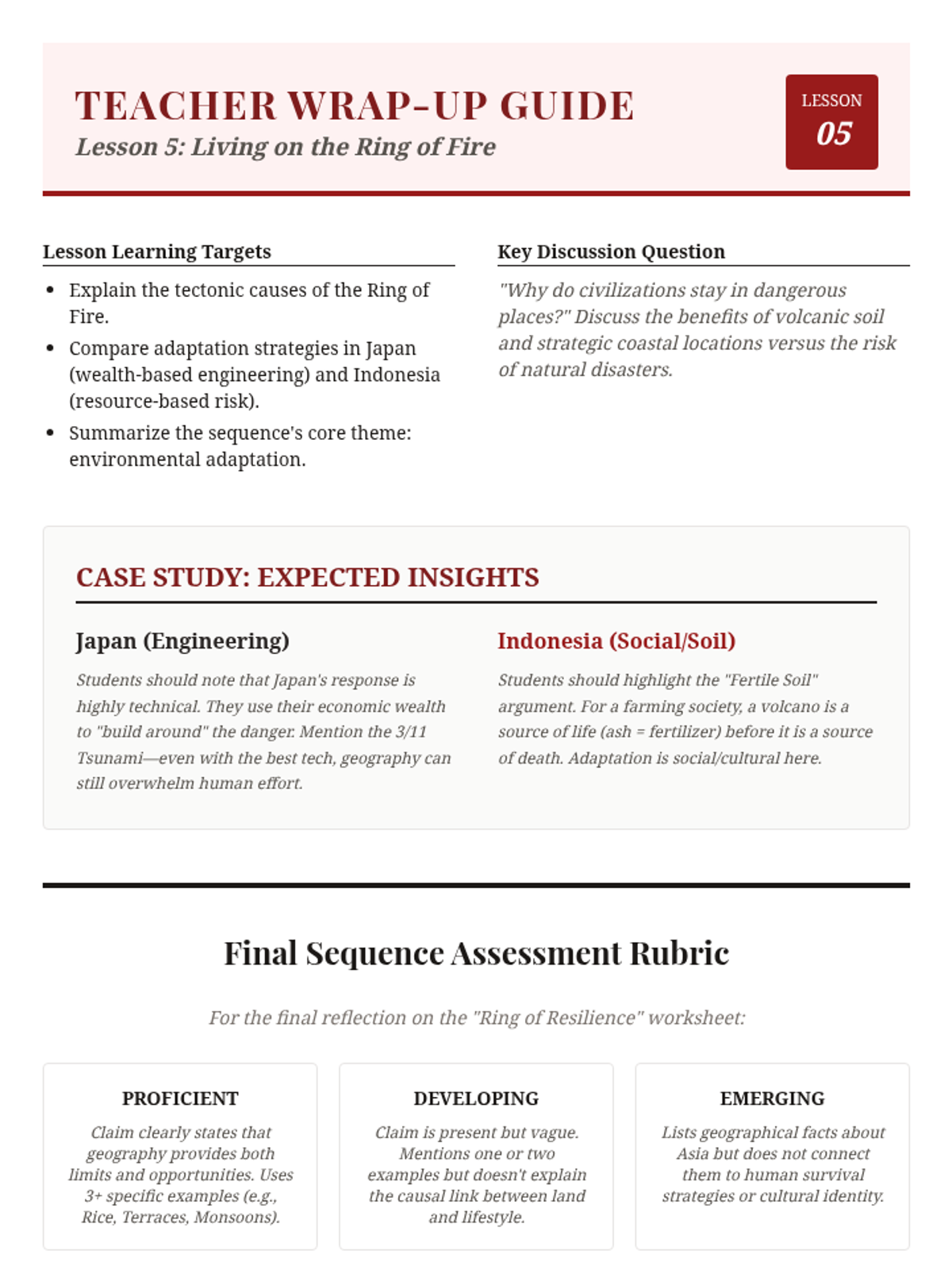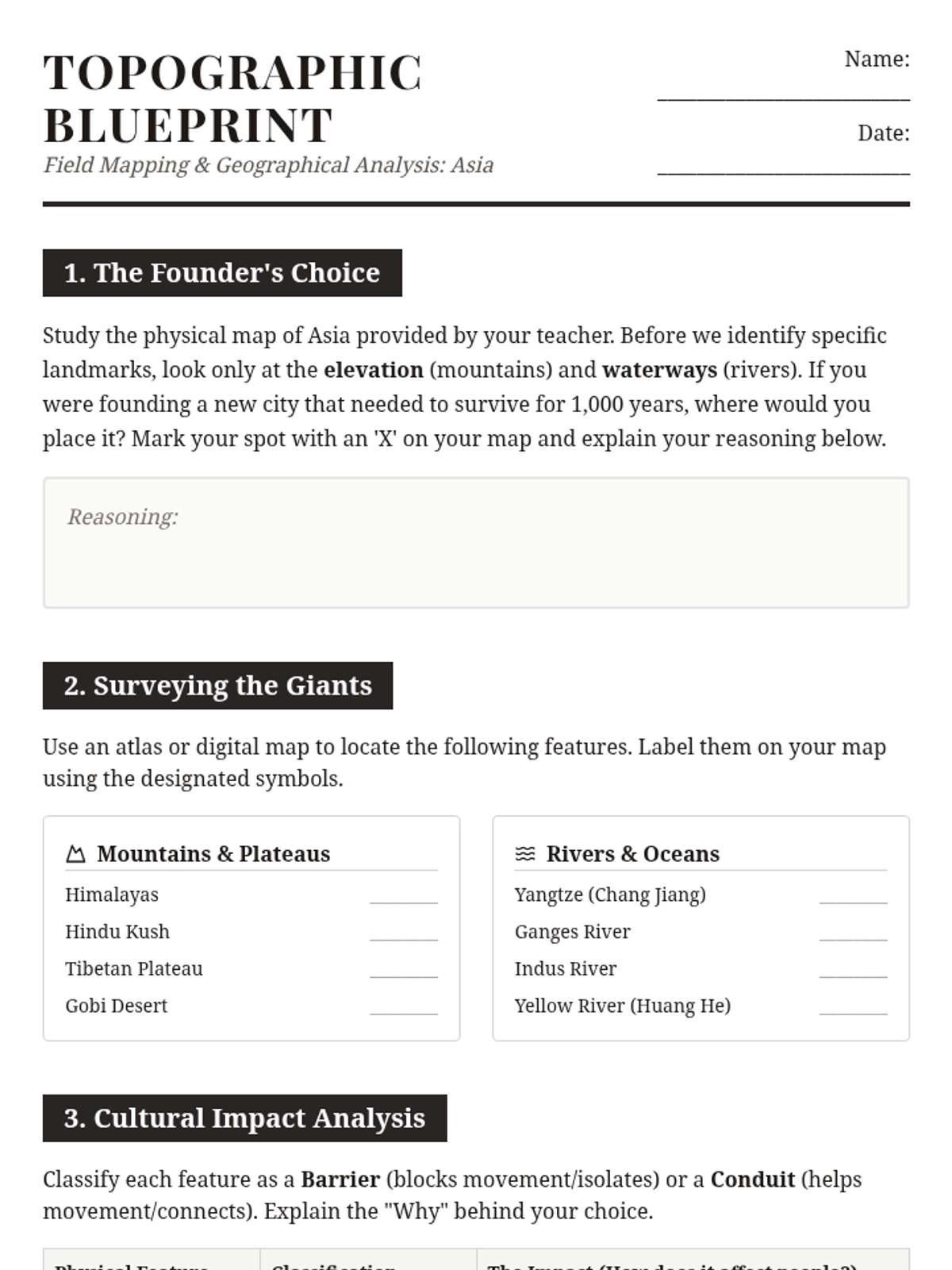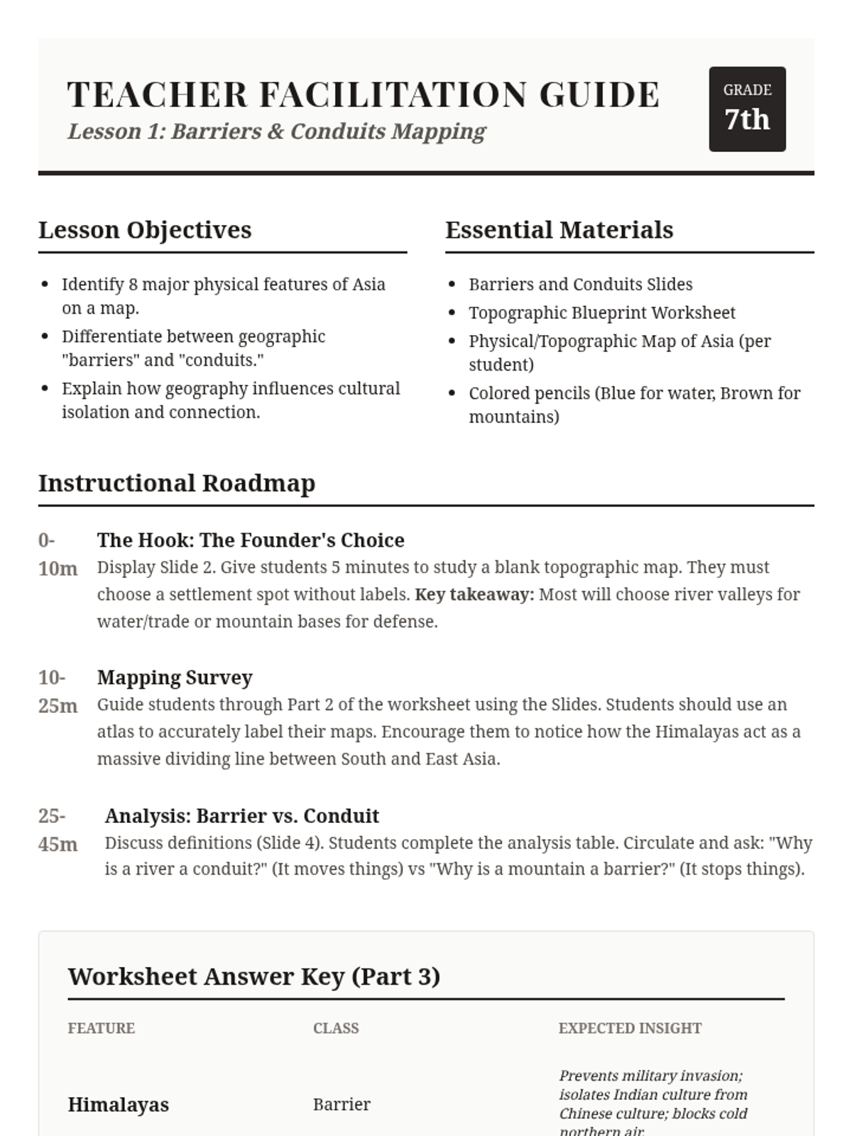 This 7th-grade geography sequence explores how Asia's diverse physical features—from the Himalayas to the Monsoon systems—dictate human settlement, agriculture, and culture. Students analyze the causal links between environment and civilization through mapping, simulations, and engineering case studies.
