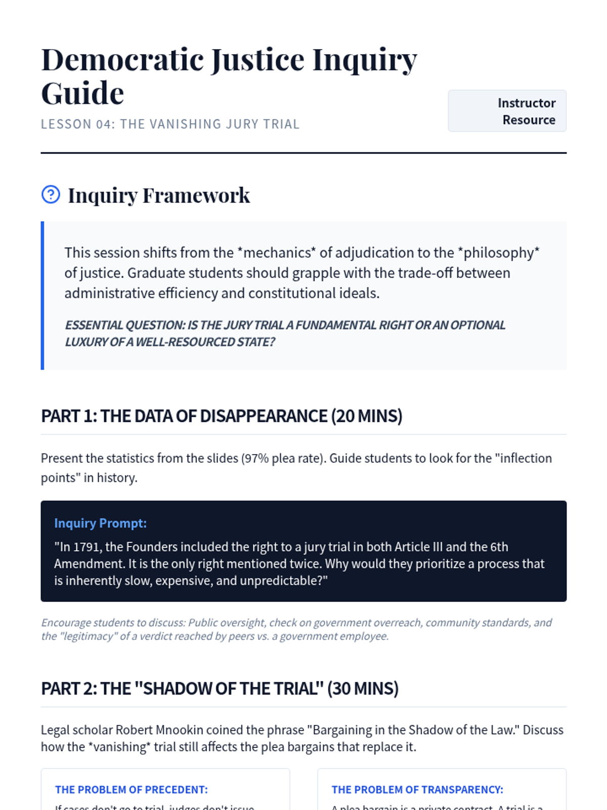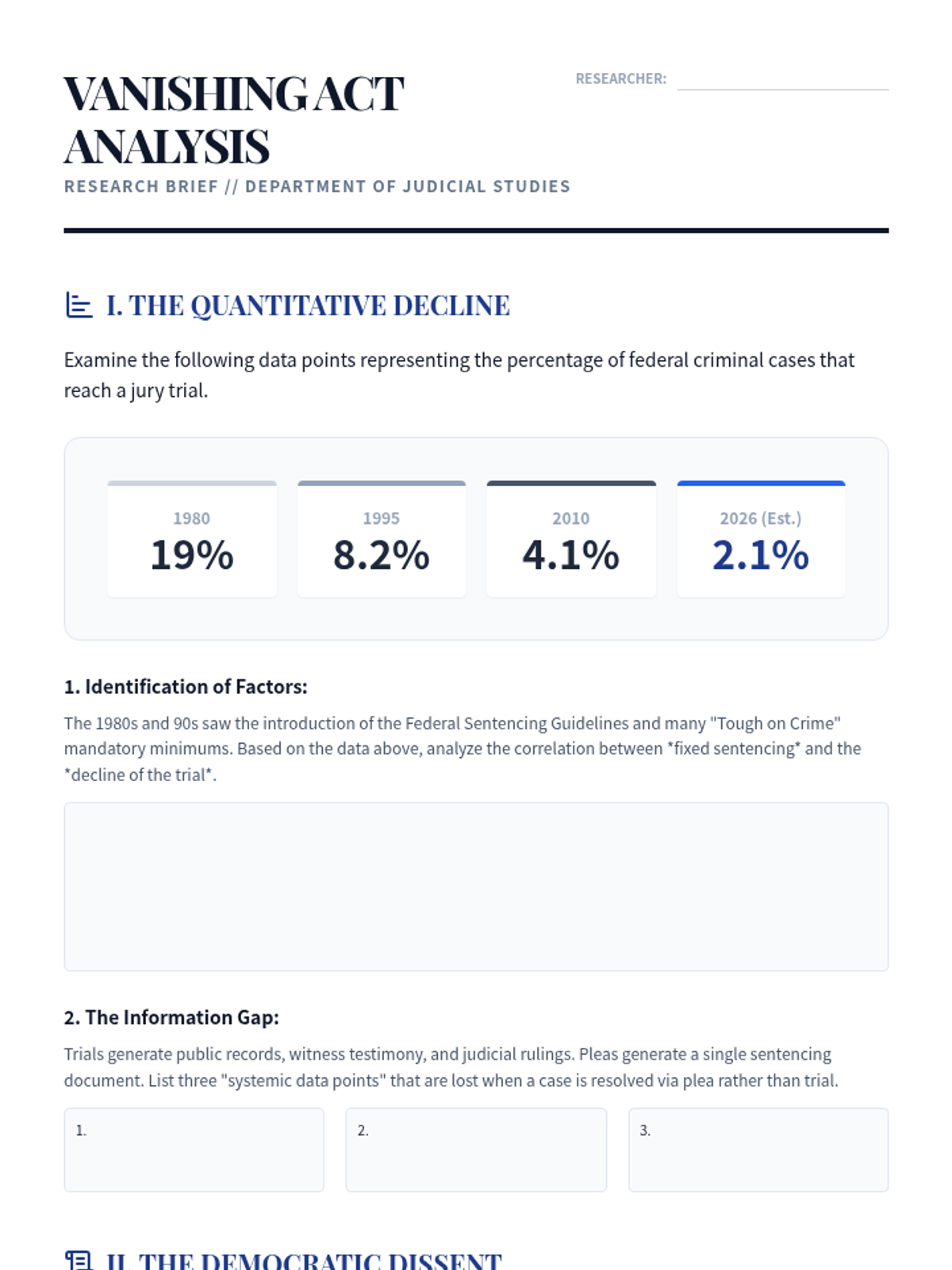 This graduate-level sequence deconstructs the adjudication phase of criminal justice, focusing on the transition from an adversarial to an administrative system. Students analyze pretrial detention, prosecutorial discretion, plea bargaining mechanics, the decline of jury trials, and sentencing disparities.