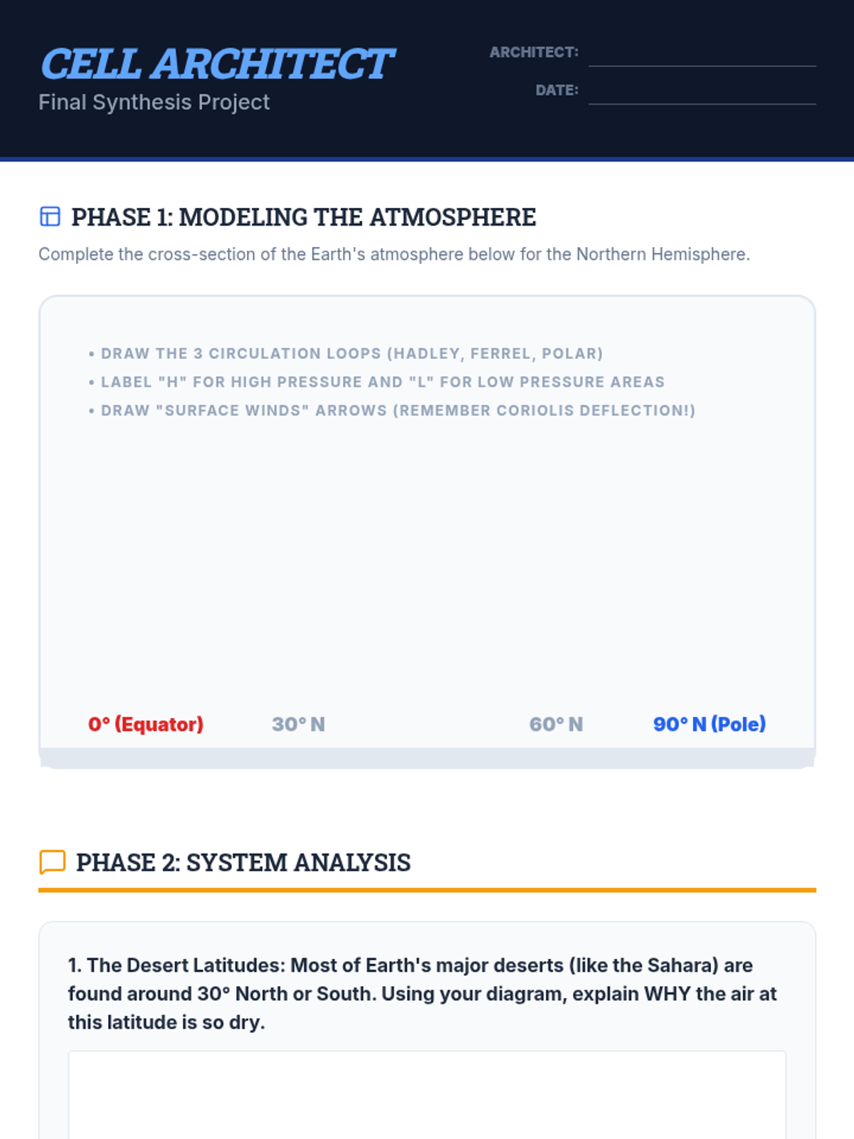 This inquiry-based sequence explores the fundamental physics driving Earth's weather systems, from fluid convection and atmospheric pressure to the Coriolis effect and global circulation cells. Students move from hands-on lab experiments to synthesizing complex systems modeling regional climates.