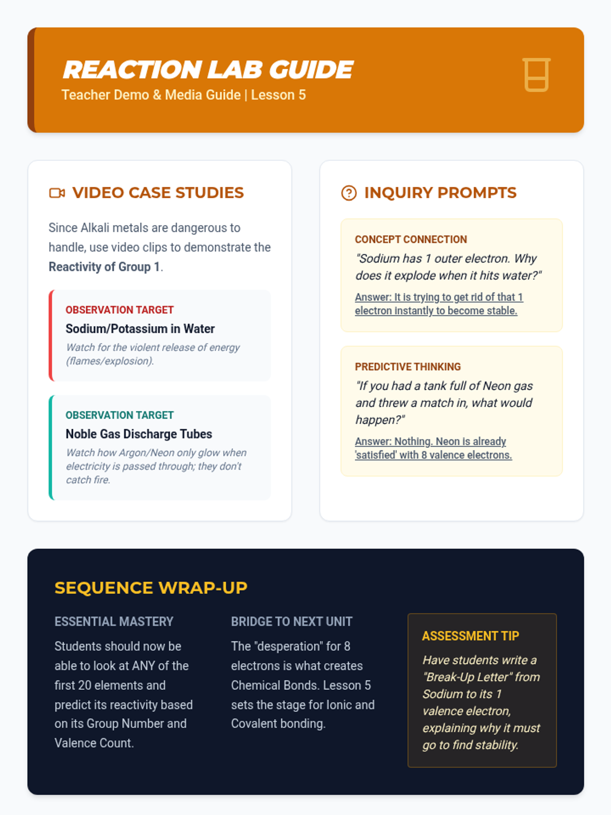 A 5-lesson sequence for 7th-grade students exploring the relationship between atomic structure and the periodic table. Students will master electron configurations, Bohr models, Lewis dot structures, and the octet rule to understand chemical reactivity and bonding.