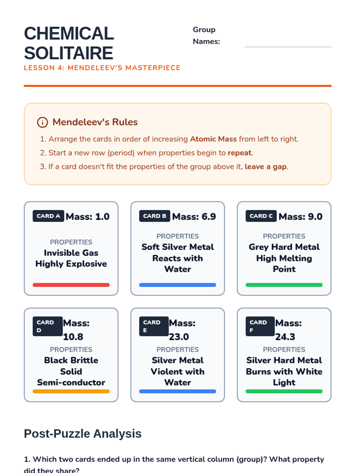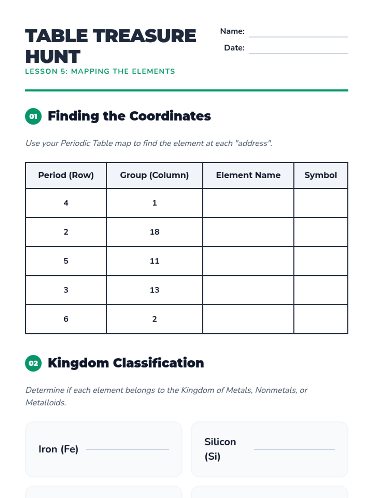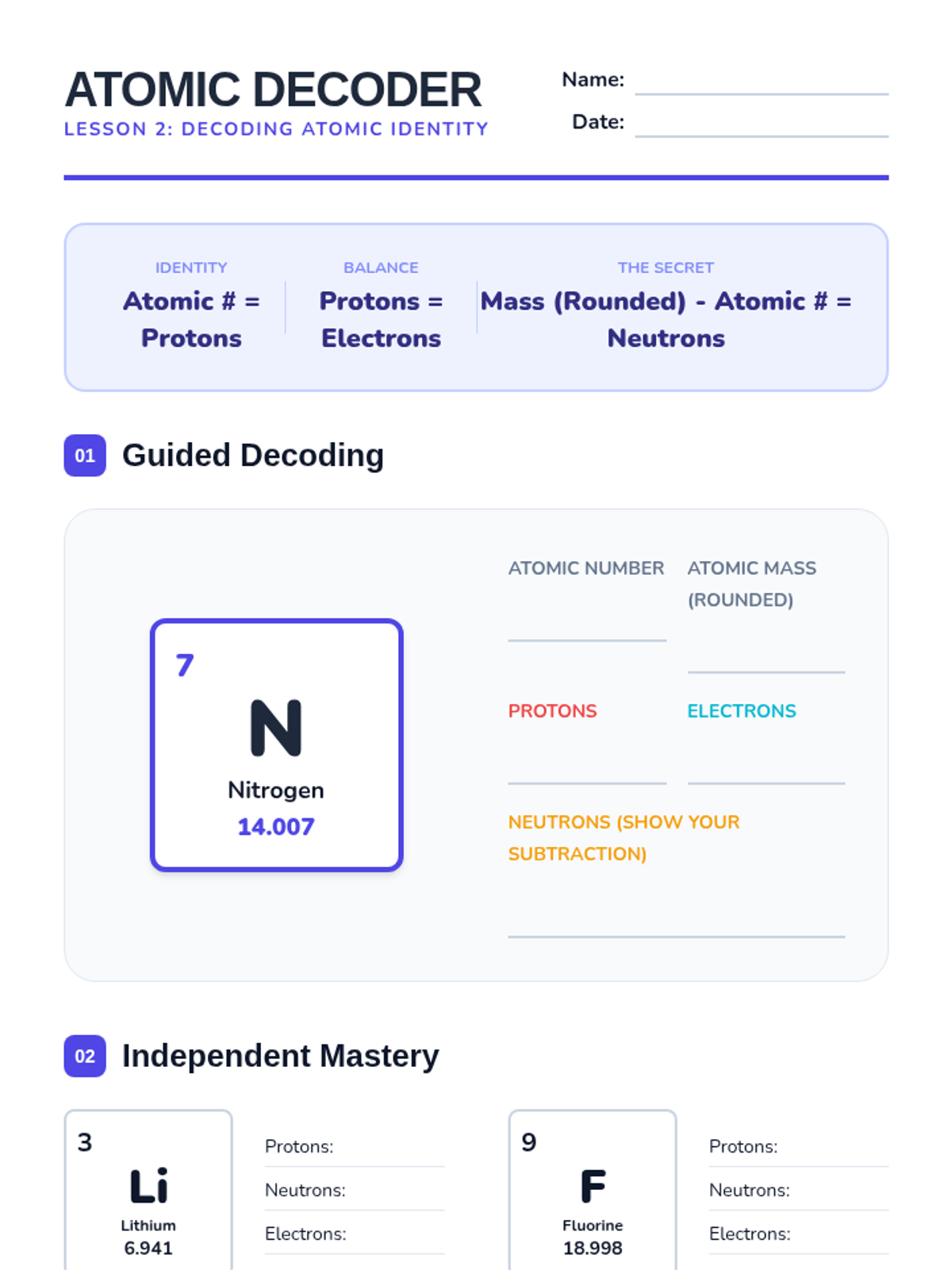 This sequence introduces students to the fundamental building blocks of matter and the logical organization of the Periodic Table. Students progress from subatomic particles to the predictive power of element classification.