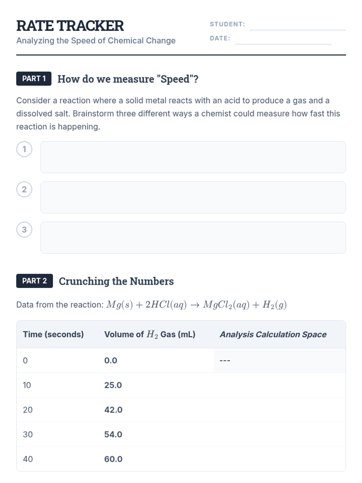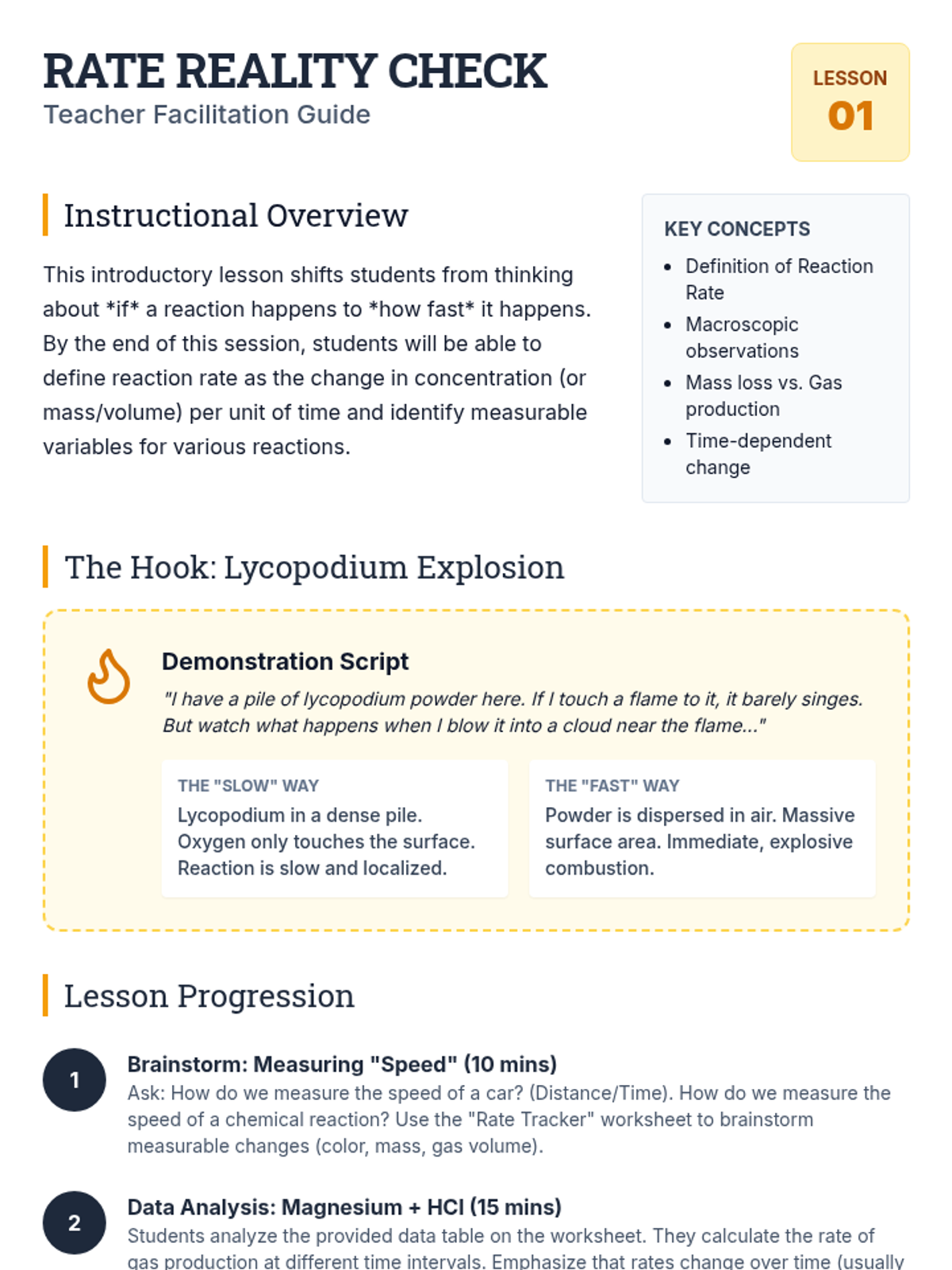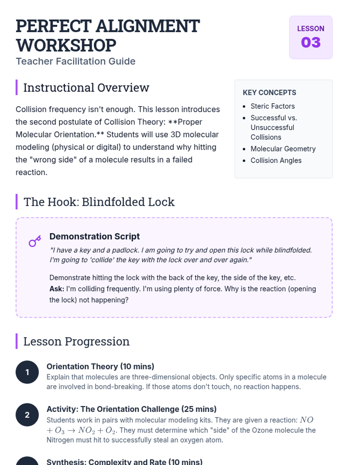 A comprehensive unit on chemical kinetics for 10th-grade chemistry. Students explore reaction rates through the lens of Collision Theory, molecular orientation, and Activation Energy, culminating in the interpretation of Maxwell-Boltzmann distribution curves.