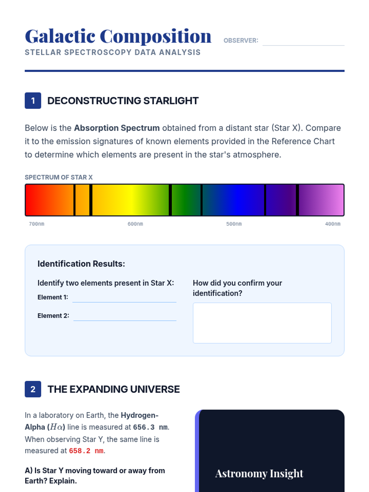 This sequence explores the physics of atomic spectroscopy, linking electron transitions to the emission and absorption of light. Students investigate how spectral lines serve as unique chemical fingerprints, allowing scientists to identify elements in laboratory samples and distant stars alike.