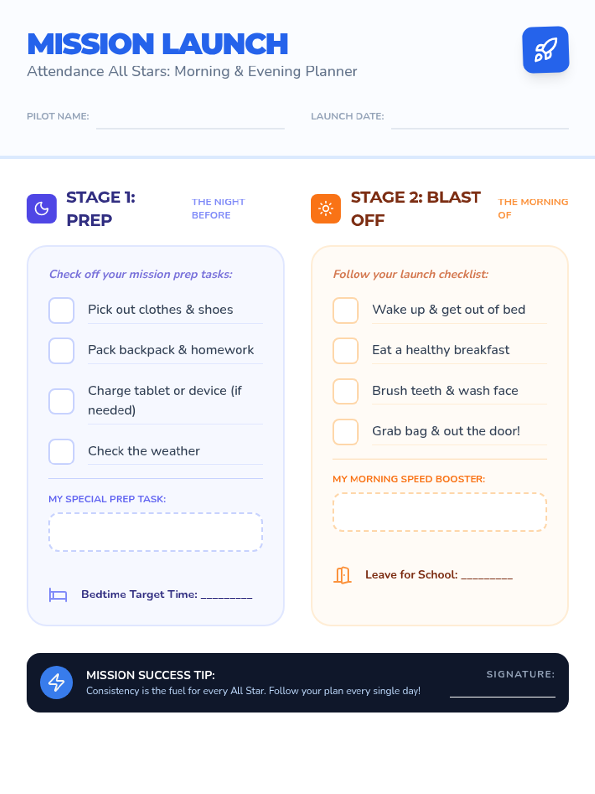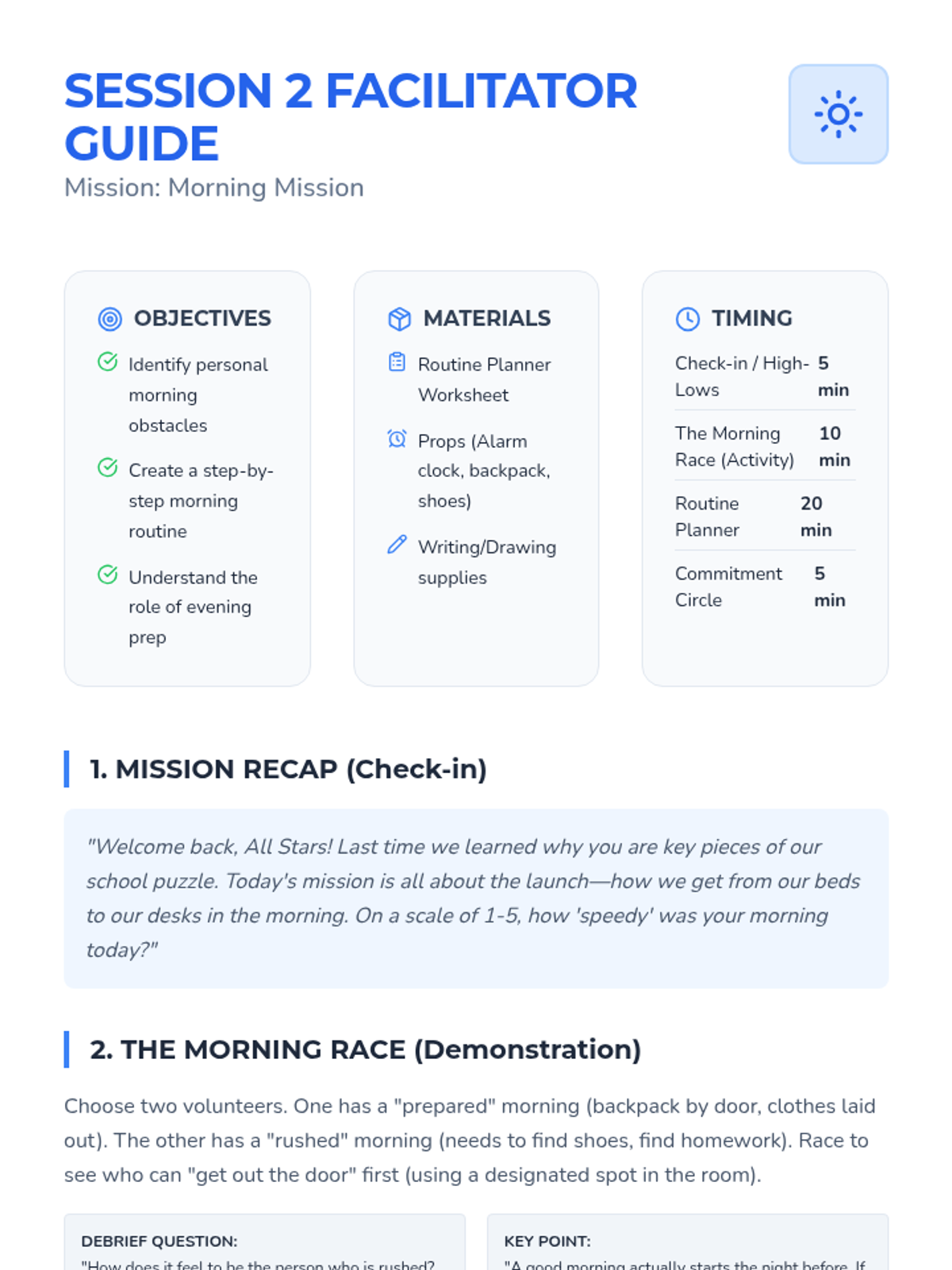 A resource package for K-1st grade parents focused on establishing calm, positive morning routines to reduce stress and foster student independence.