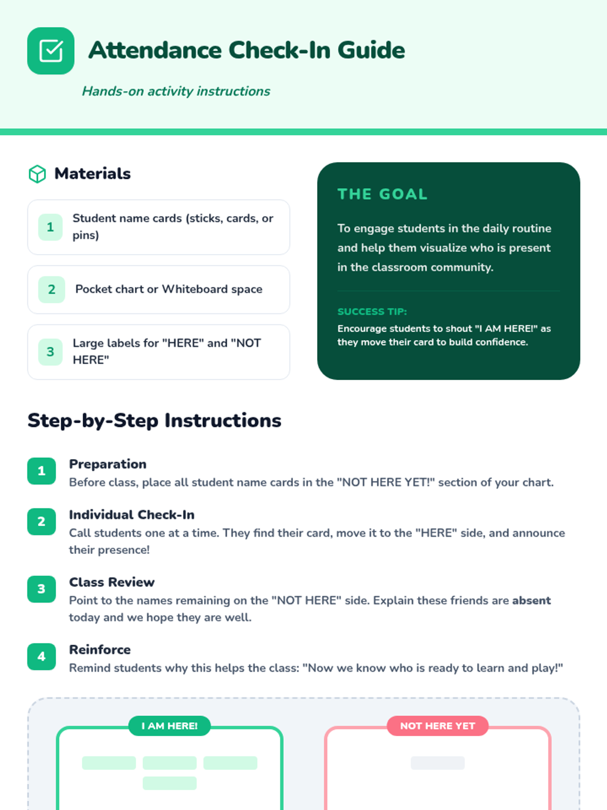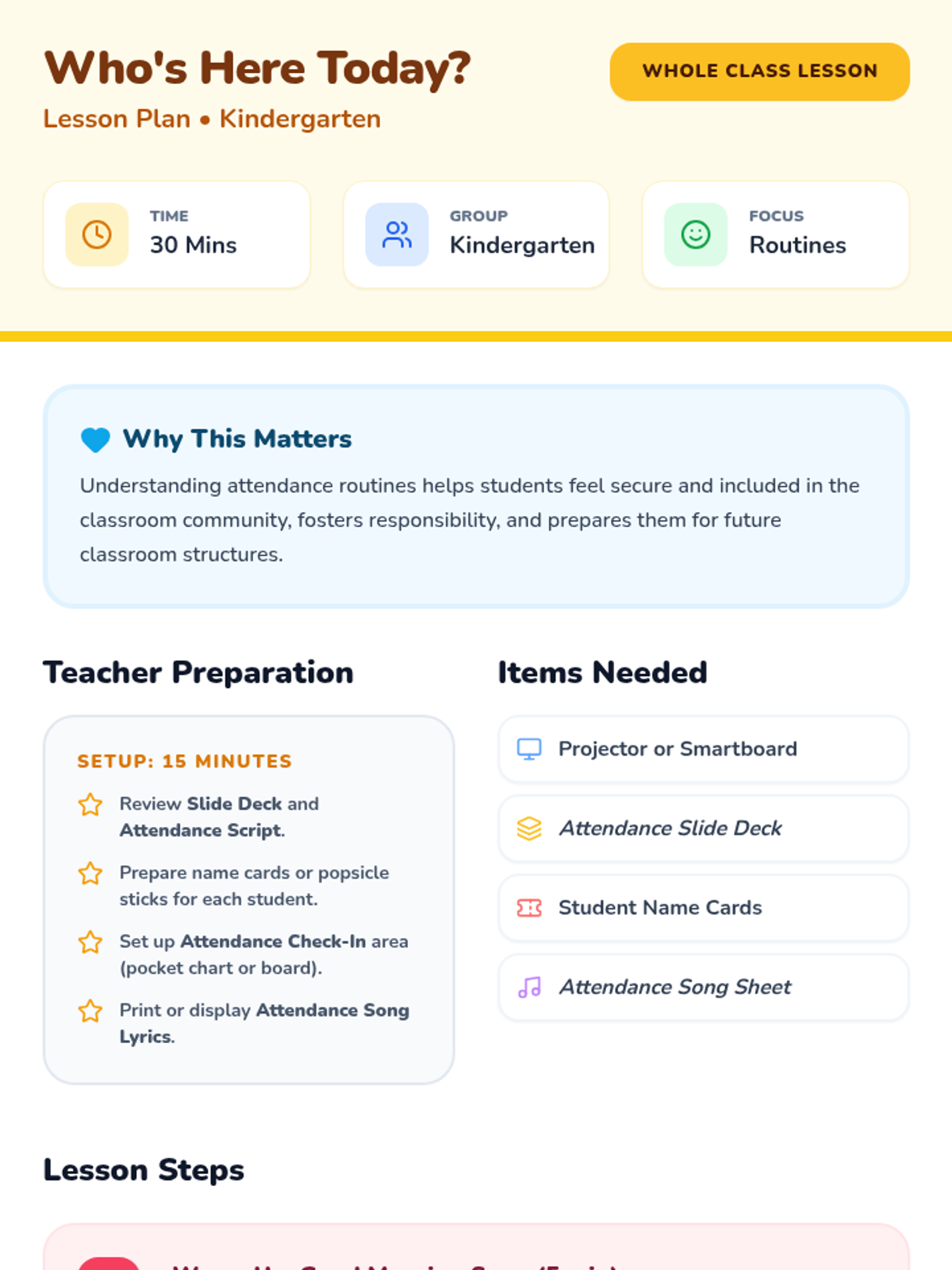 A comprehensive sequence of lessons designed to foster a culture of attendance across different age groups, from kindergarten routines to middle school accountability.