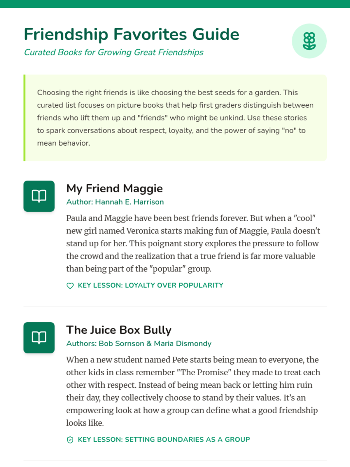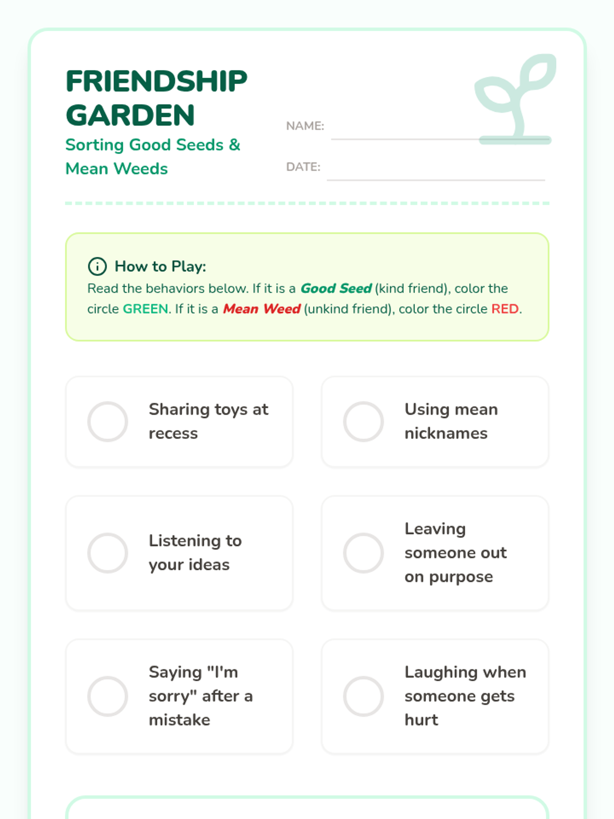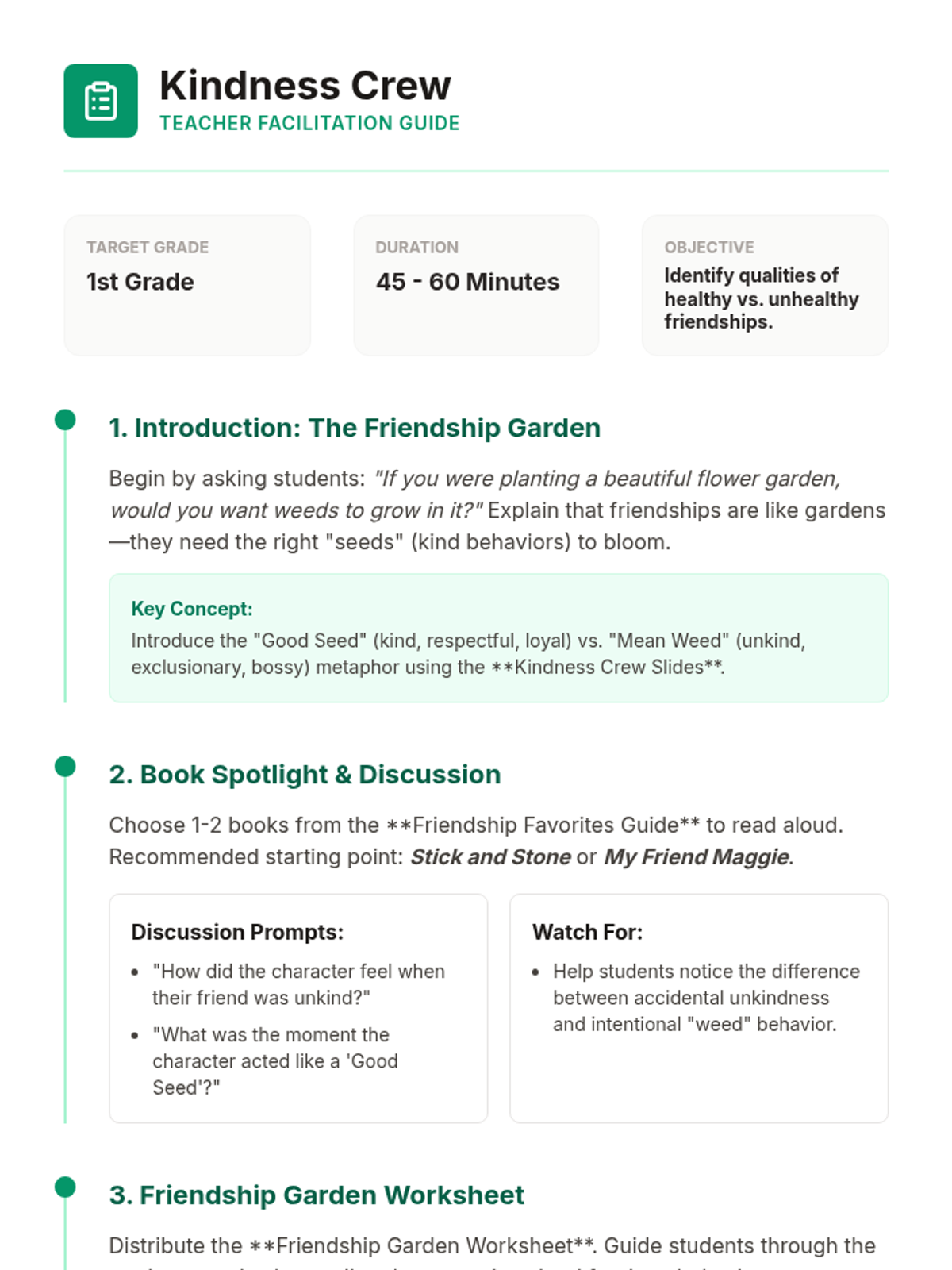 A social-emotional learning unit focused on helping young students navigate the complexities of first-grade friendships, specifically focusing on identifying healthy behaviors and choosing friends who treat them with respect and kindness.