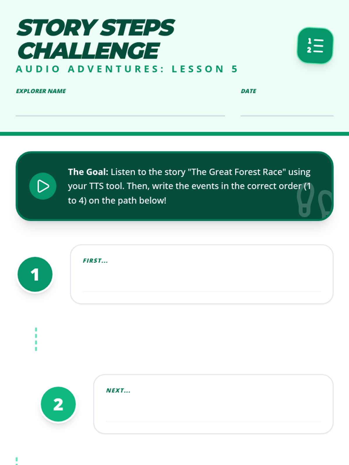 A sequence for 2nd Grade students to master text-to-speech (TTS) as a tool for reading comprehension. Students transition from decoding mechanics to deep understanding by using auditory support to predict, pause, answer questions, visualize, and sequence stories.