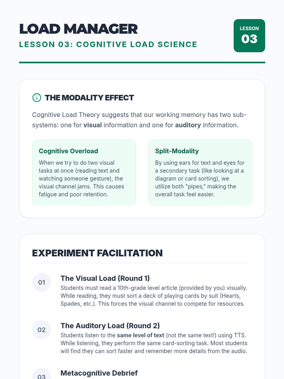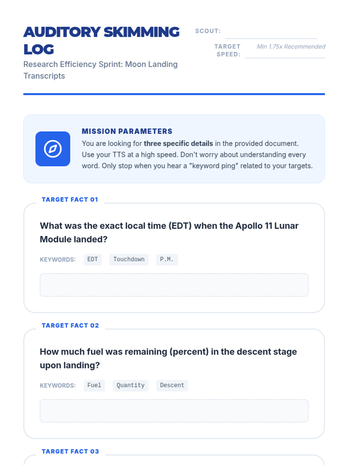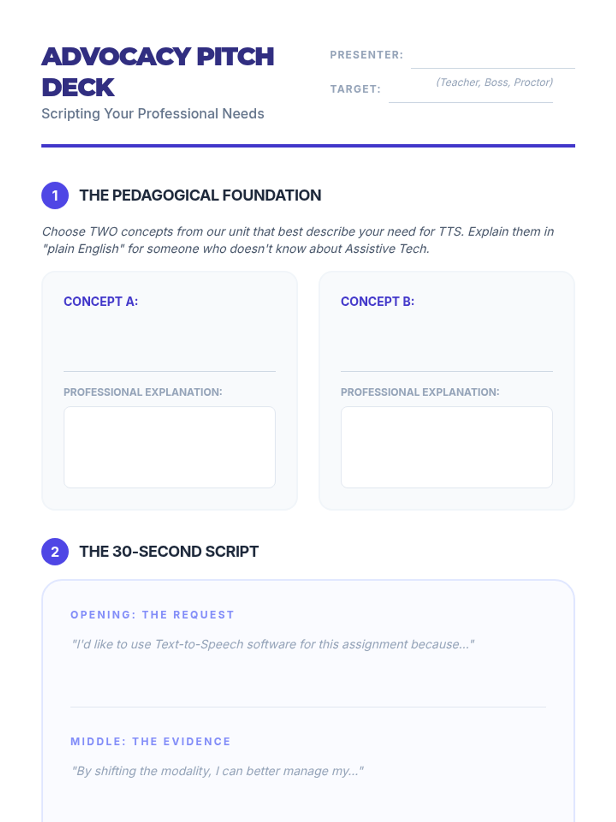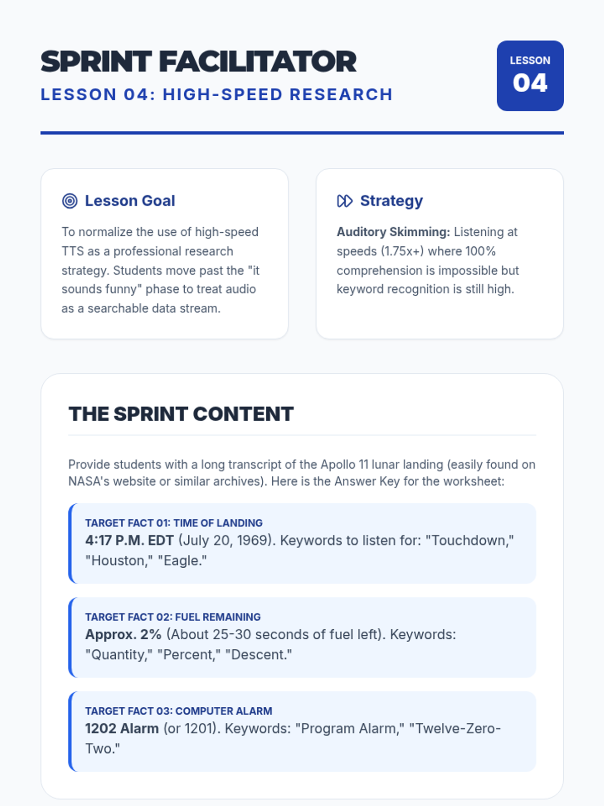 A 10th-grade sequence focusing on the cognitive and analytical applications of Text-to-Speech (TTS). Students transition from using TTS as a basic accommodation to leveraging it as a sophisticated tool for proofreading, literary analysis, and research efficiency, culminating in a self-advocacy project.