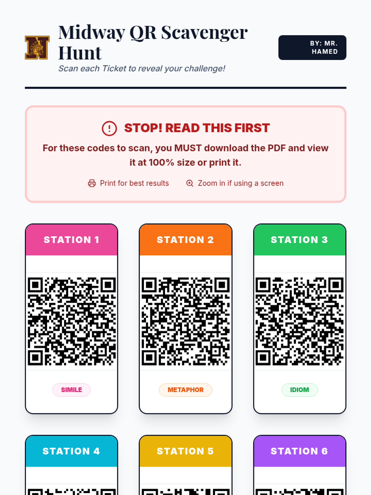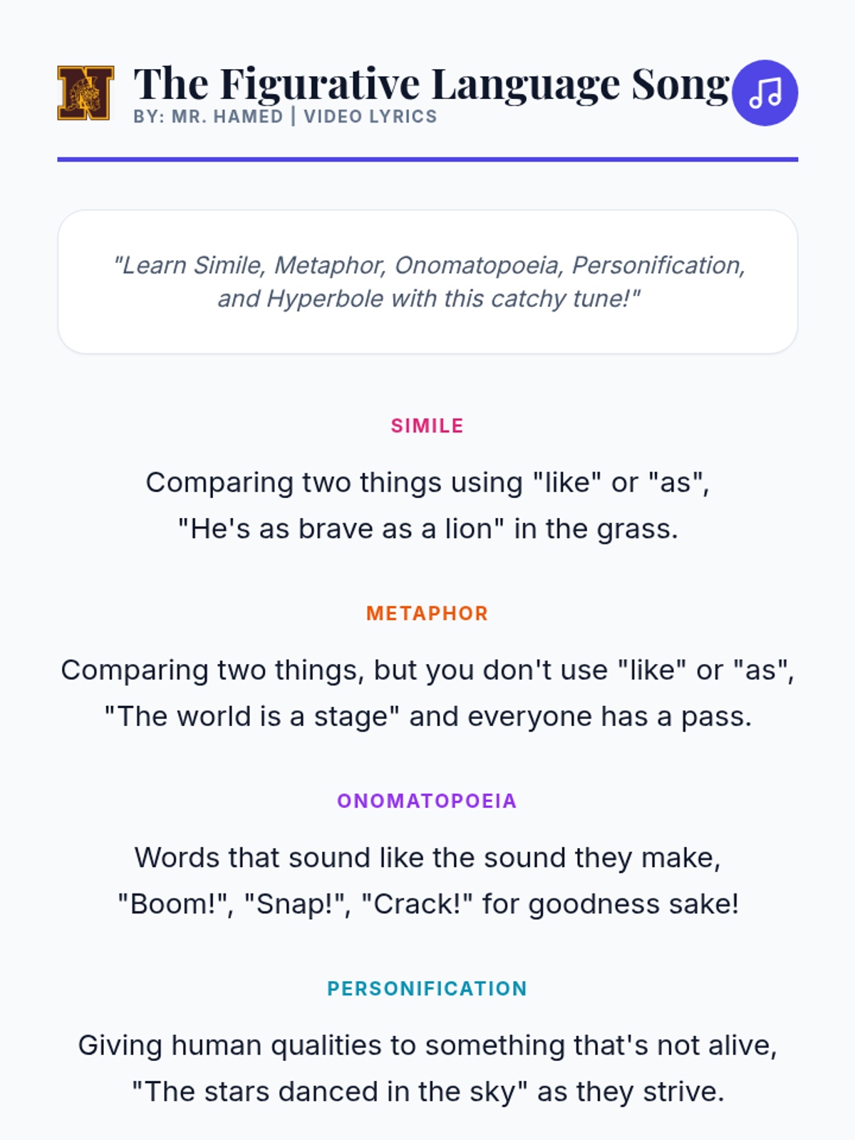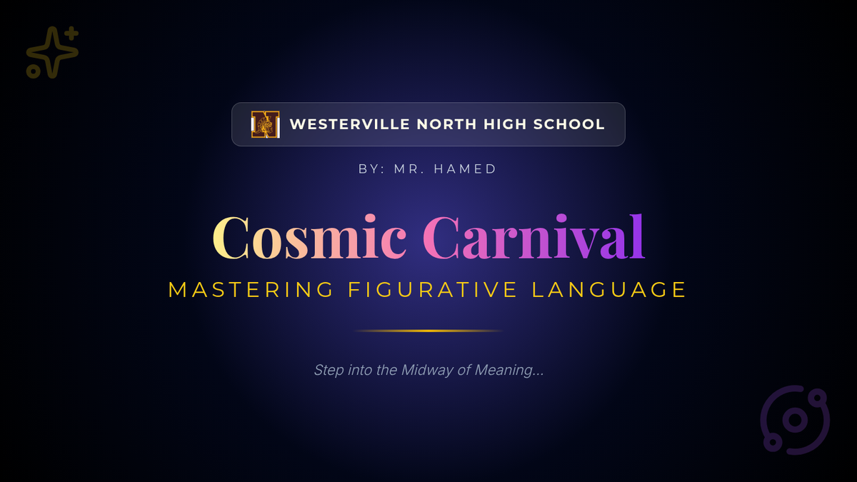 A comprehensive unit on figurative language set in the whimsical world of a Cosmic Carnival, covering nine key literary devices through interactive slides, a QR code scavenger hunt, and a rigorous mastery assessment.