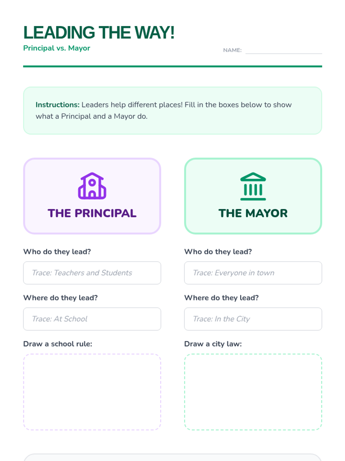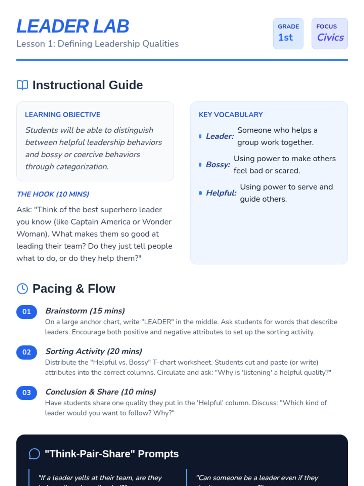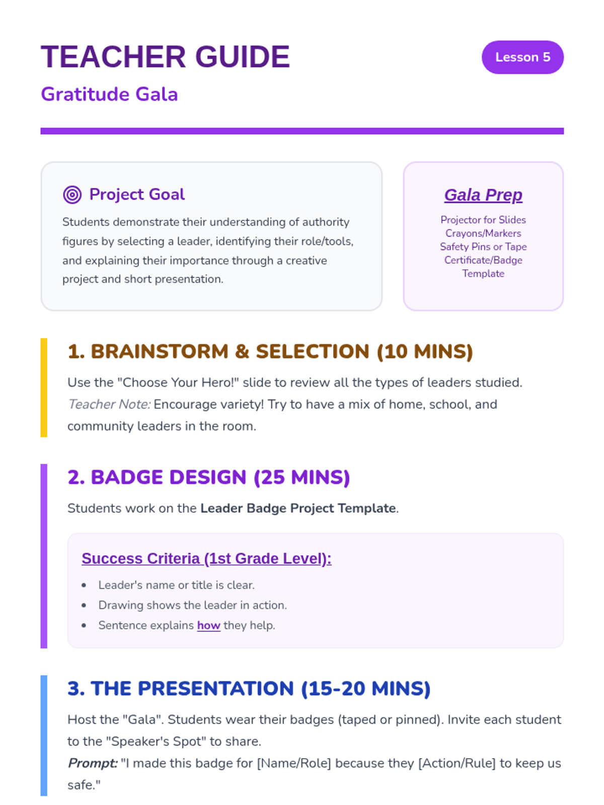 This first-grade sequence introduces the concept of authority figures at home, school, and in the community. Students learn to identify leaders, understand the purpose of rules, and distinguish between positive authority and bullying through interactive lessons and creative projects.