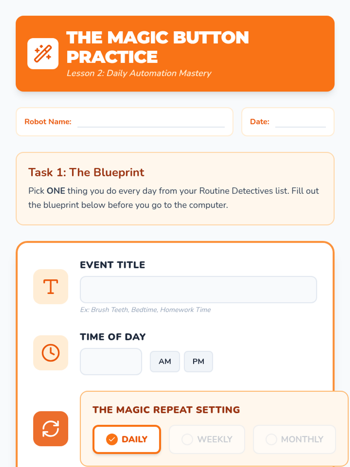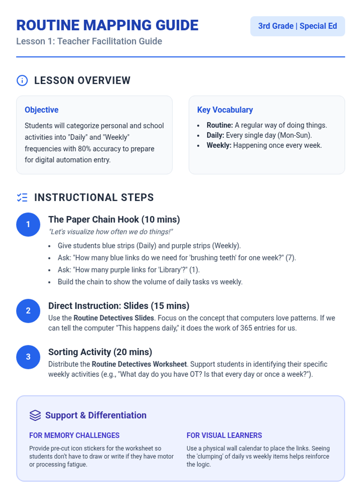 This sequence teaches 3rd-grade students with memory or processing challenges how to use digital calendars to automate their routines. By mastering recurring events, students shift from the stress of remembering 'what comes next' to the empowerment of managing a pre-programmed schedule.