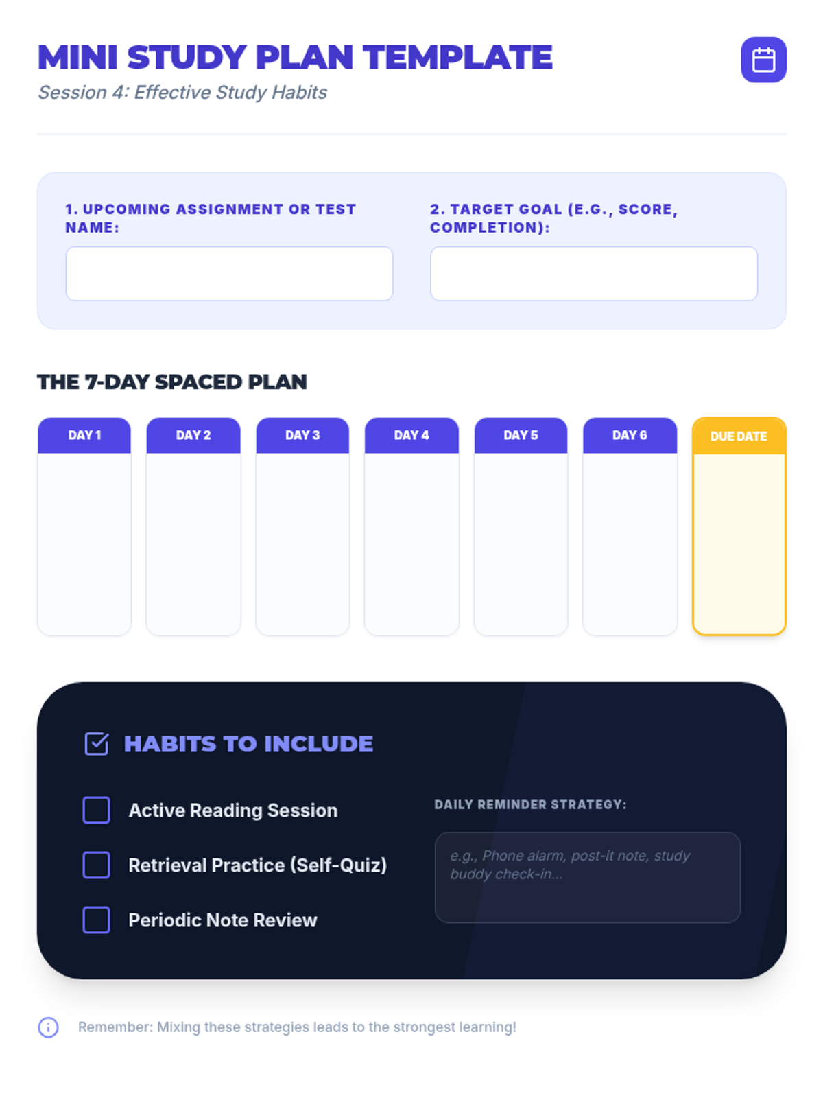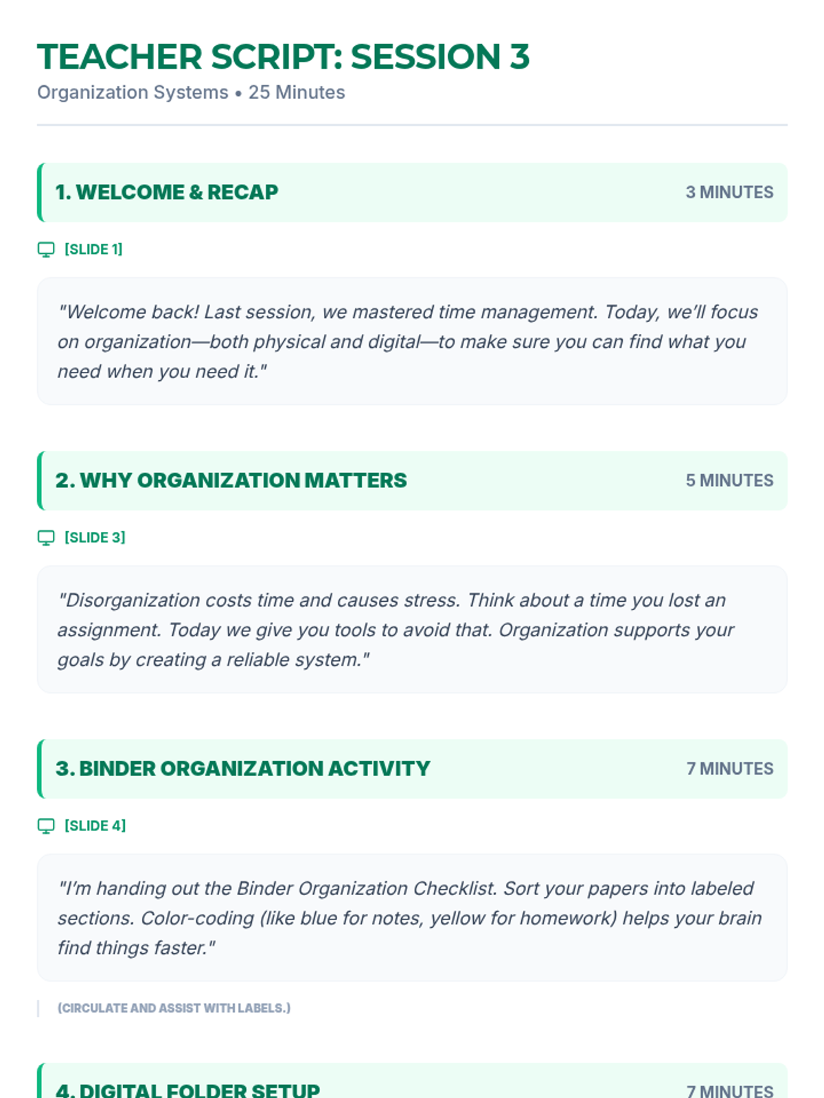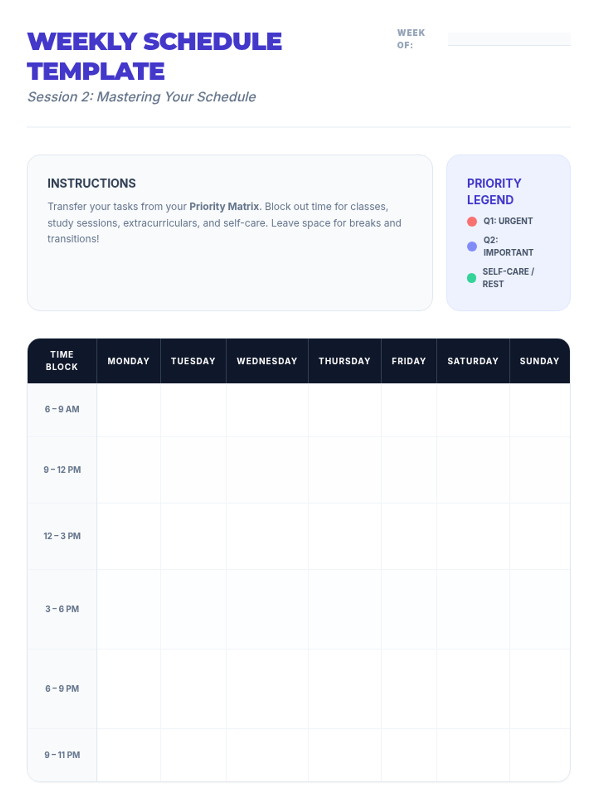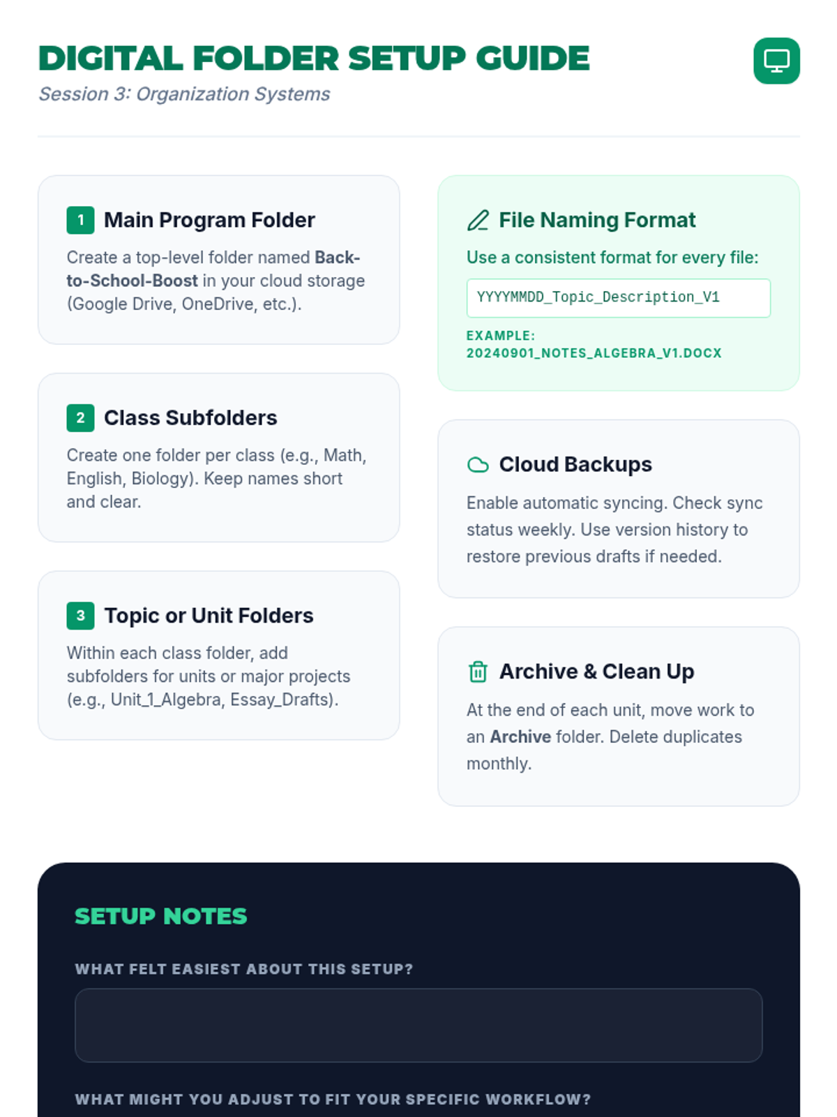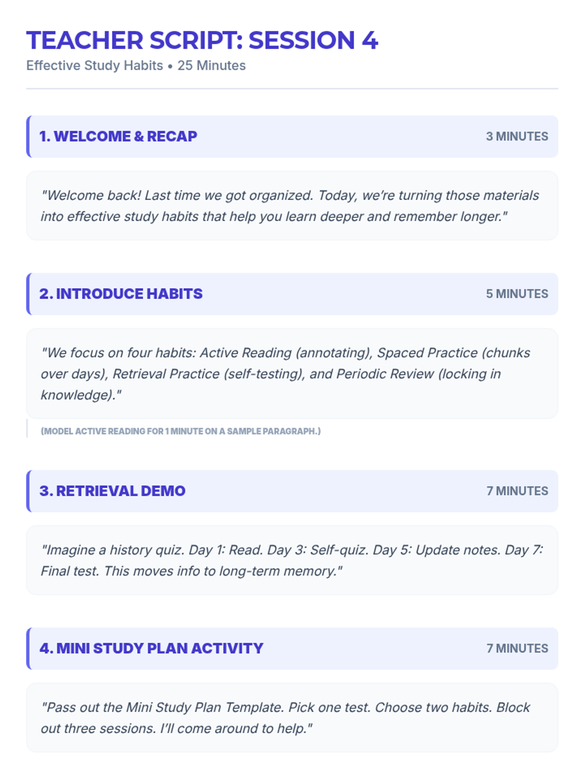 A dynamic 8-session program to help high school students transition back to school by building routines, confidence, and social connections. This Tier 1 program equips students with strategies for time management, goal setting, organization, study habits, and self-care.
