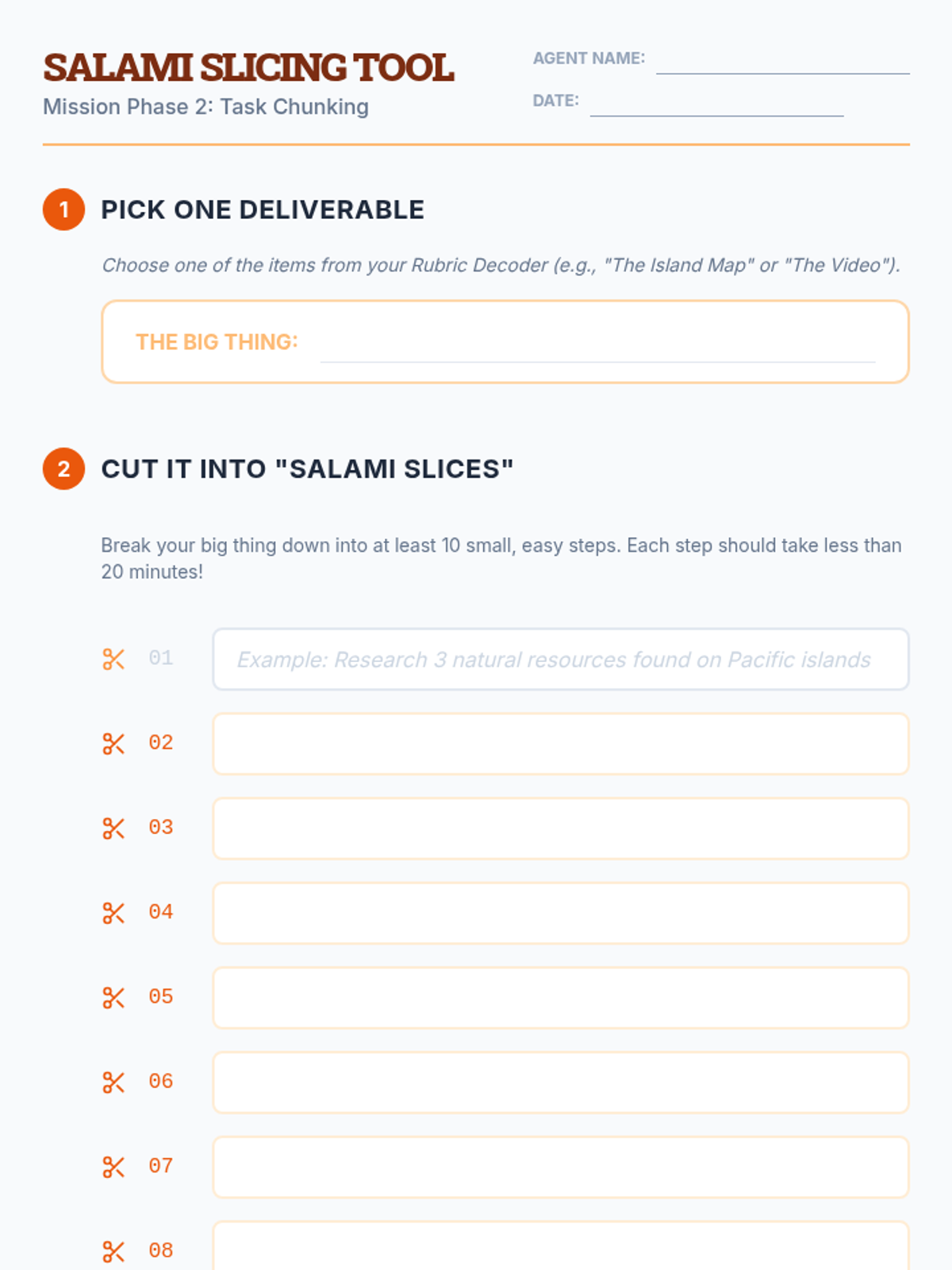 An executive function workshop for 6th-grade students focused on the mechanics of backward planning, task decomposition, and self-monitoring for long-term projects. Students learn to translate complex rubrics into actionable schedules and adapt to challenges along the way.