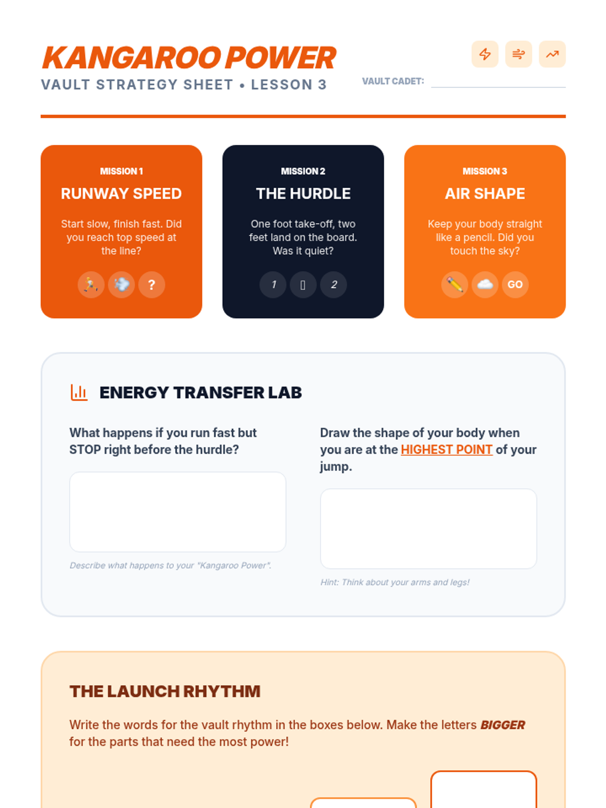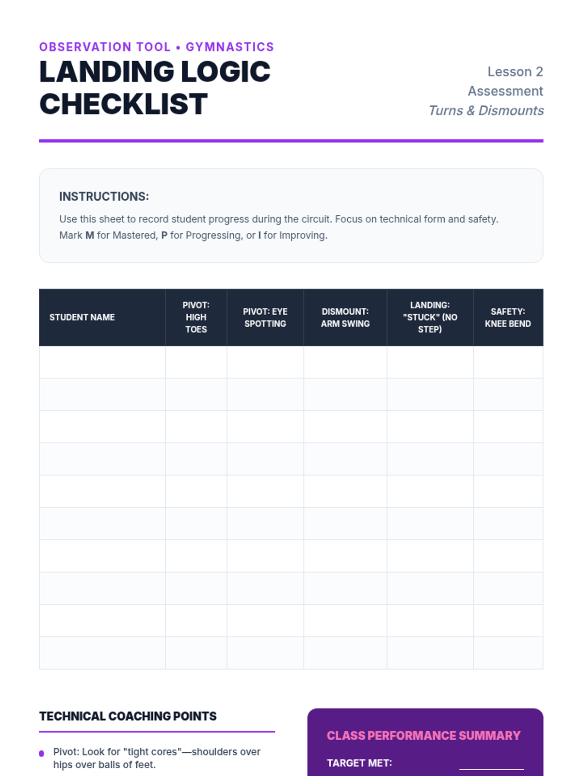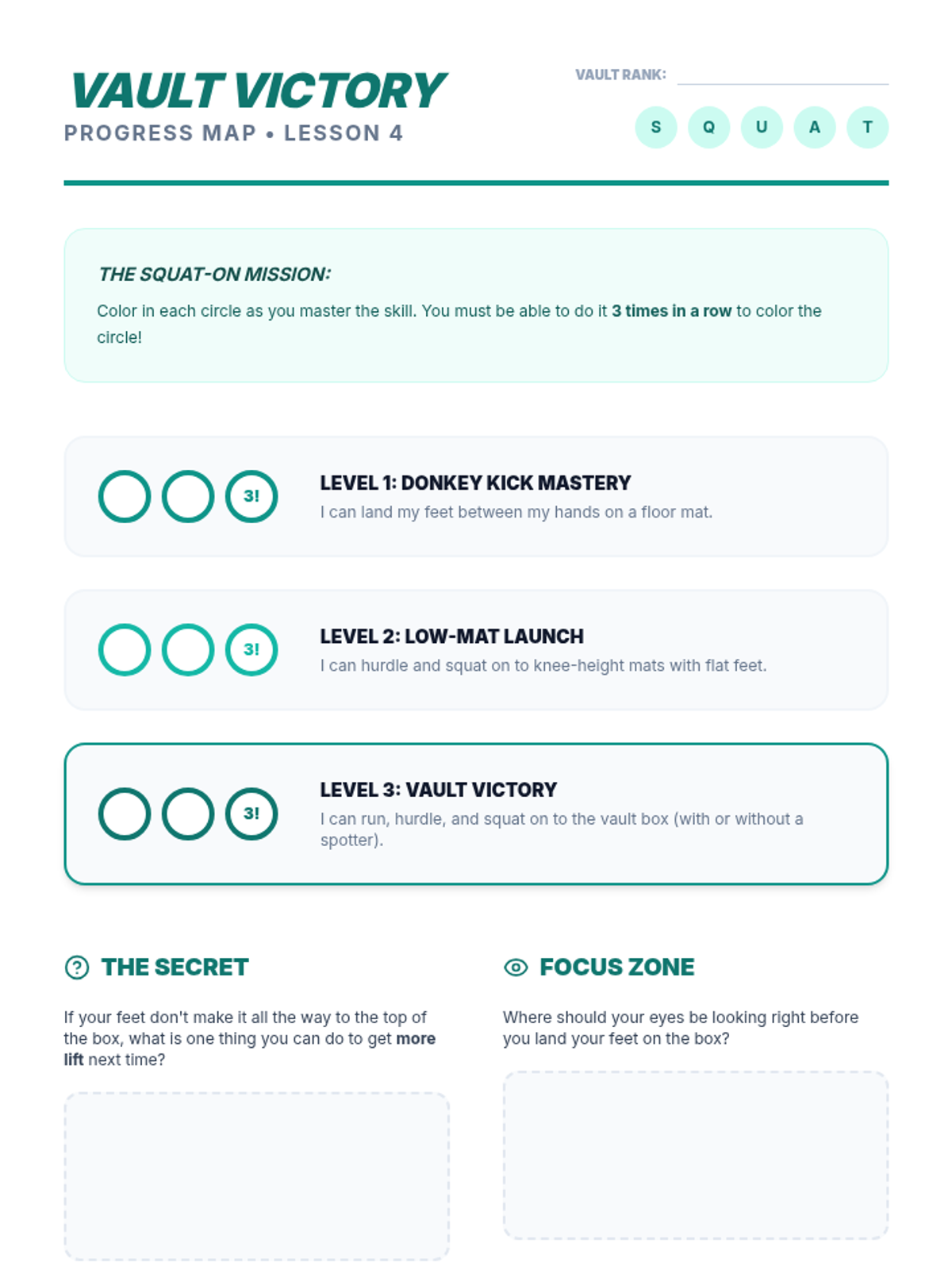 A 5-lesson 4th Grade Gymnastics sequence focusing on low balance beam skills and introductory vaulting mechanics. Students develop dynamic balance, explosive power, and safe landing techniques through station-based learning.