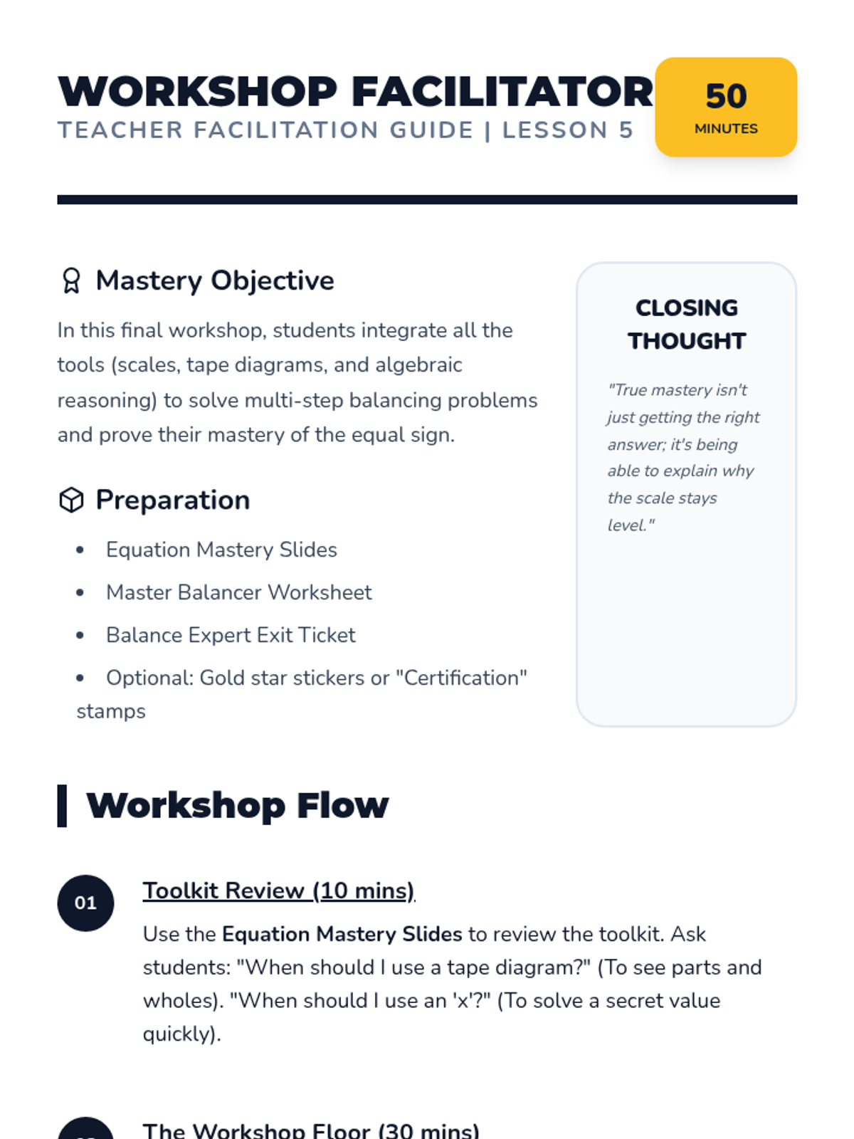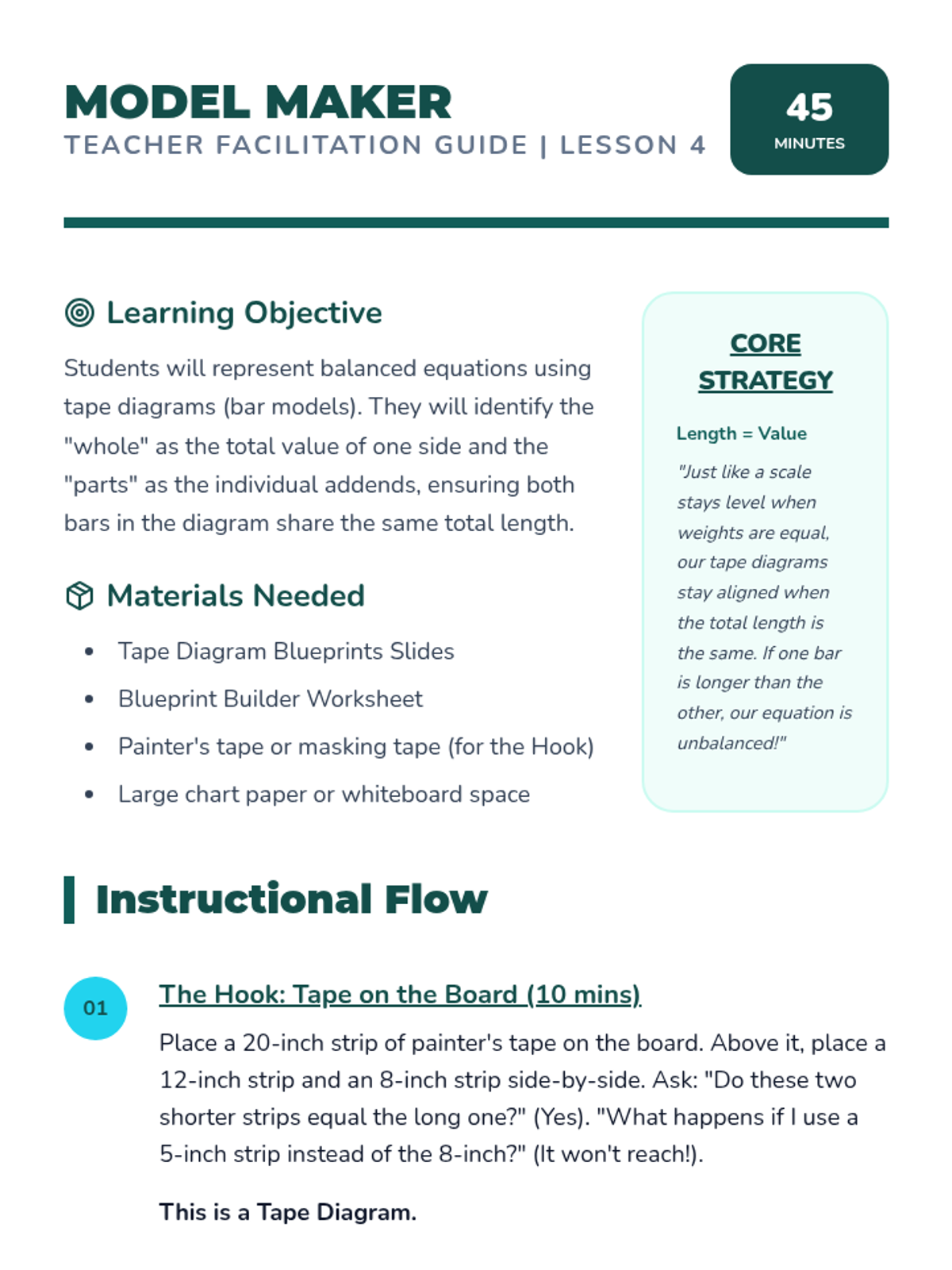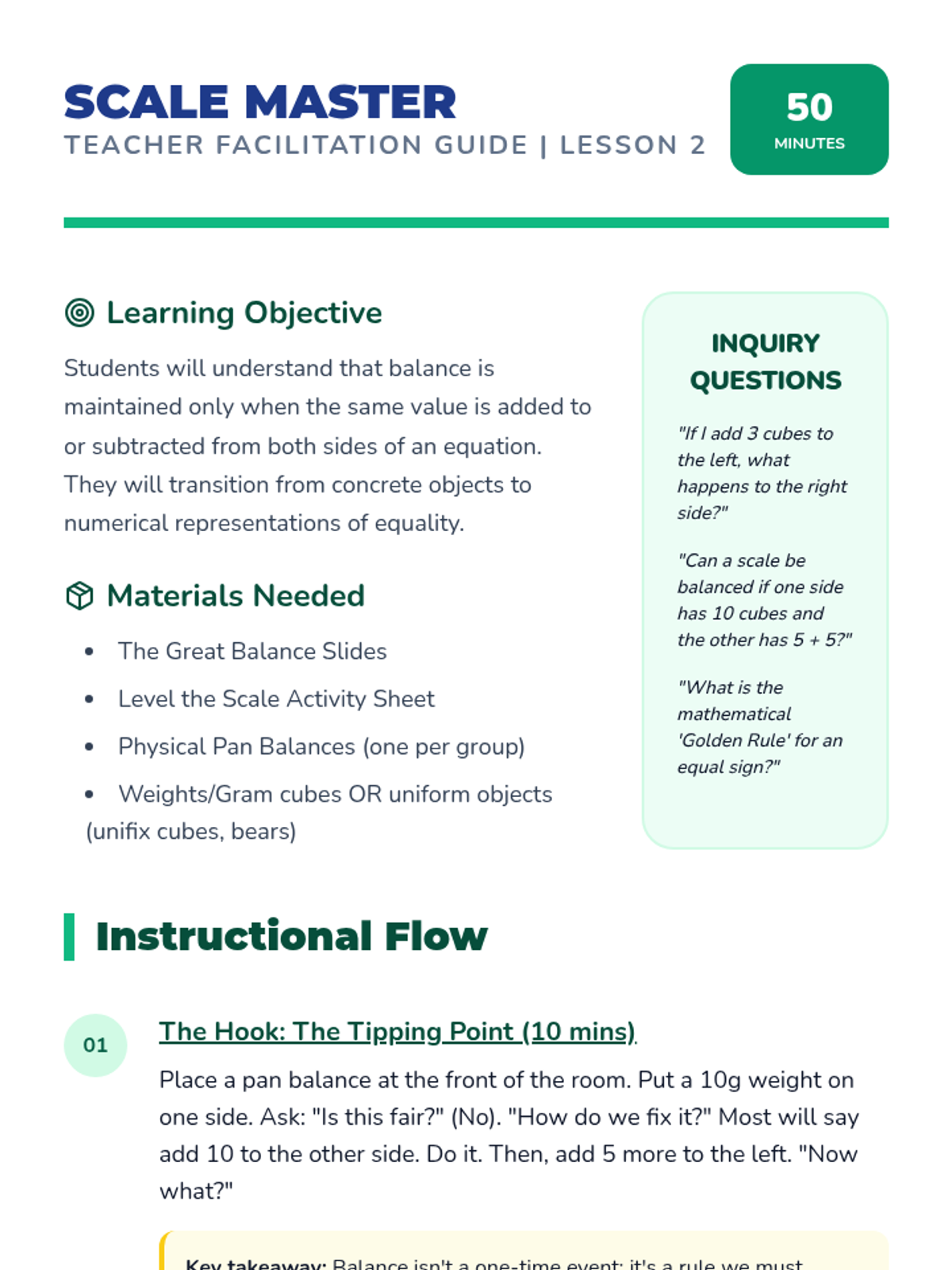 This foundational sequence reintroduces the equal sign as a symbol of balance ('the same as') rather than a command to calculate ('the answer is'). Students move from concrete physical balances to visual representations, exploring how equations remain true only when values on both sides are equivalent.