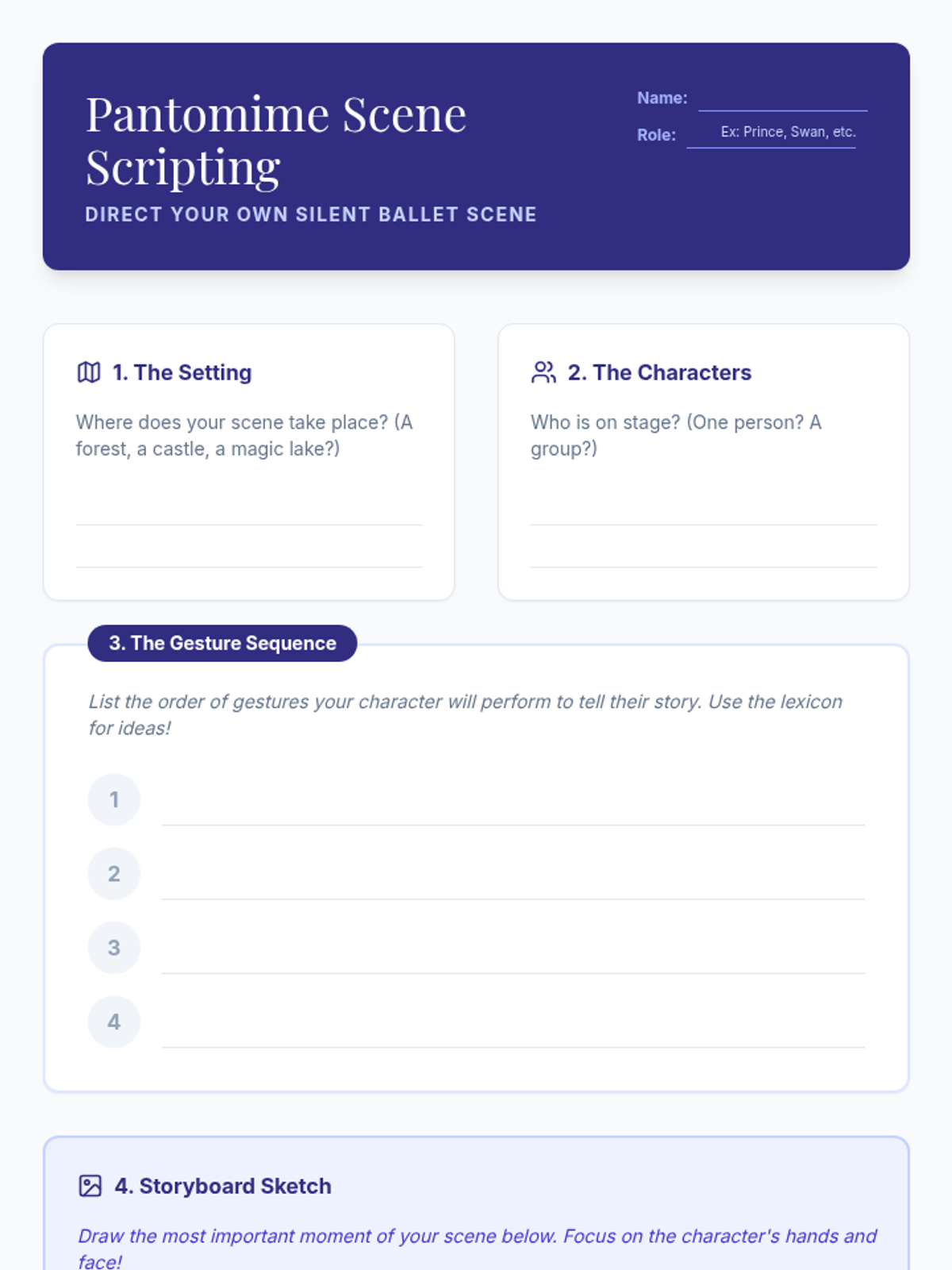 A comprehensive four-week unit and independent study guide for contemporary drama. Students analyze scripts, research playwrights, design technical elements, and stage scenes for a final production portfolio.