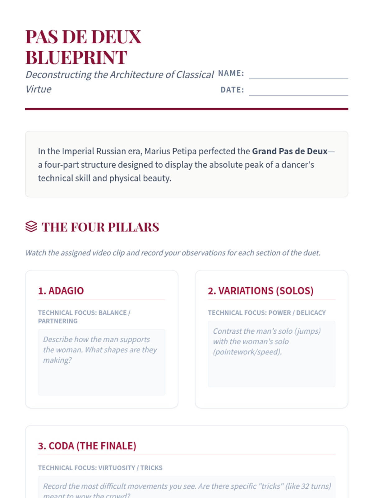 A comprehensive exploration of ballet's evolution from the 17th-century French court to 20th-century American neoclassicism, focusing on the intersection of political power, social values, and aesthetic form.