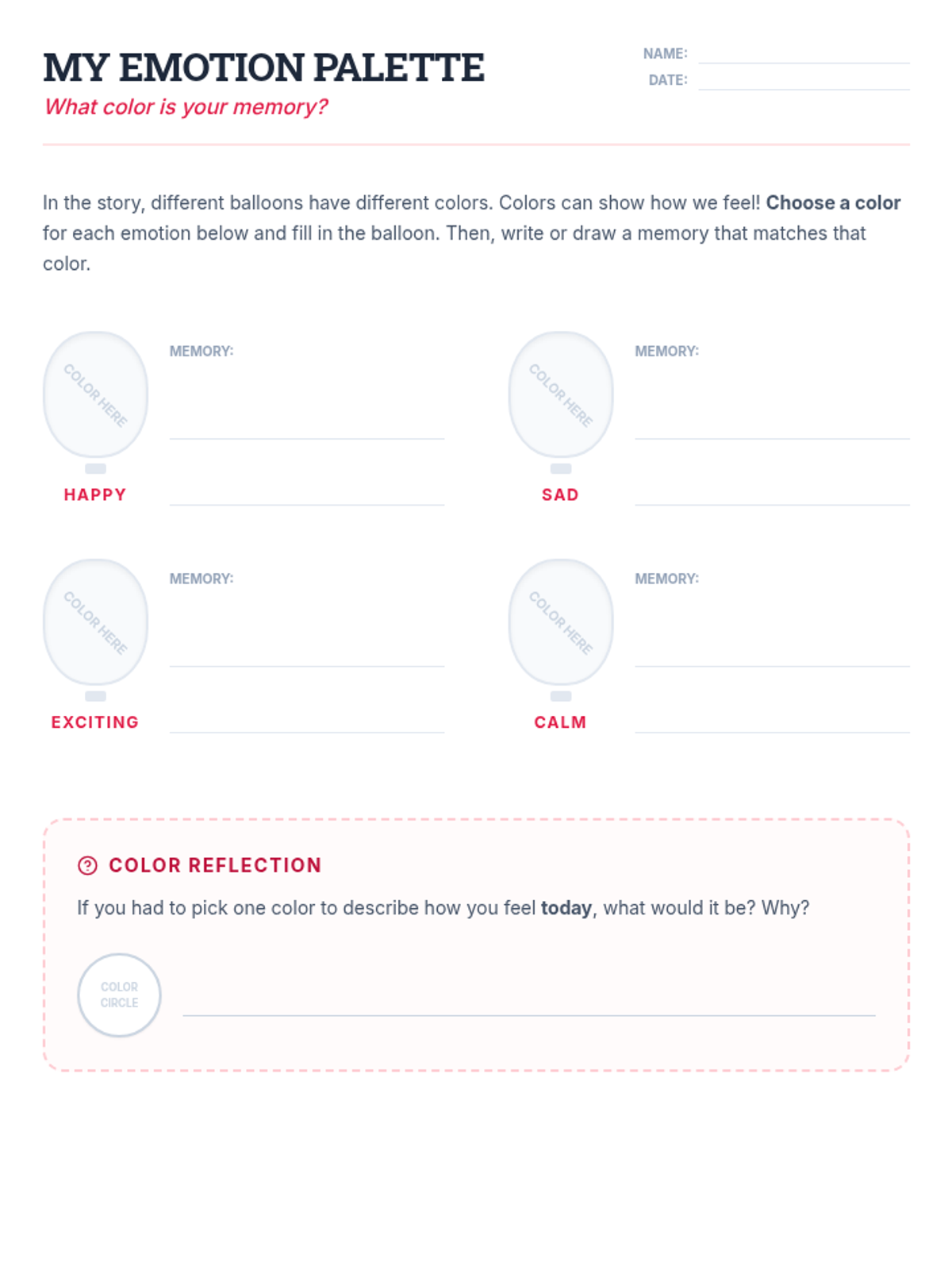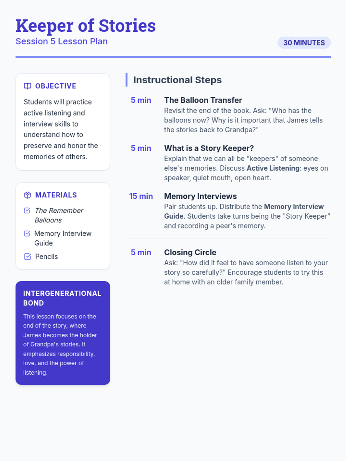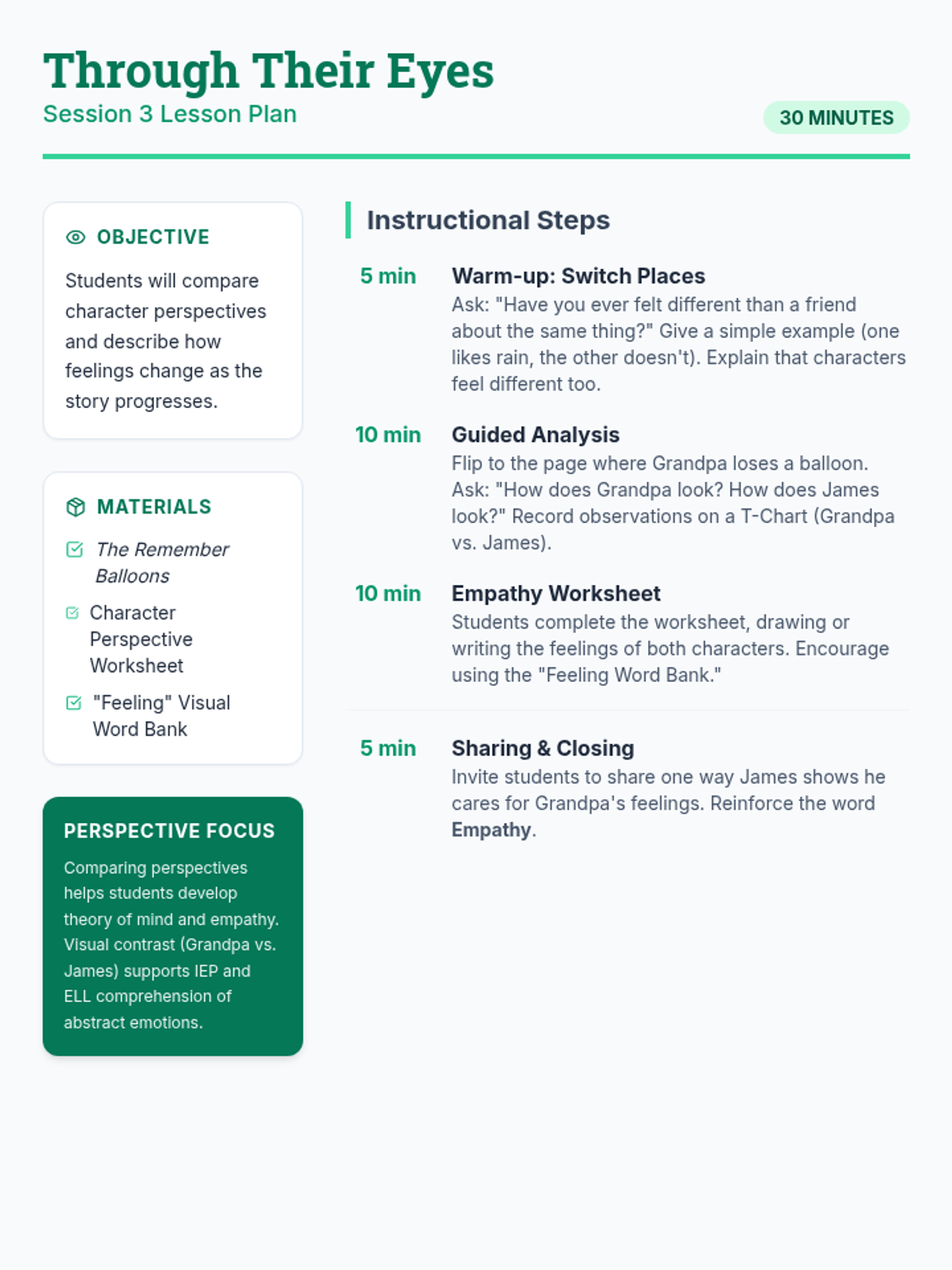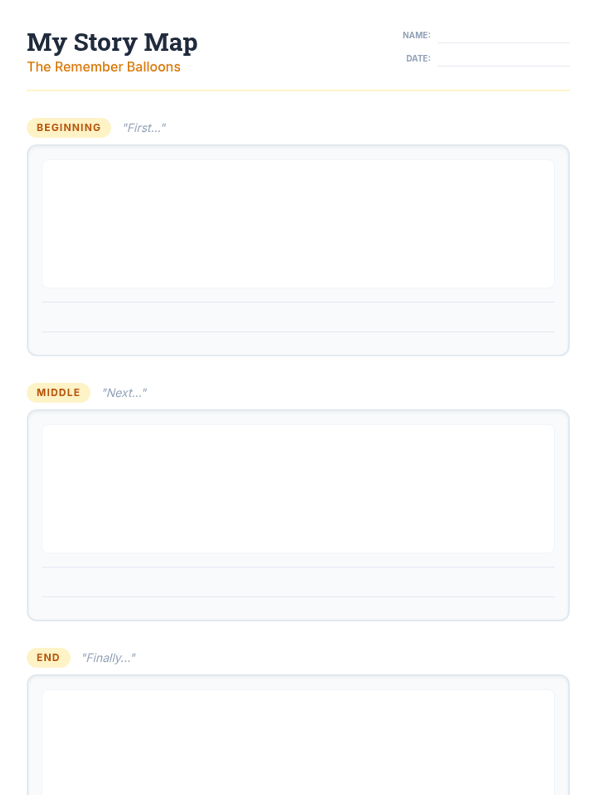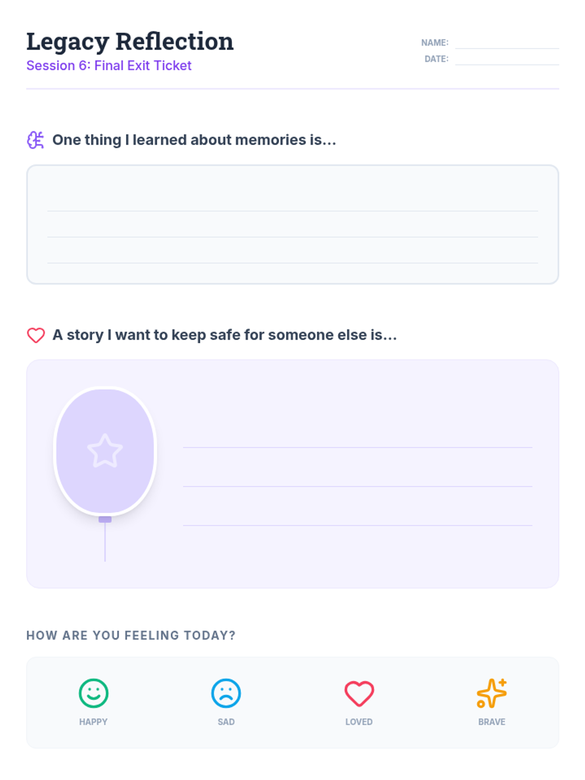 A 6-session social-emotional learning series based on 'The Remember Balloons' by Jessie Oliveros. Students explore memory, loss, and empathy through storytelling, sequencing, and symbolic art activities designed for K-8 learners.