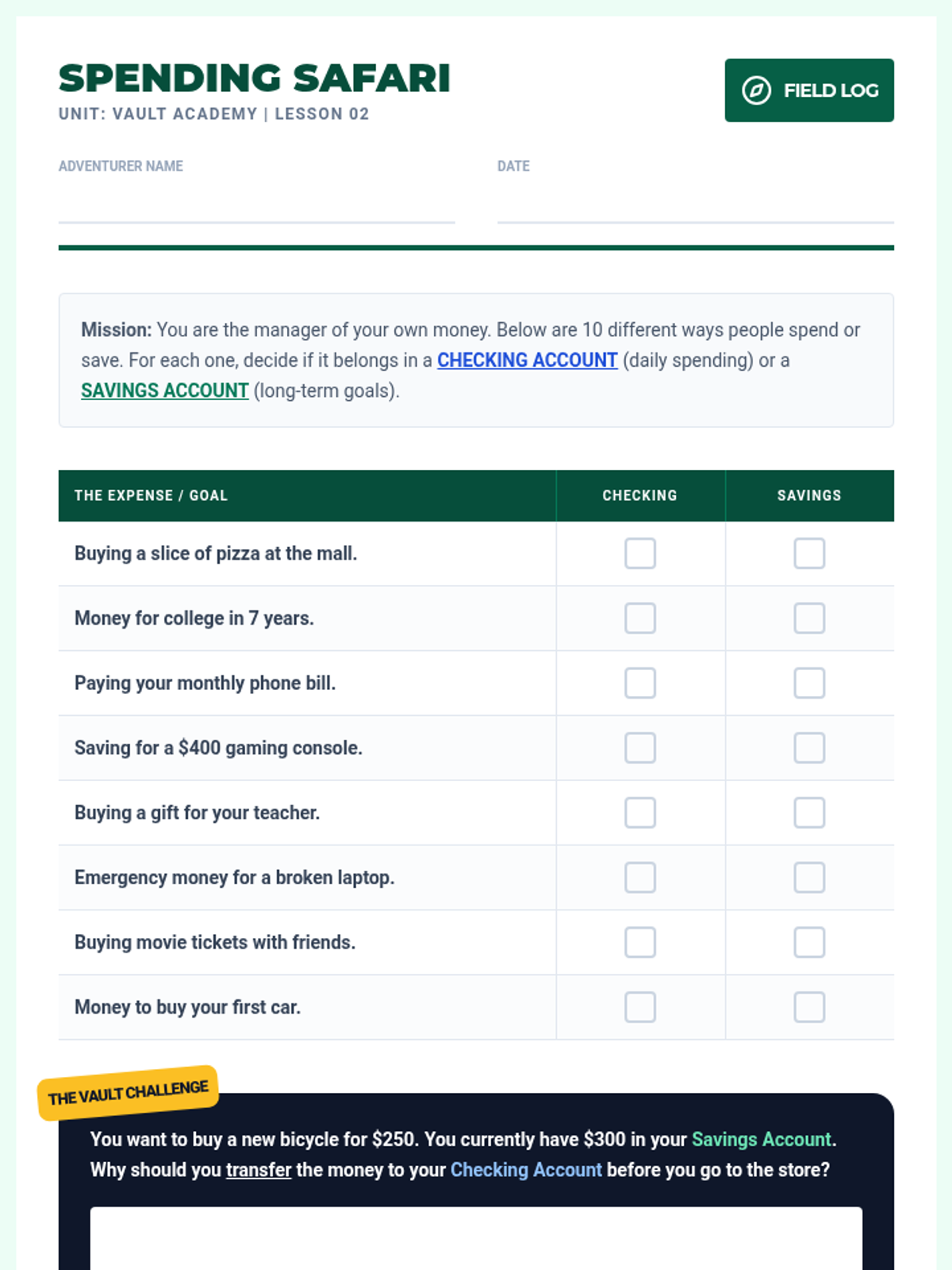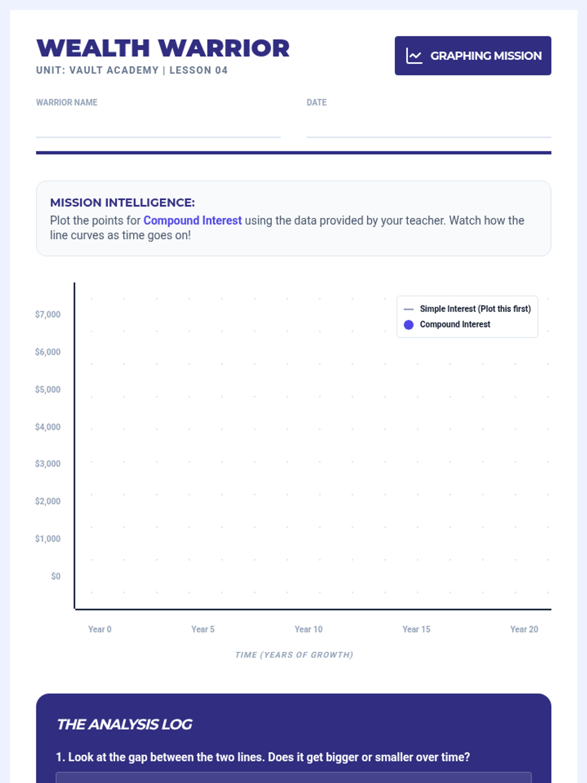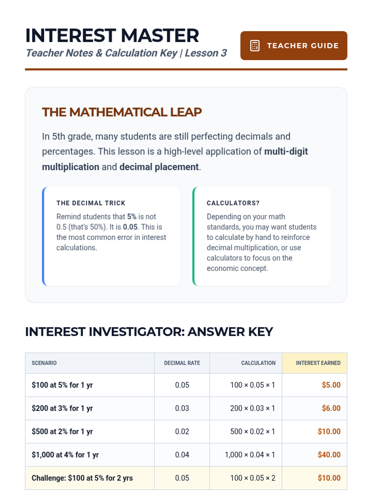A comprehensive 5th-grade unit on the mechanics of retail banking, focusing on the difference between account types, the mathematical calculation of simple and compound interest, and the importance of financial security. Students engage in simulations to understand how banks protect and grow money.