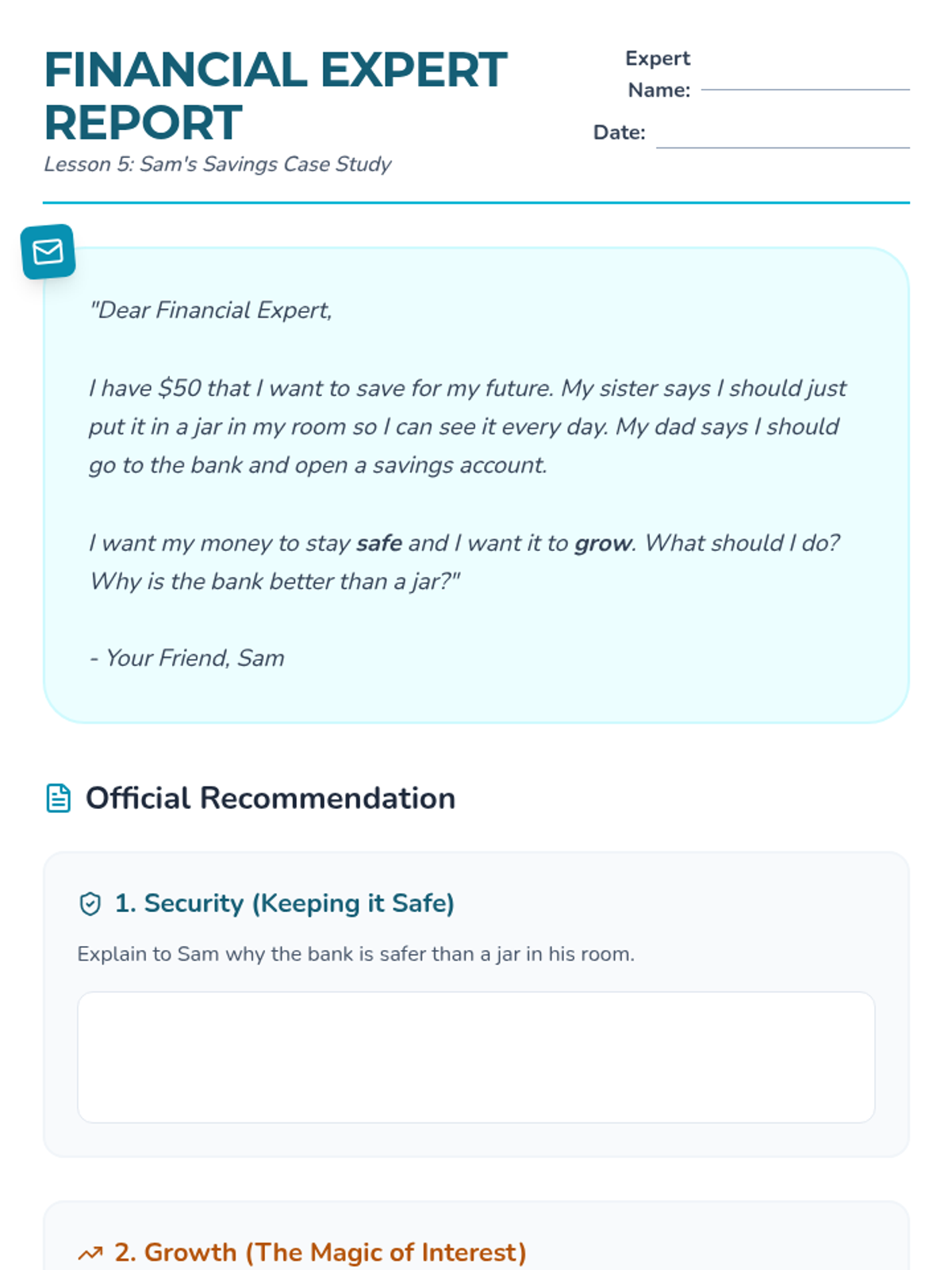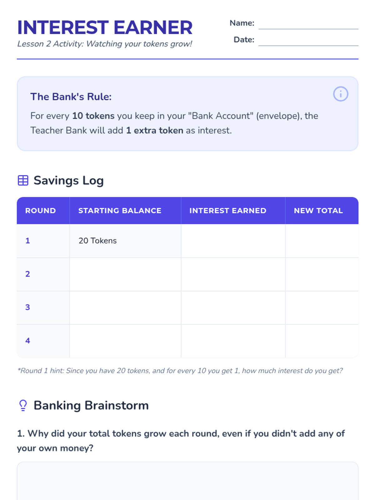 A comprehensive 3rd-grade unit exploring the fundamentals of banking, interest, and the power of time in money growth through interactive simulations and visual experiments.