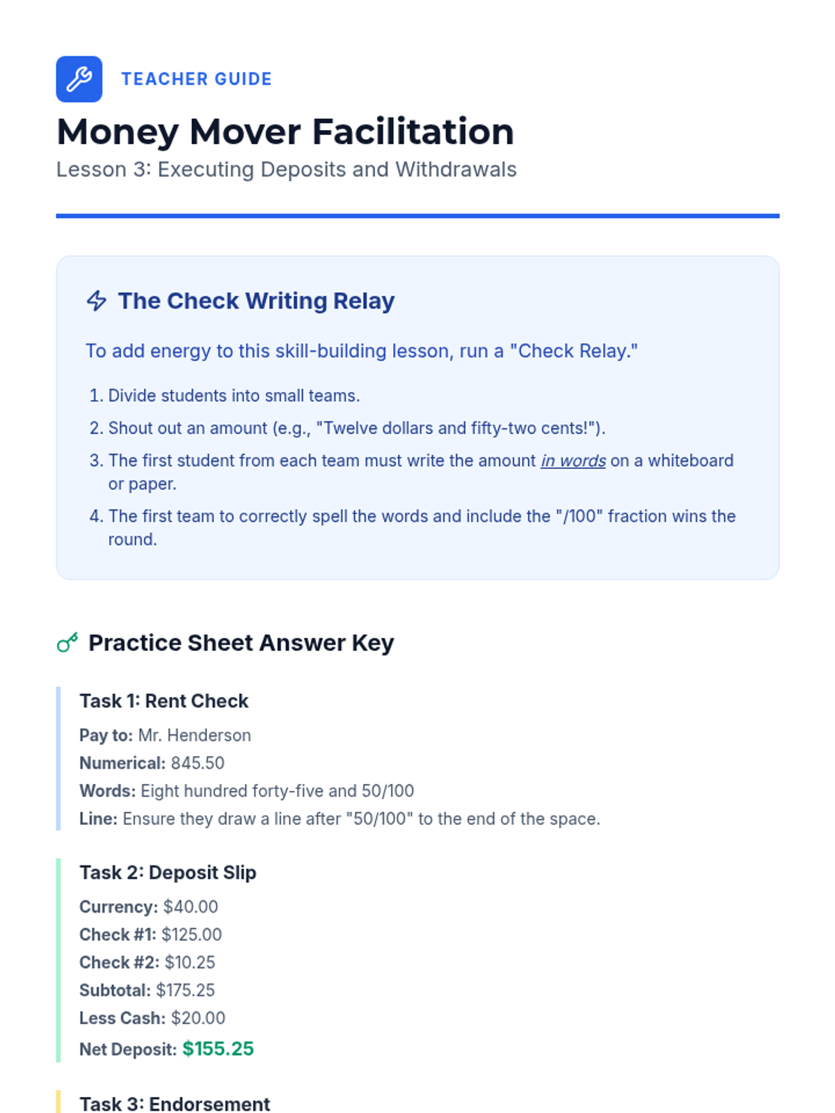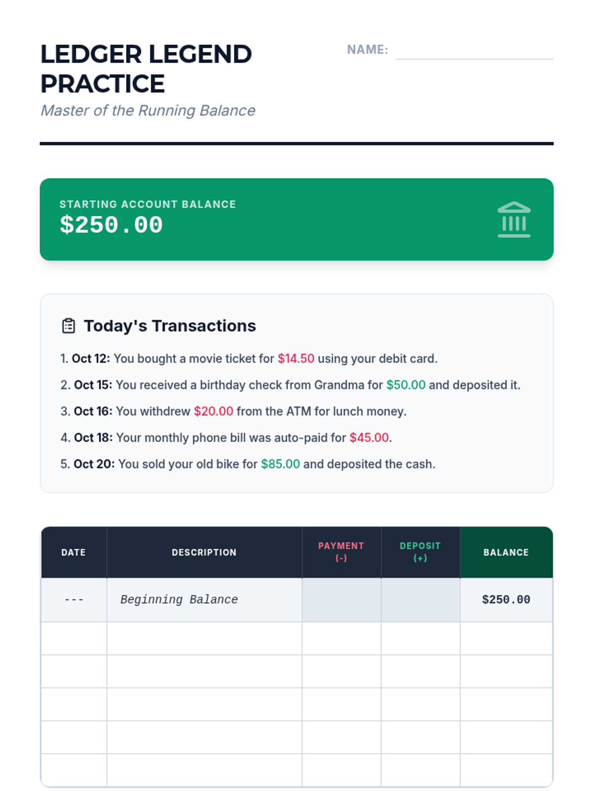 A comprehensive introduction to banking for 8th graders, covering account types, opening procedures, transaction mechanics, ledger maintenance, and statement analysis. Students gain practical financial literacy skills through simulations and hands-on practice.