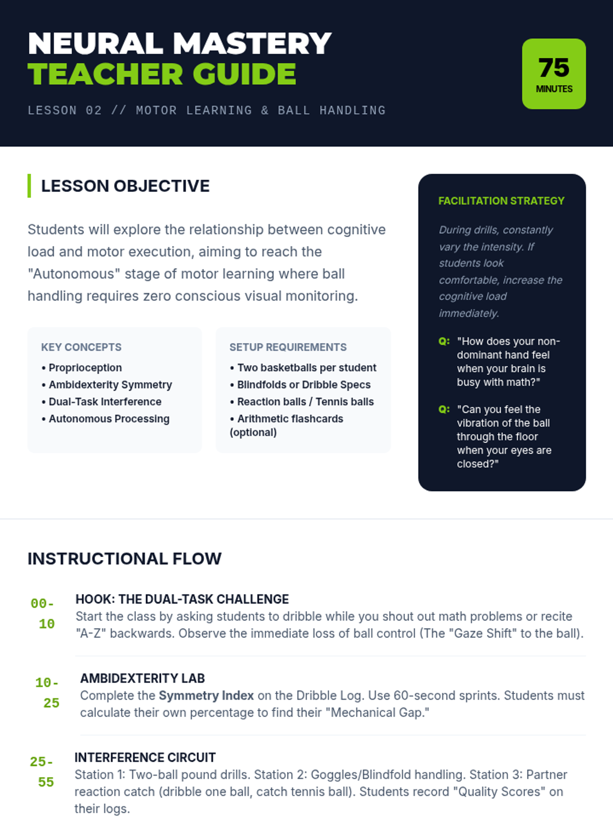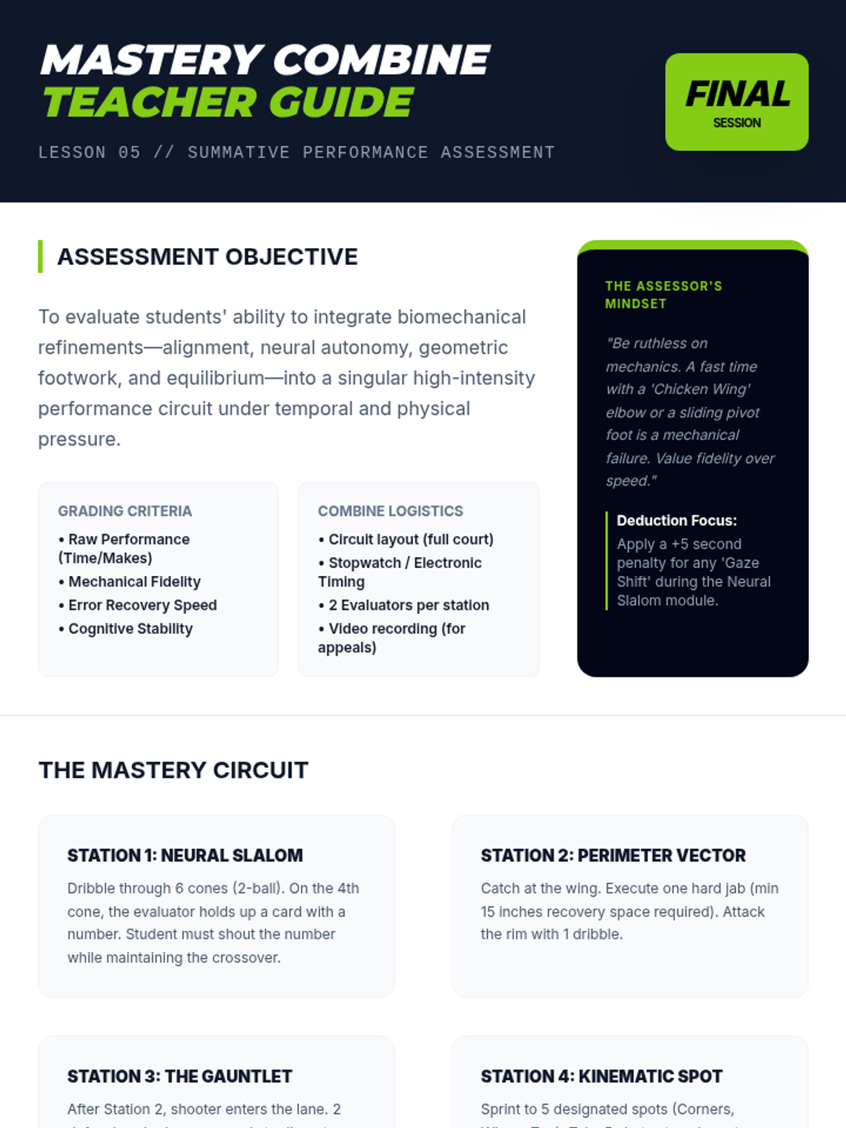 An advanced undergraduate-level sequence focusing on the biomechanics and motor learning principles of basketball skills, moving from analytical deconstruction to high-pressure performance.