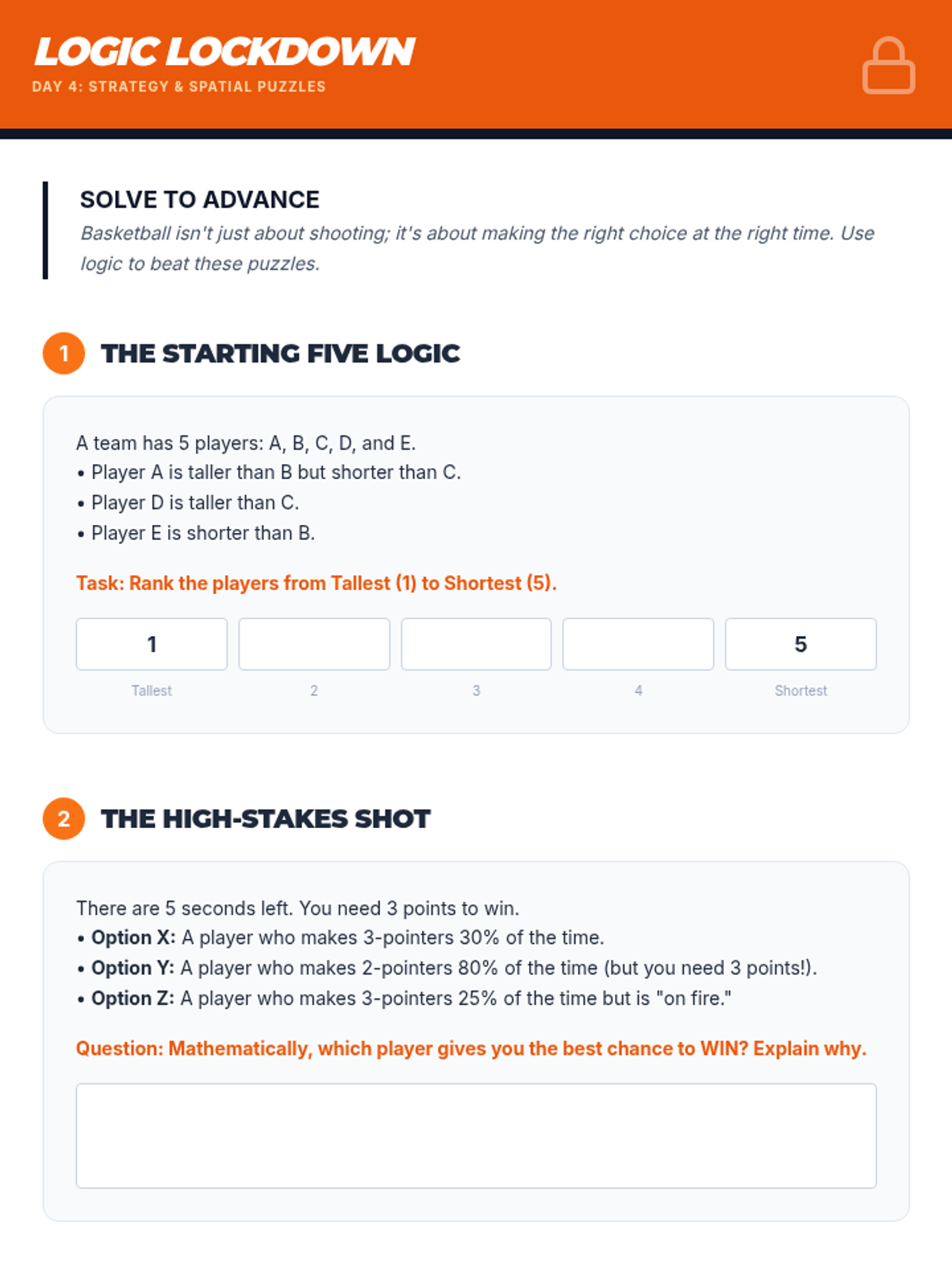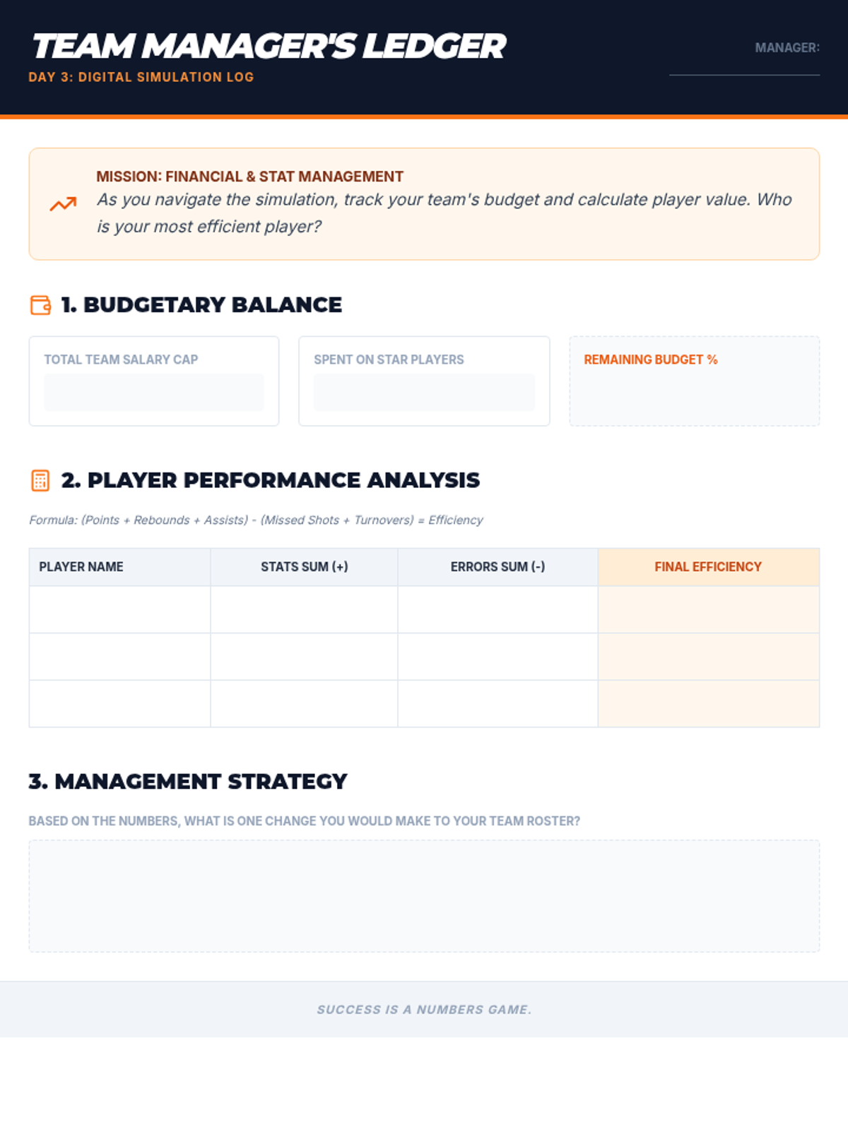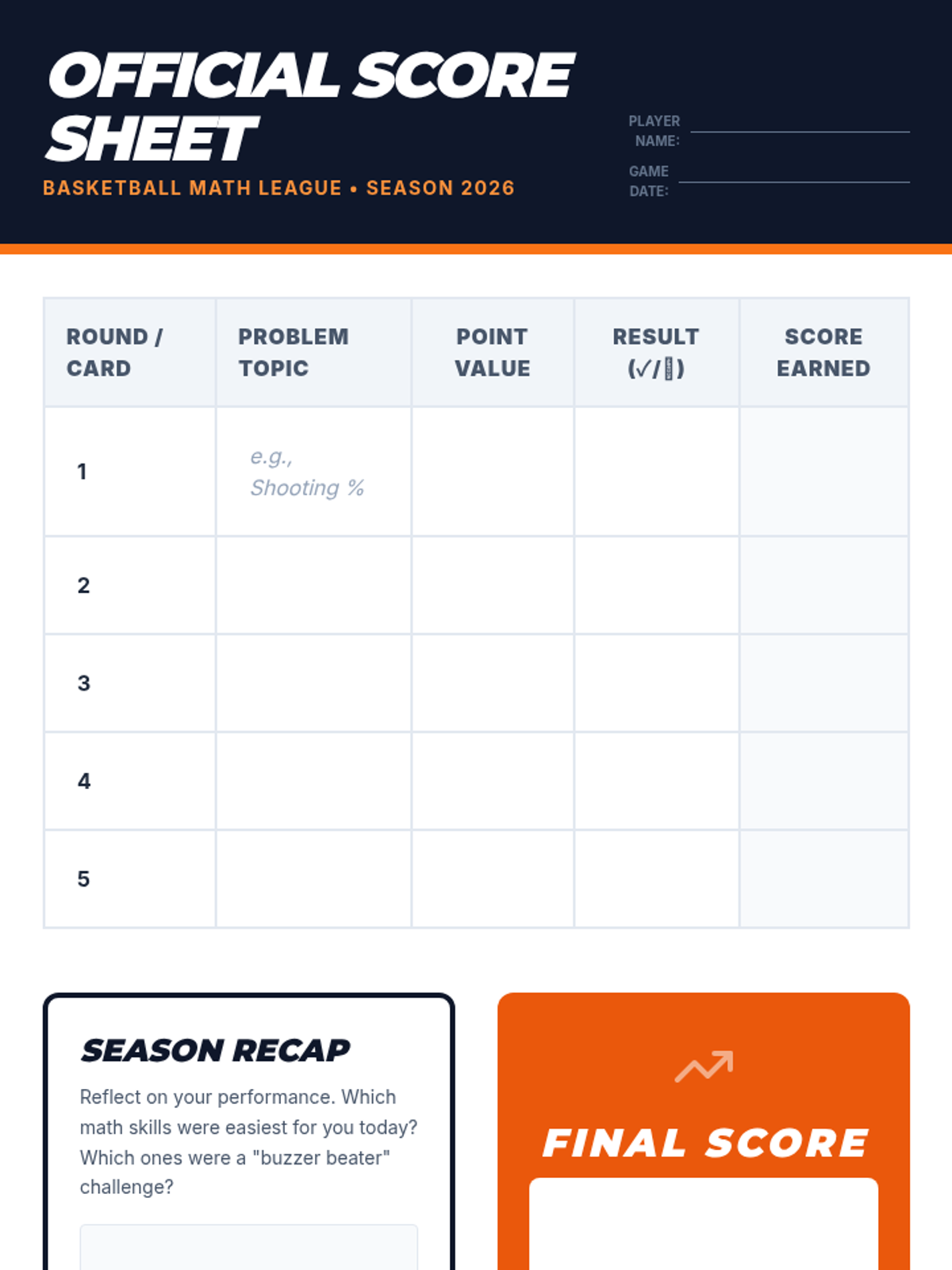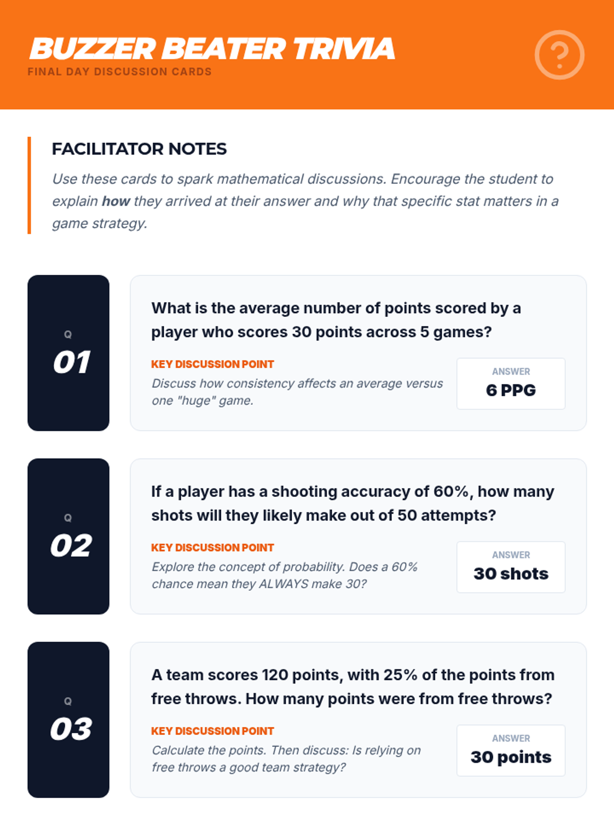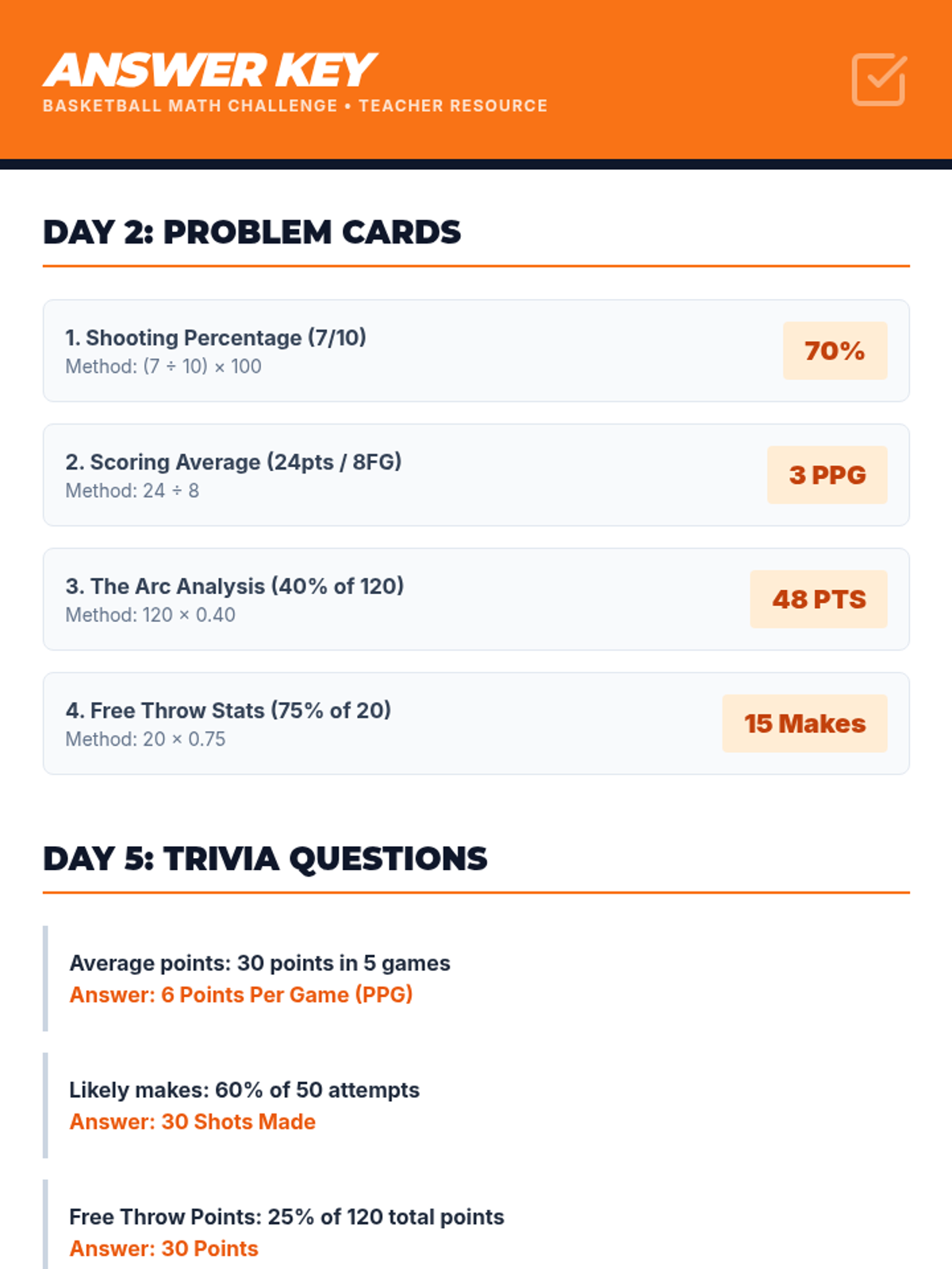 A 5-day math intervention for a high school student that uses basketball statistics and simulation to teach percentages, averages, and data analysis.