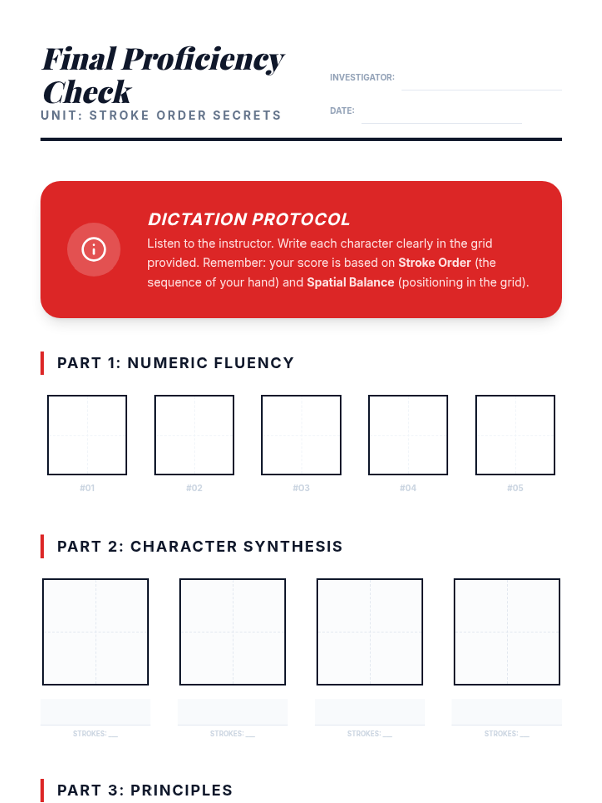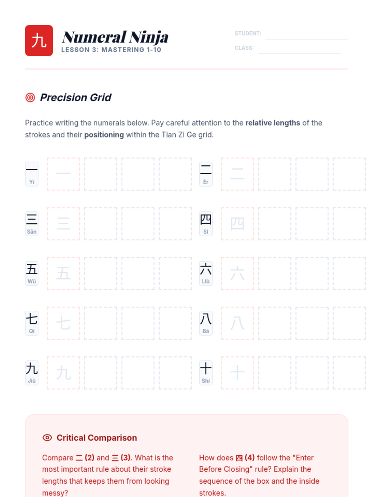 This sequence introduces 6th-grade students to the foundational strokes and rules of Mandarin Chinese character writing. Through a blend of cultural exploration and rigorous skill-building, students learn the 'Four Treasures of the Study,' master the eight basic strokes, and internalize the seven governing rules of stroke order to produce legible and balanced characters.