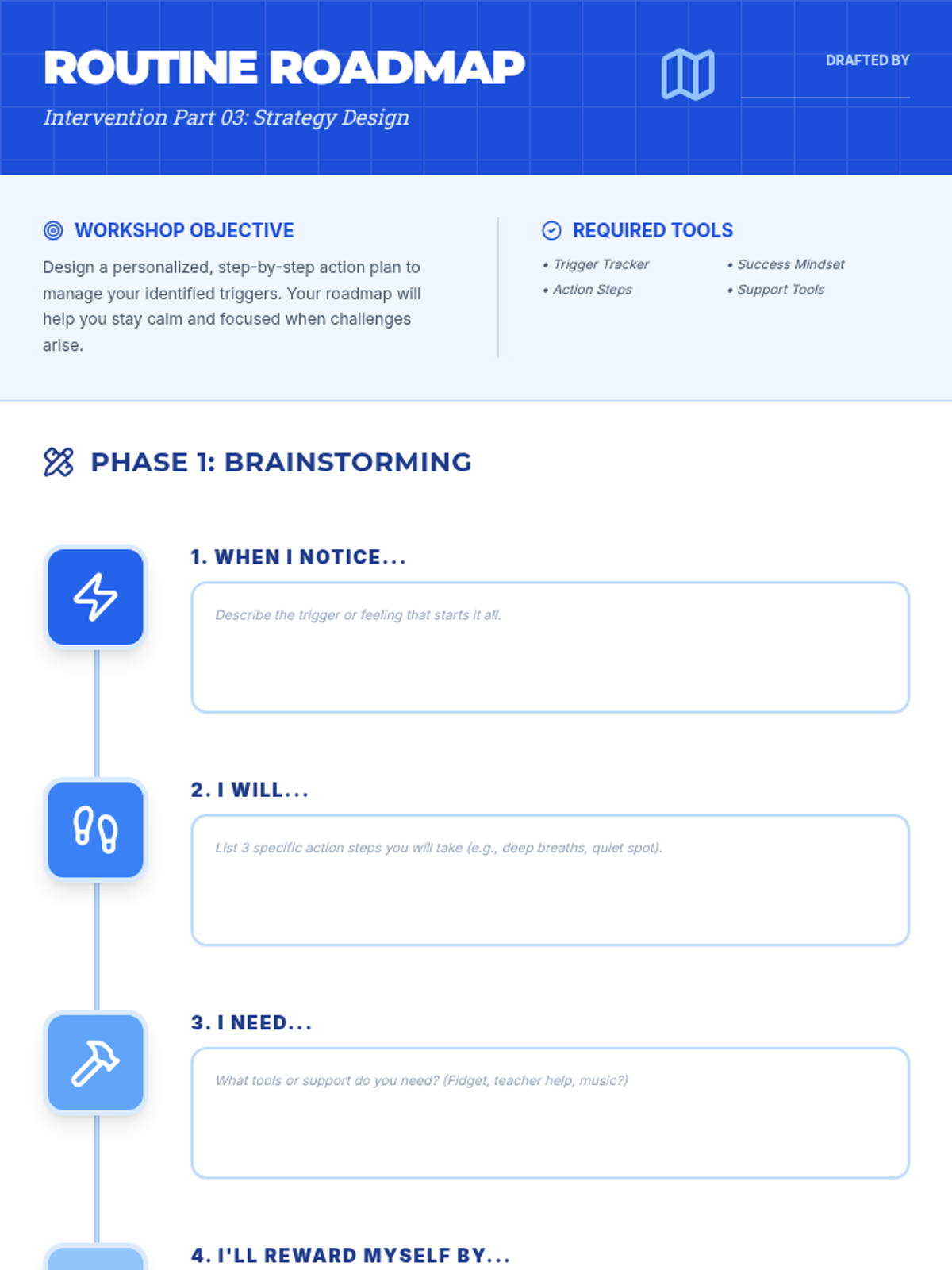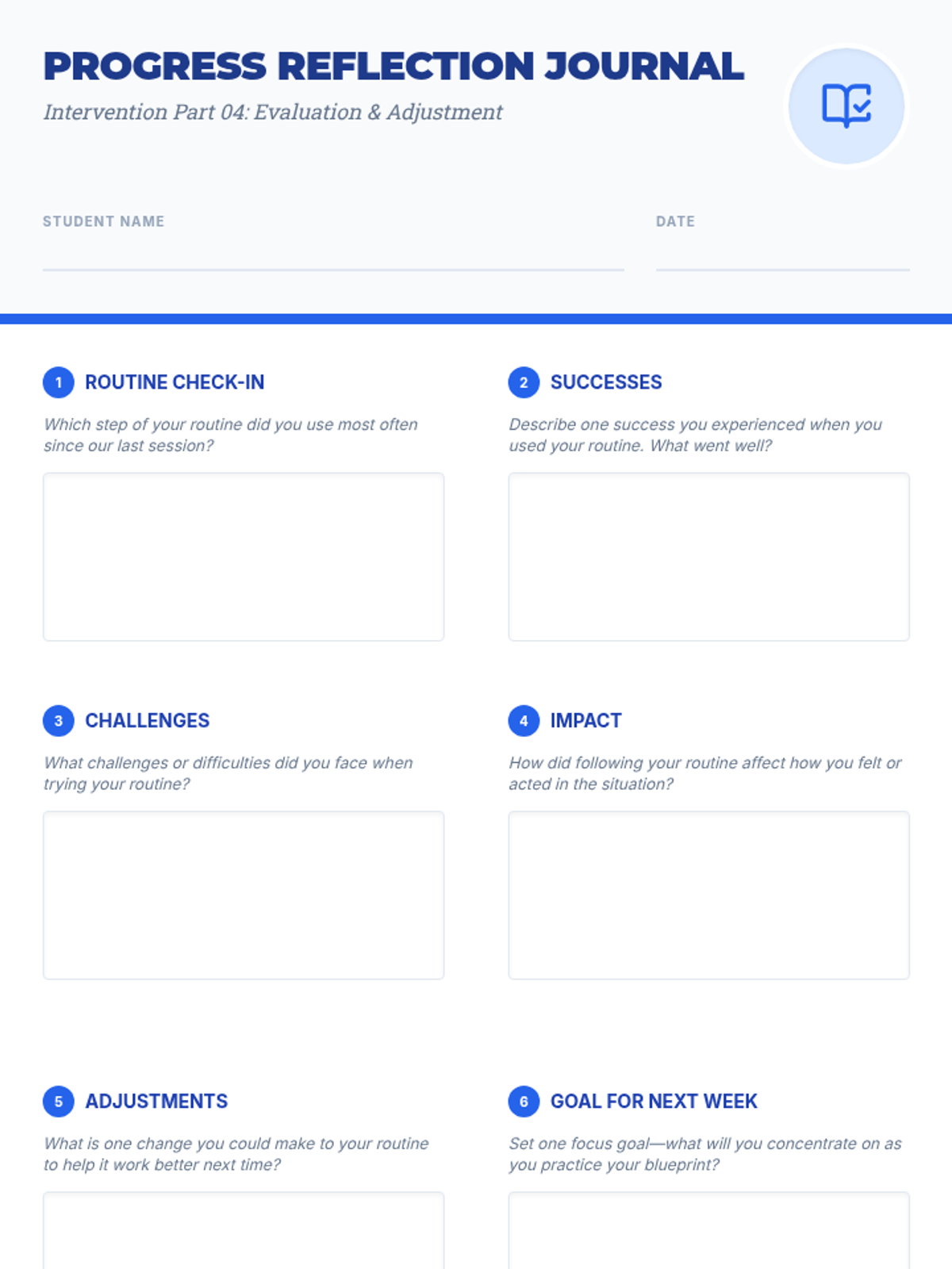 A 5-session small-group intervention for 5th graders to identify behavioral triggers, develop coping routines, and track progress toward self-regulation goals.