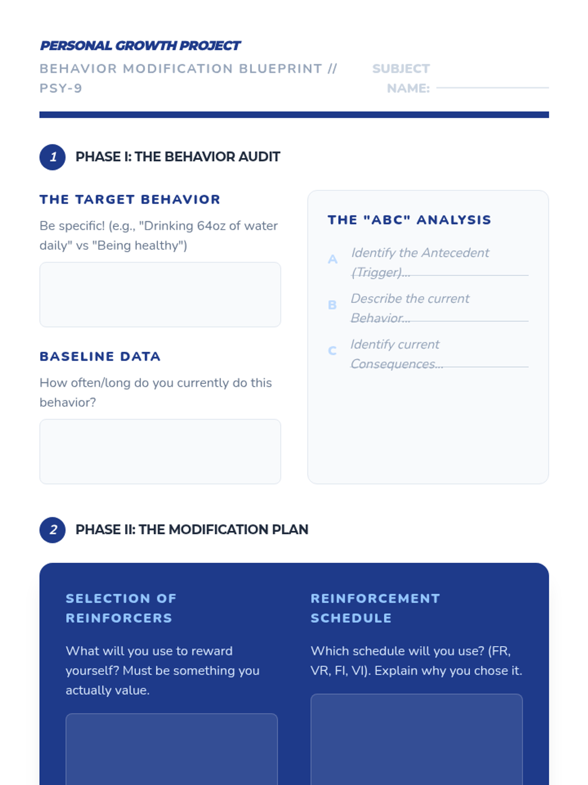 A comprehensive 9th-grade psychology unit on operant conditioning, covering foundational theories, the four quadrants of reinforcement and punishment, behavior shaping, reinforcement schedules, and personal behavior modification plans.