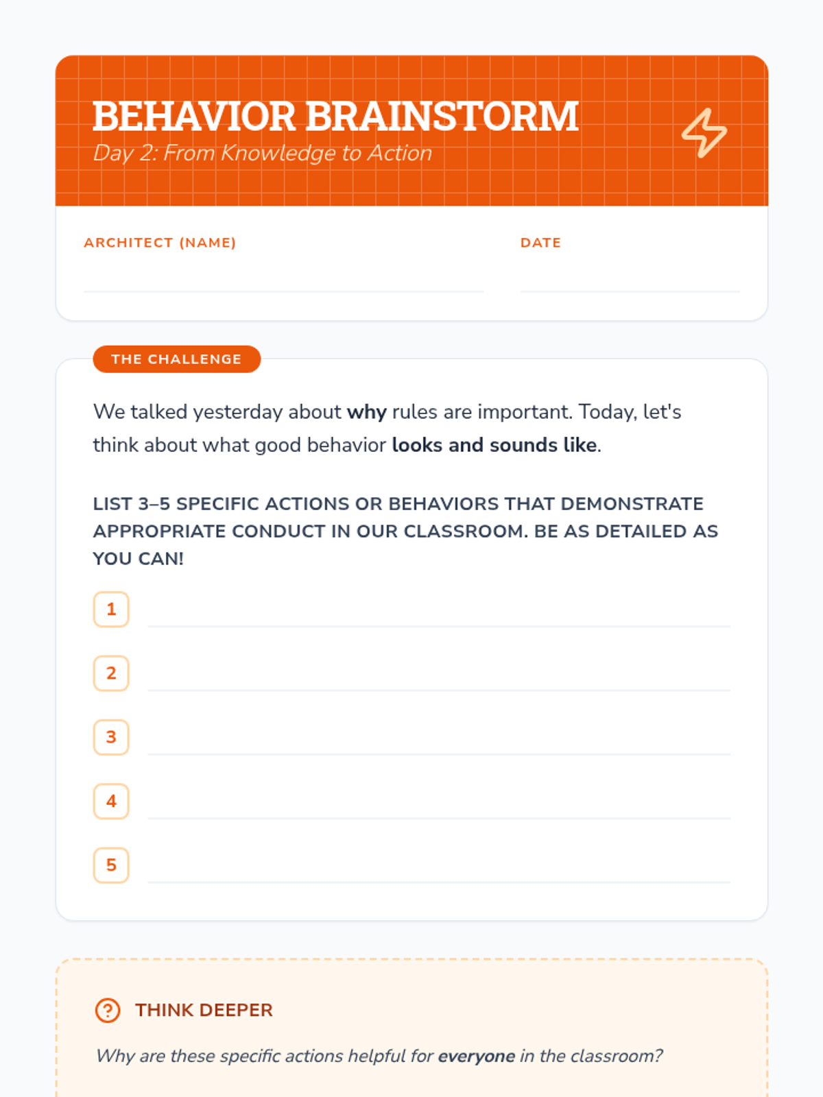 A 5-part journey into building positive mental habits, focusing on gratitude, mindfulness, and kindness through an architectural lens. Students act as 'Joy Architects' to design their own daily well-being routines.