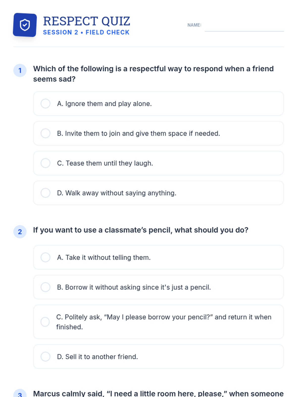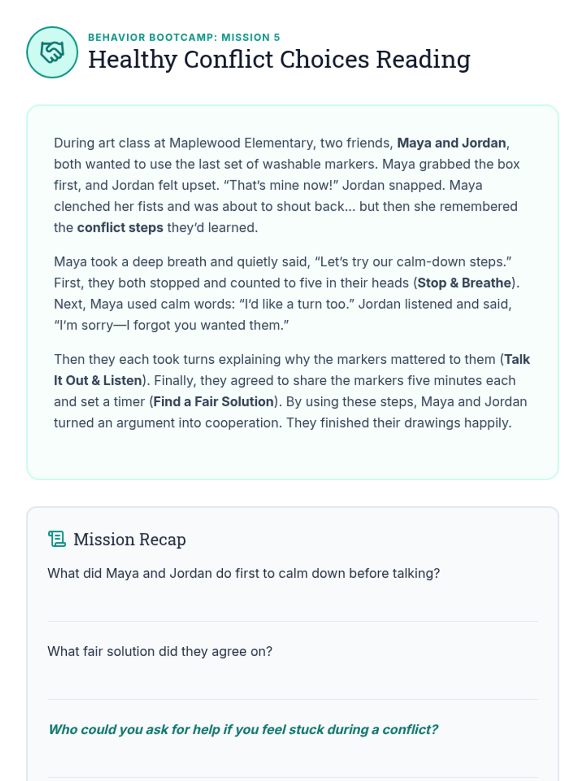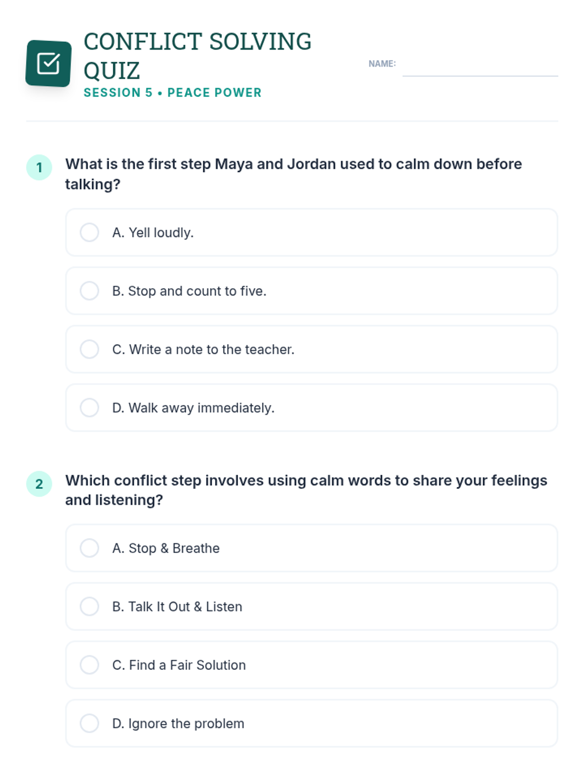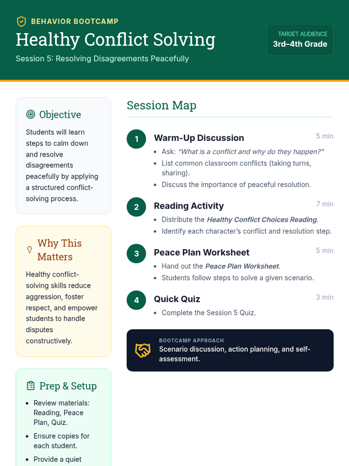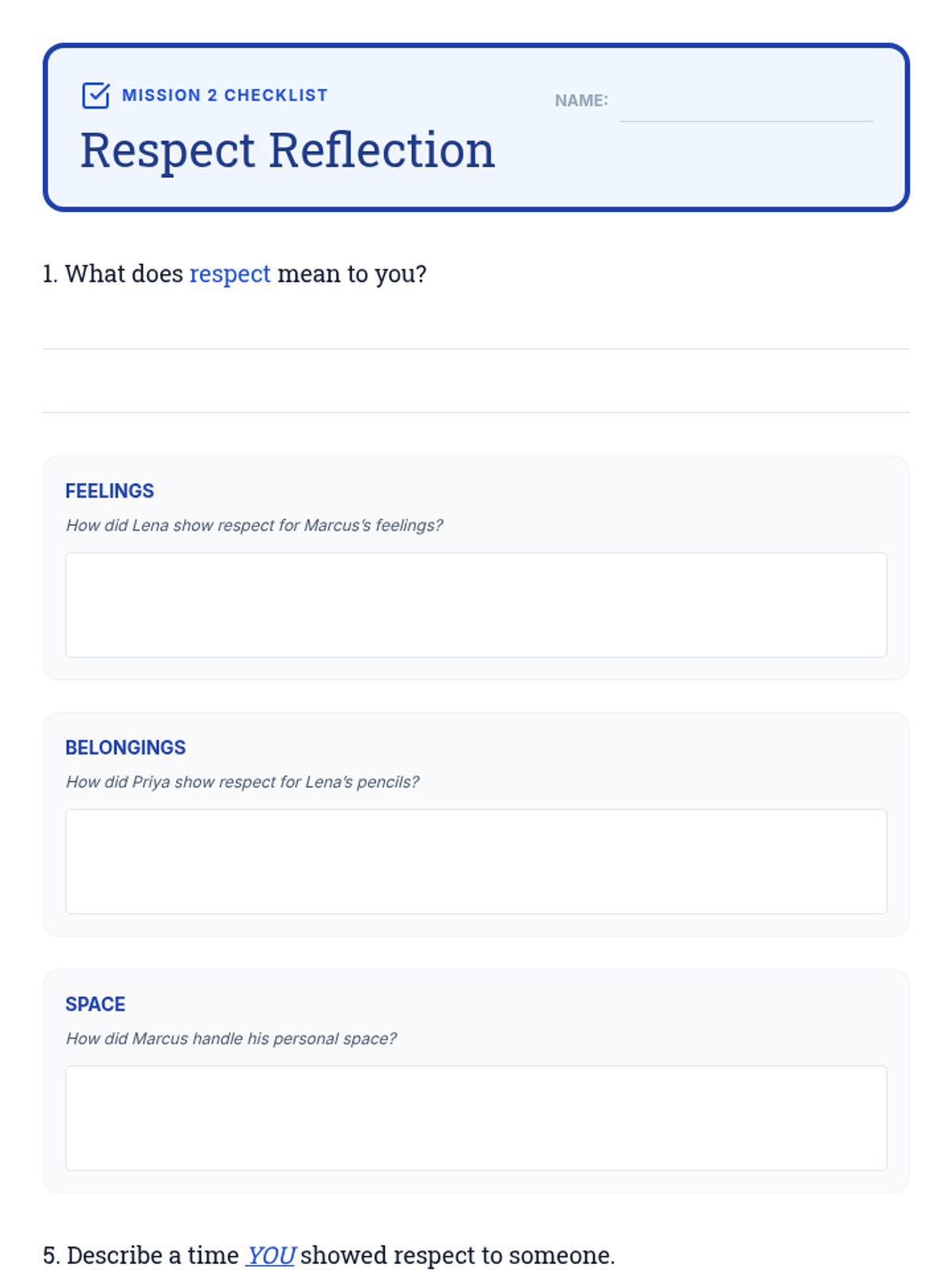 A 10-session individual self-paced intervention for 3rd–4th graders focusing on kindness, respect, appropriate language, and nonviolence to reduce swearing, aggression, and prejudice.