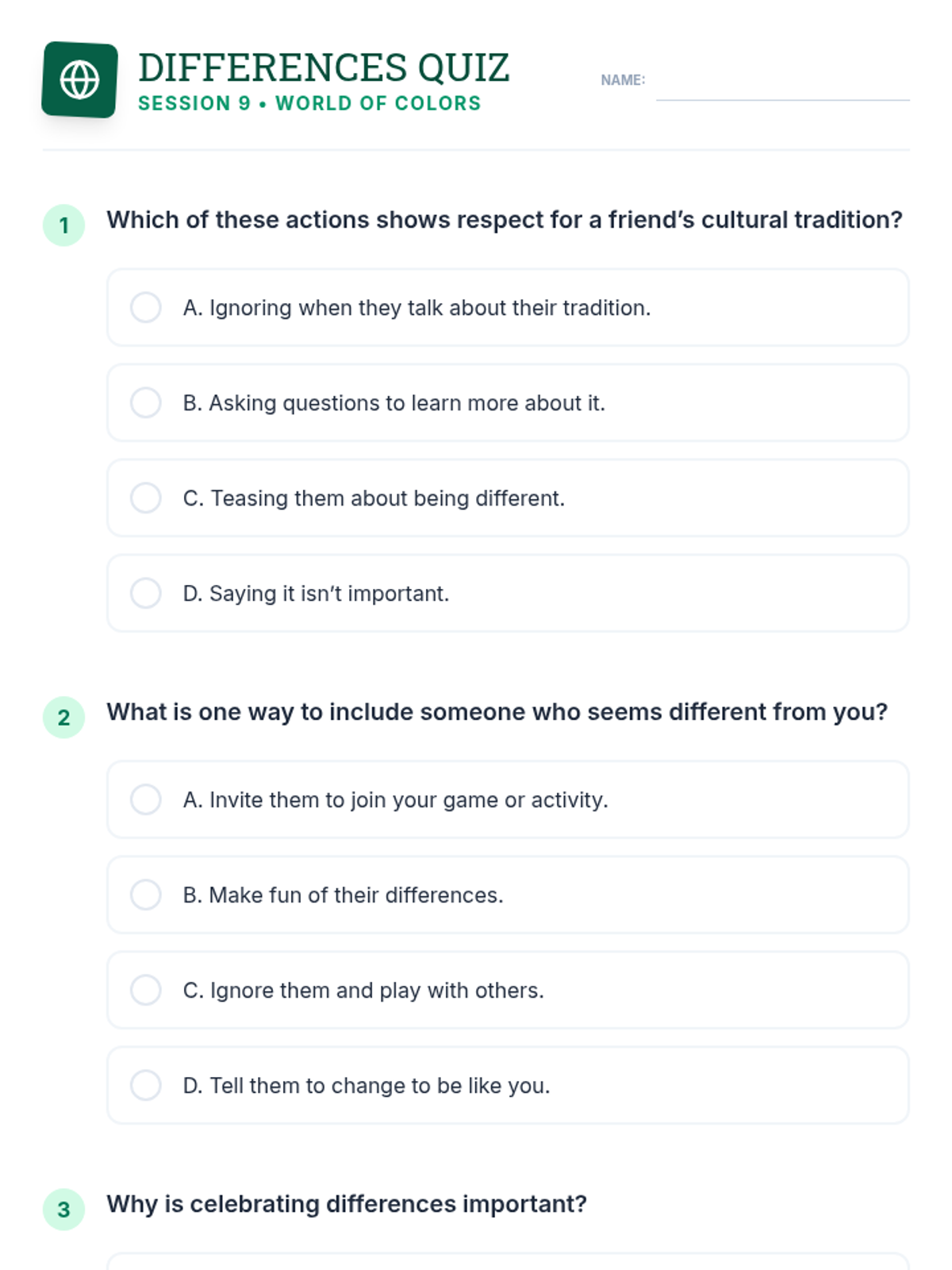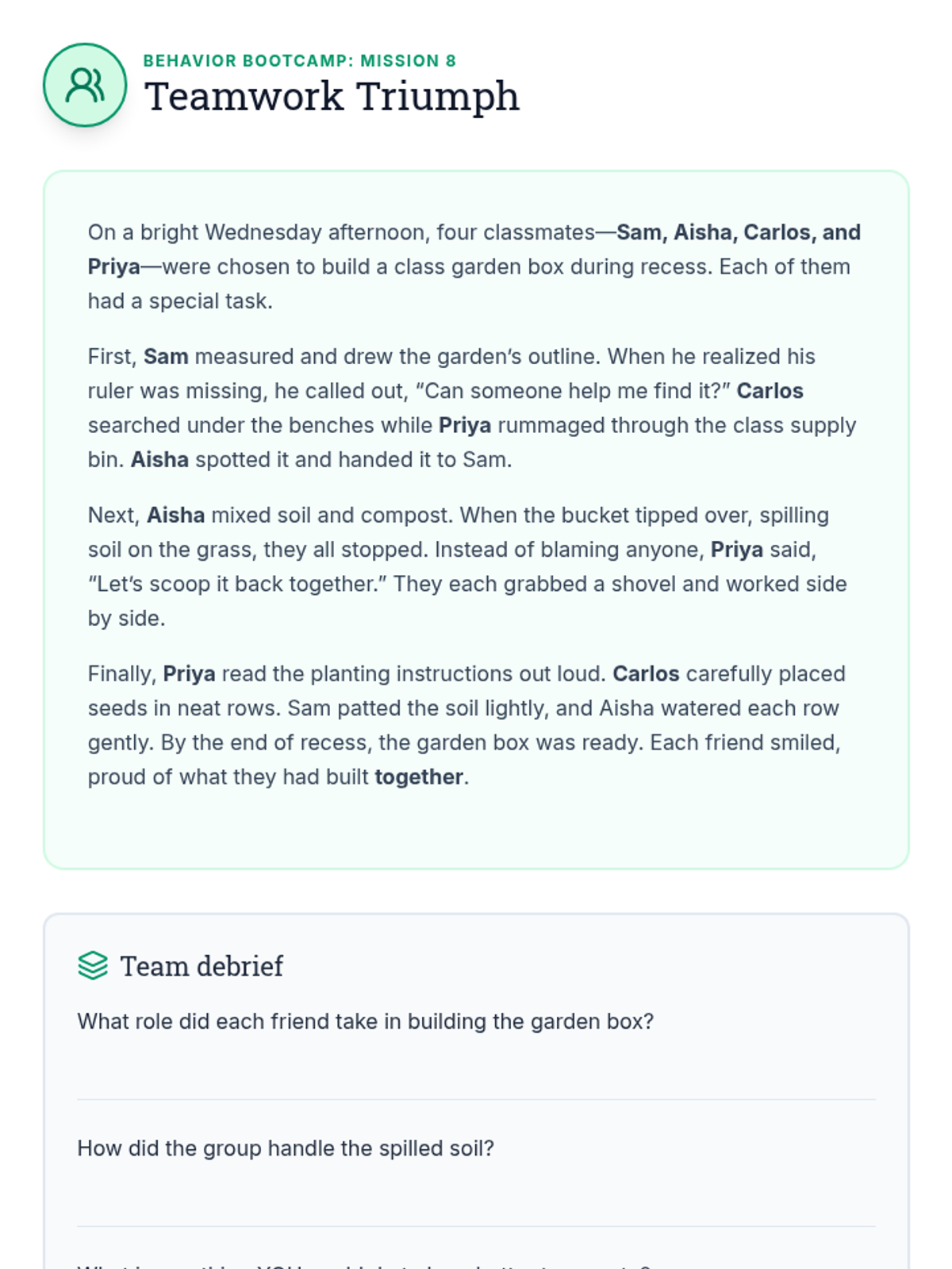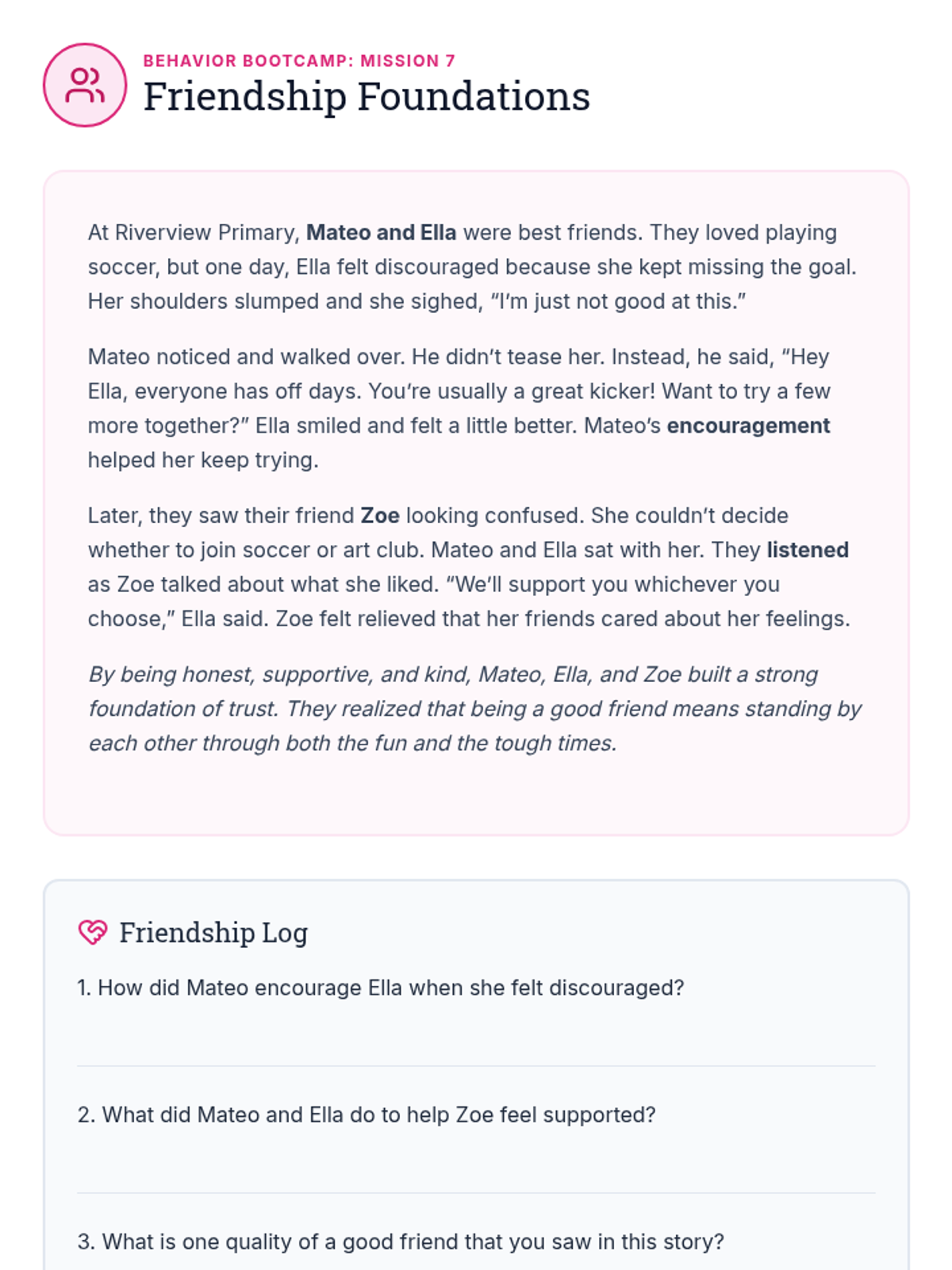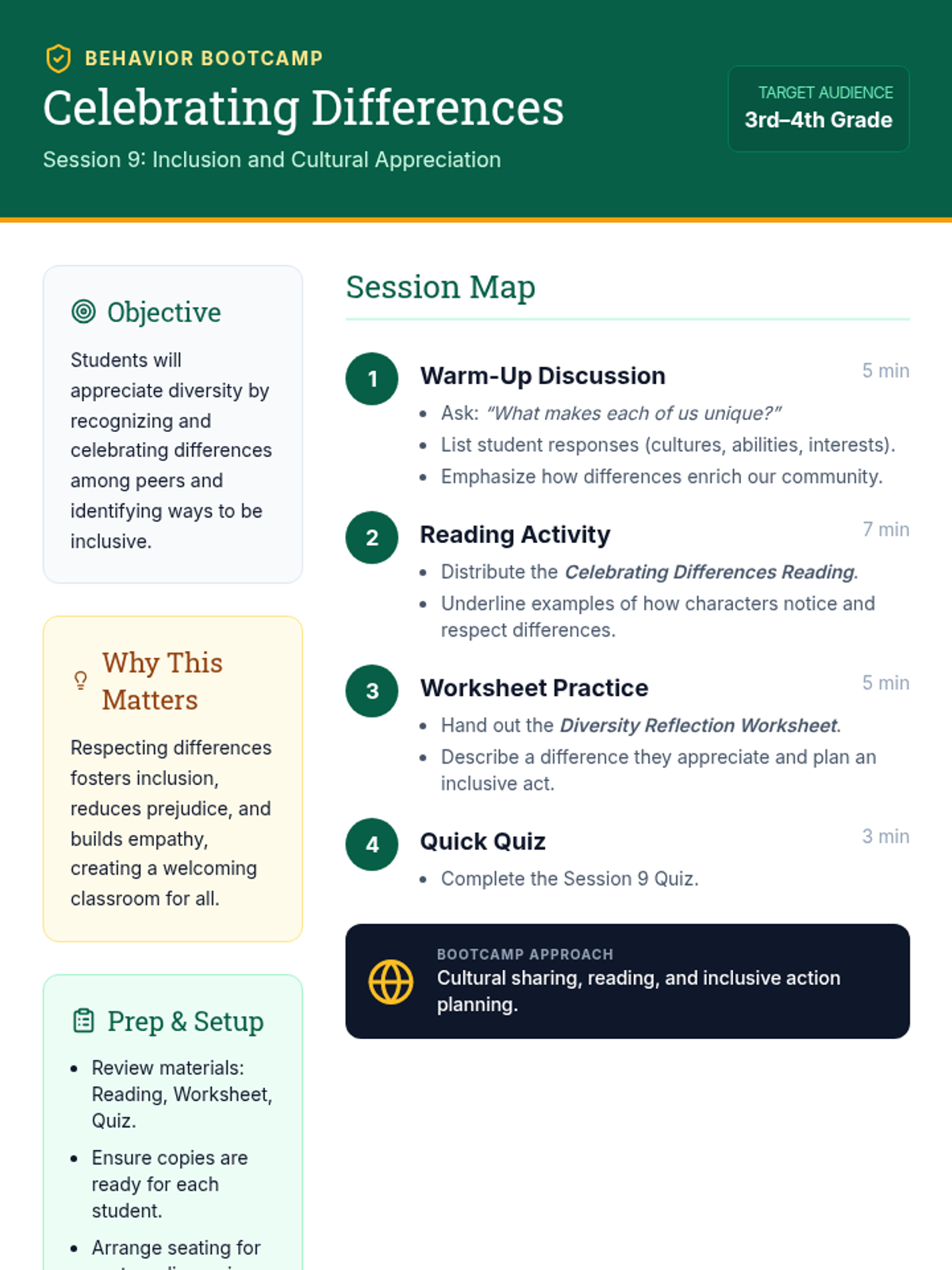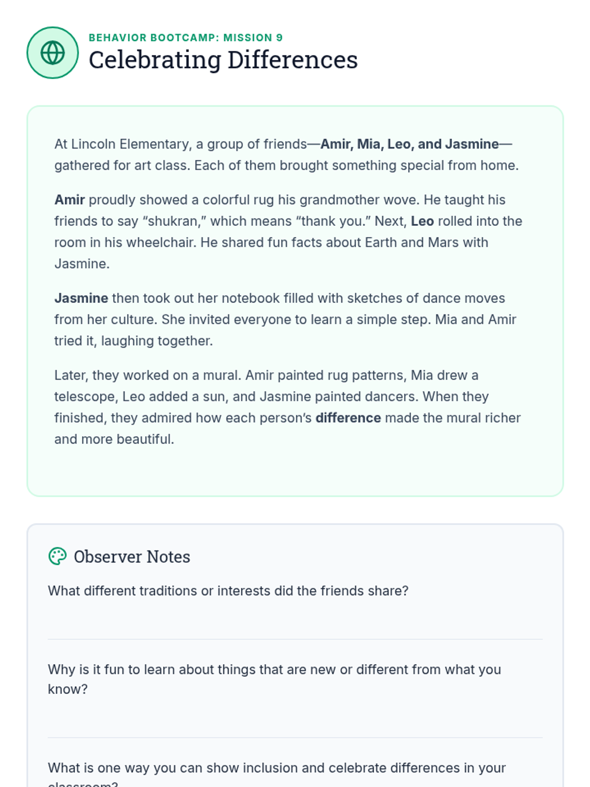A 10-session individual self-paced intervention for 3rd–4th graders focusing on kindness, respect, appropriate language, and nonviolence to reduce swearing, aggression, and prejudice.