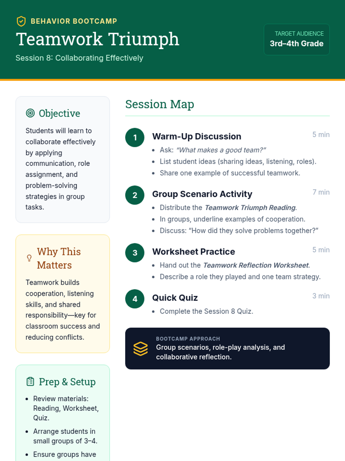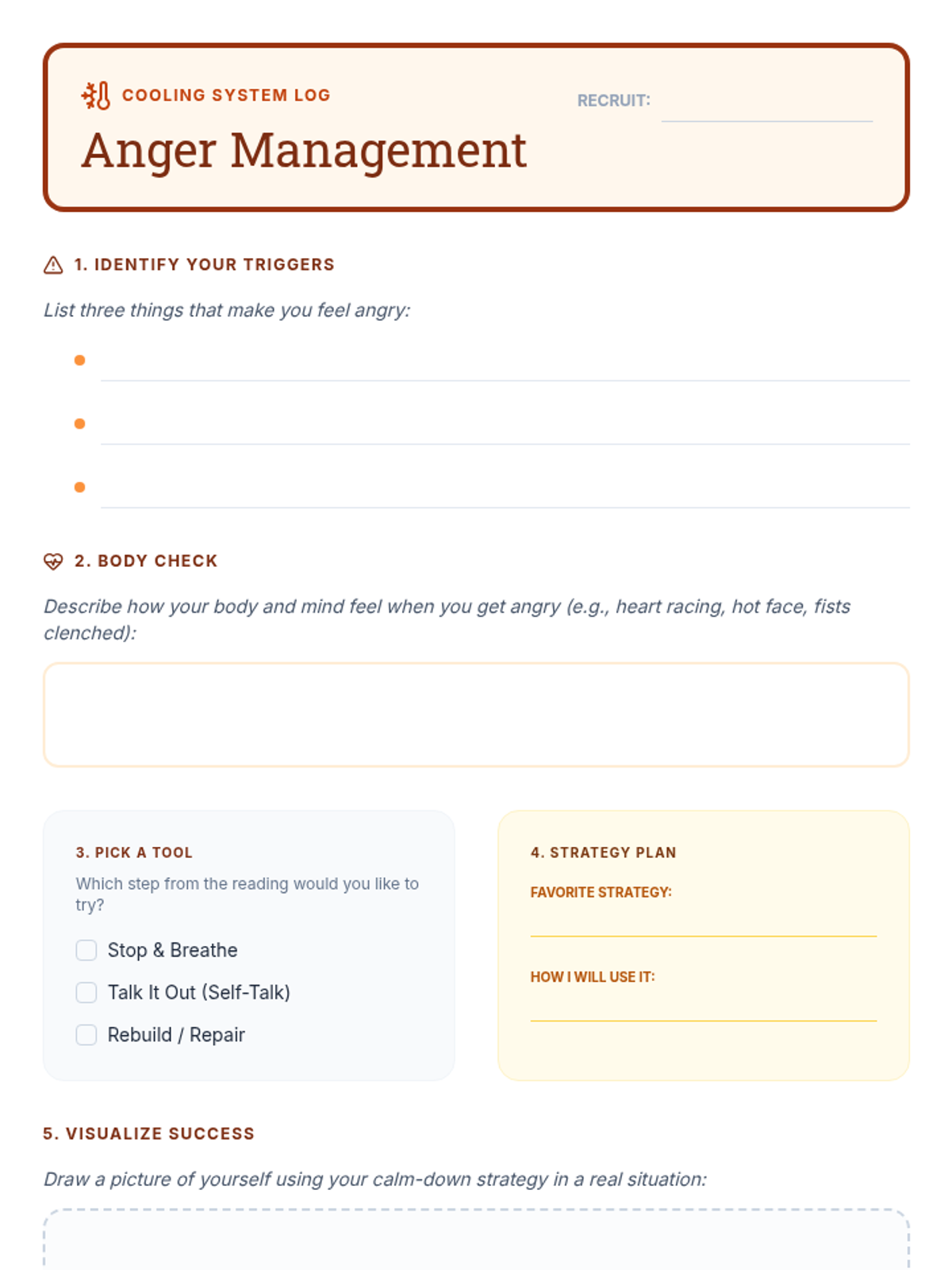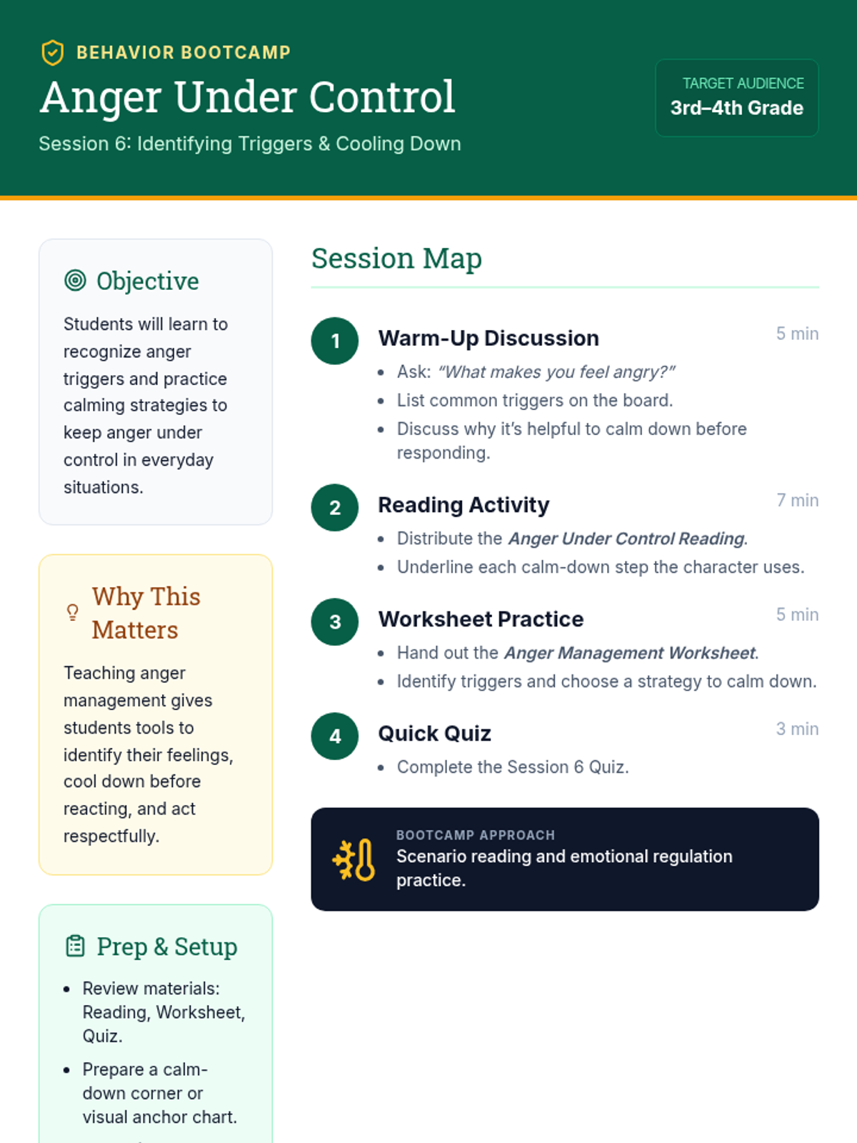 A multi-day social-emotional learning sequence that teaches students how to identify, manage, and communicate difficult emotions like anger and conflict using the metaphor of an 'Emotional Backpack'. Designed with high-visual support for EAL and neurodivergent learners.