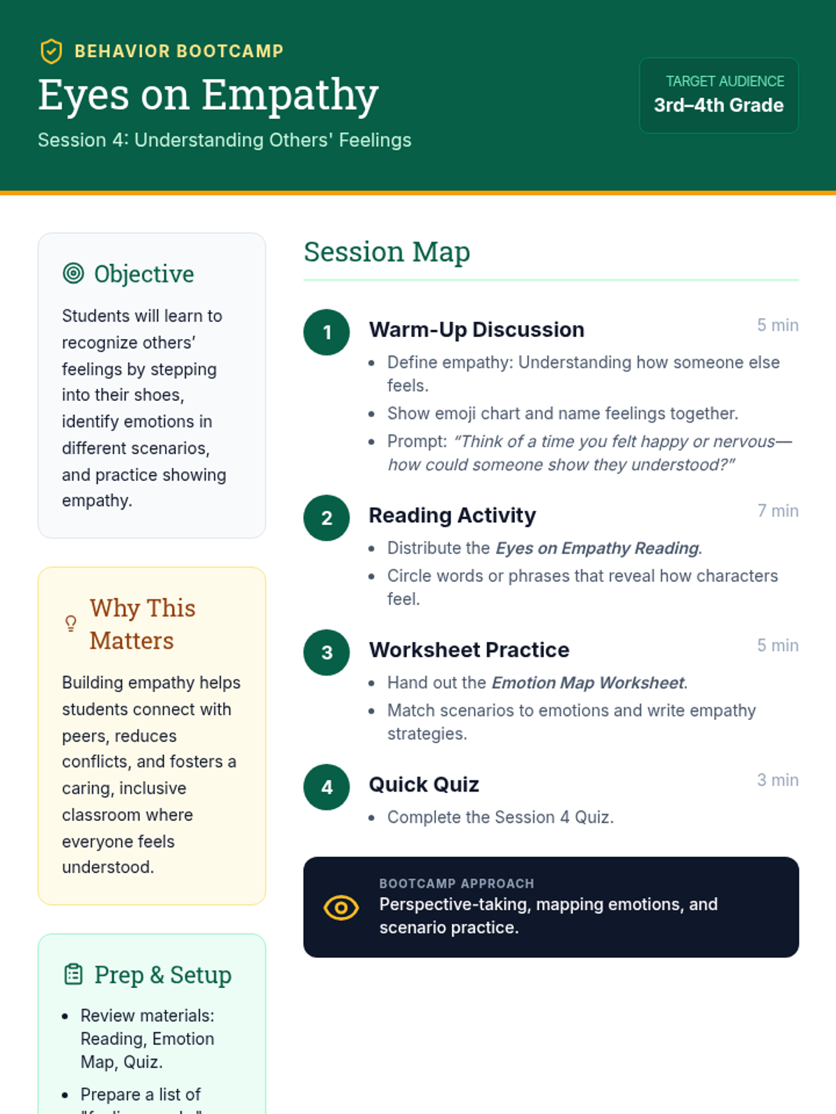 A comprehensive social-emotional learning unit for English Language Learners focused on identifying and managing emotions through four key instructional strategies: predictable routines, modeled talk, visual scaffolding, and word collection.