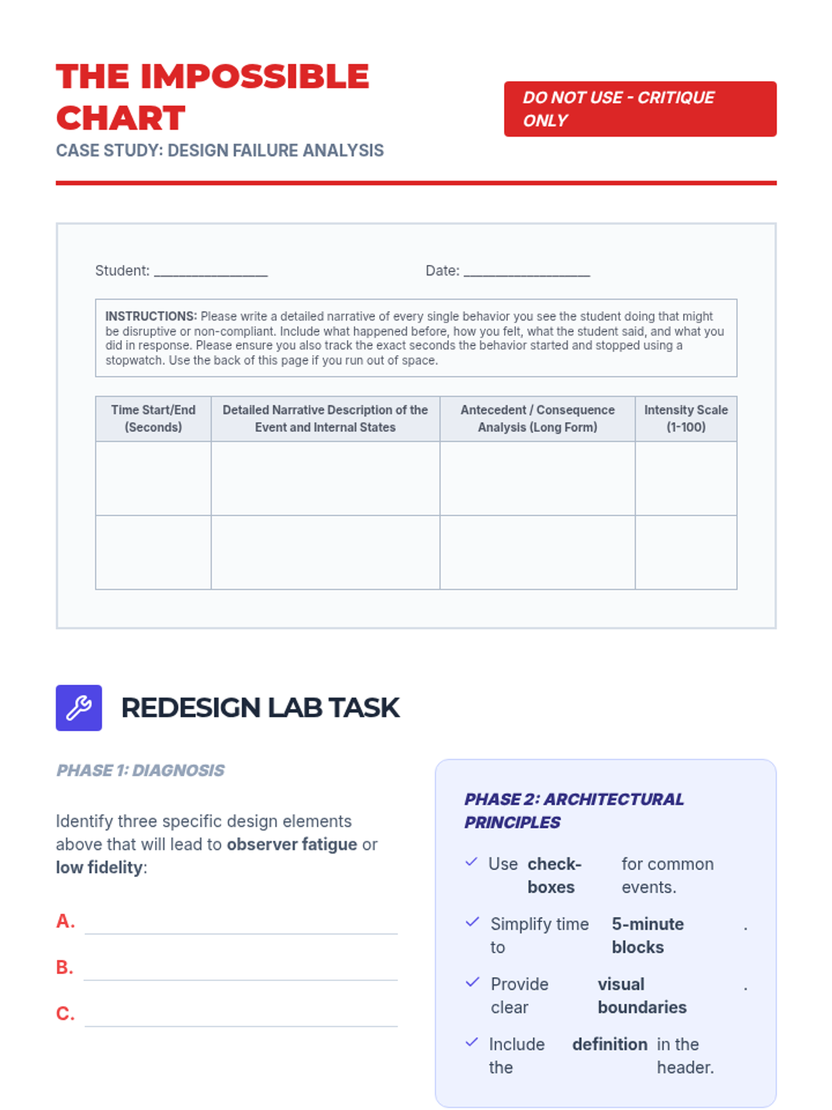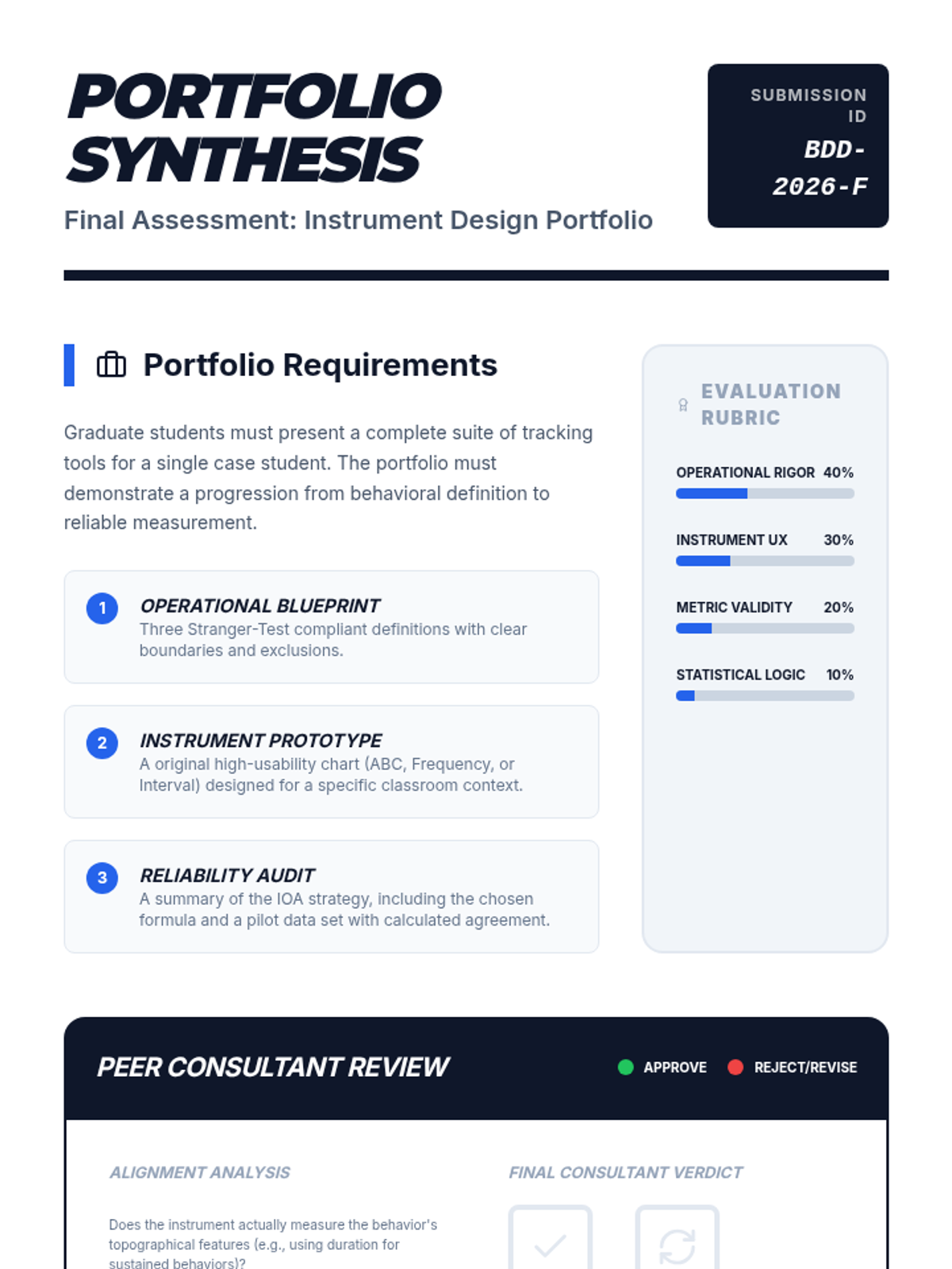 This graduate-level sequence focuses on the psychometric and practical aspects of designing behavioral data collection tools. Students will move from operationalizing behavior to selecting measurement systems, designing high-usability interfaces, and calculating inter-observer agreement to ensure data validity and reliability.