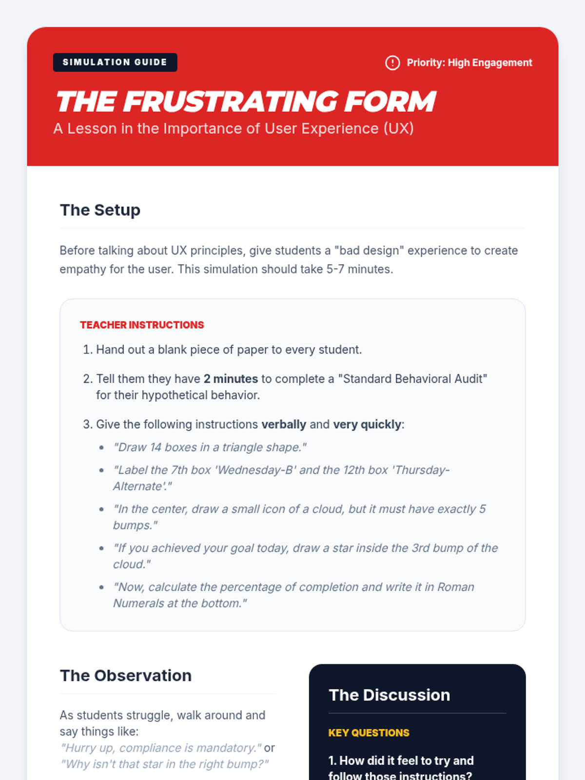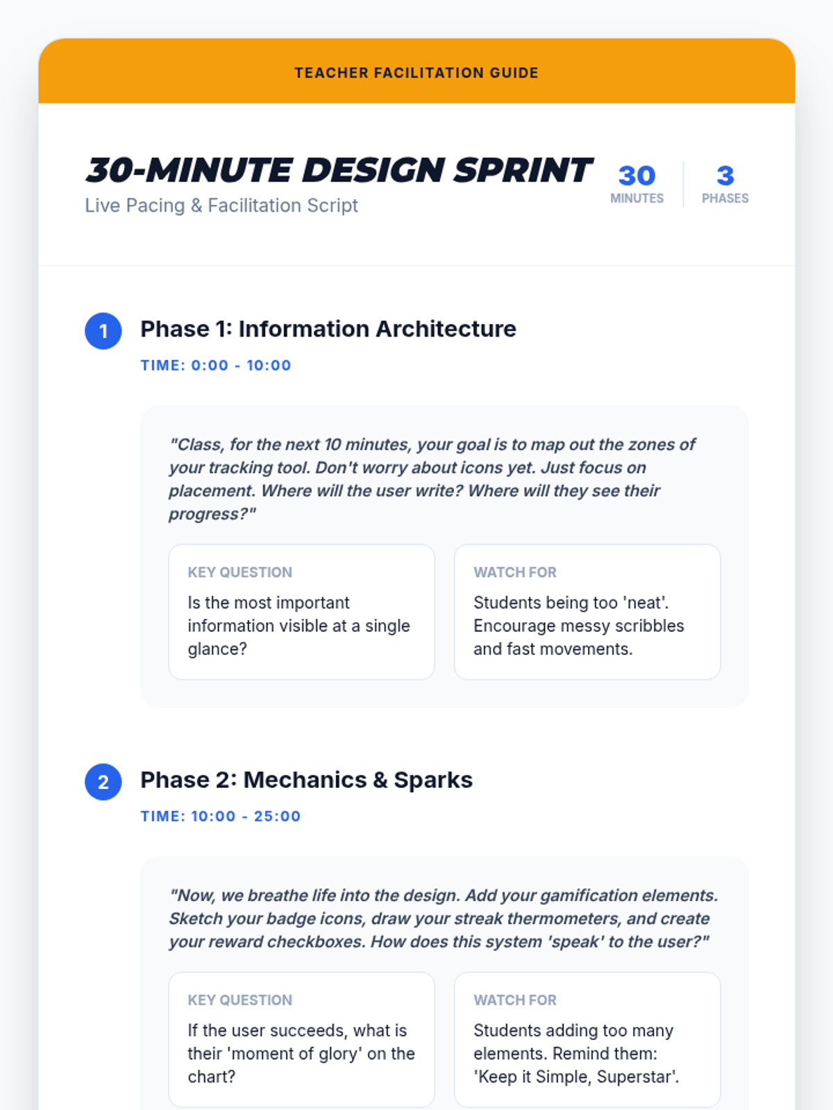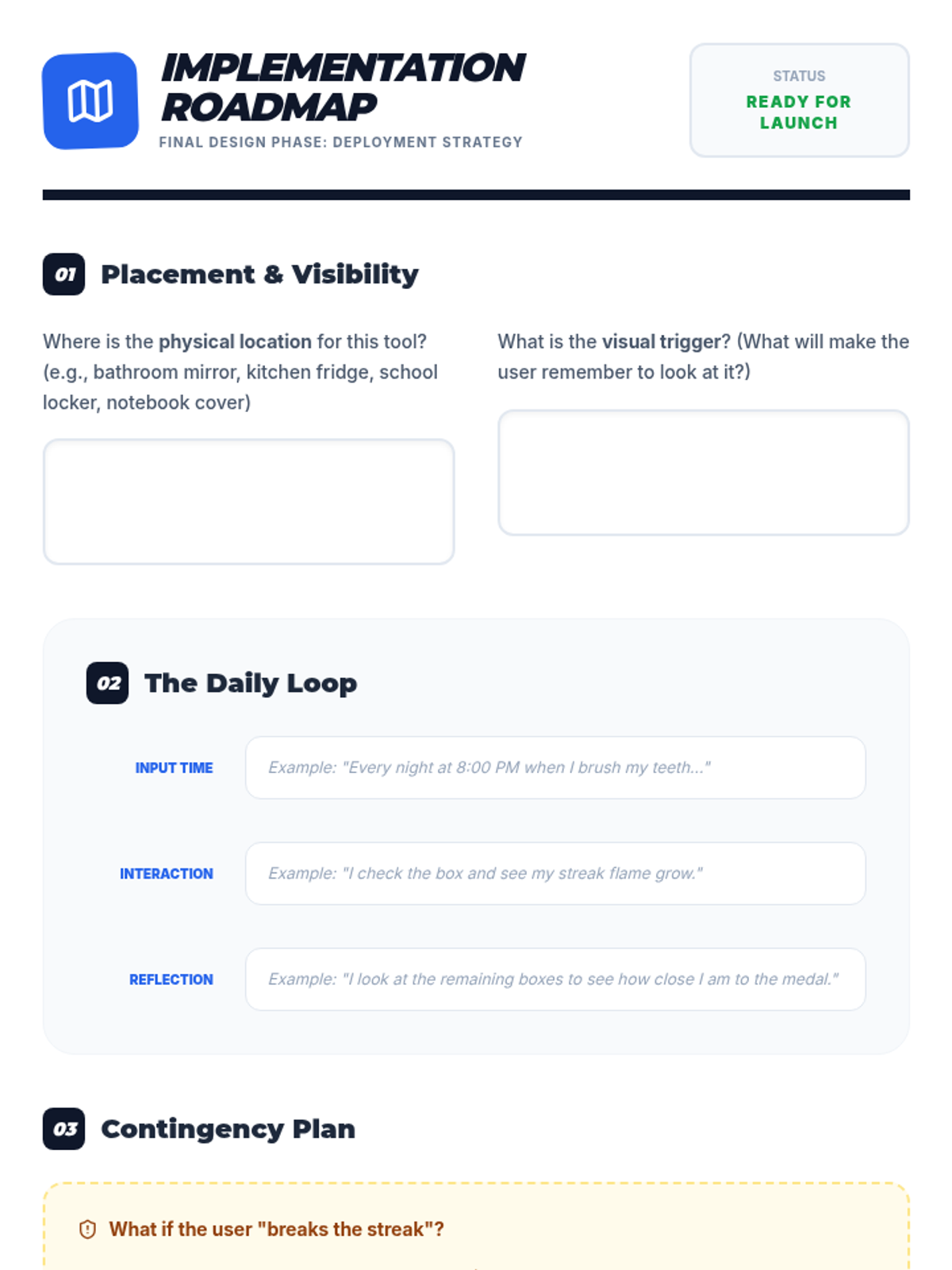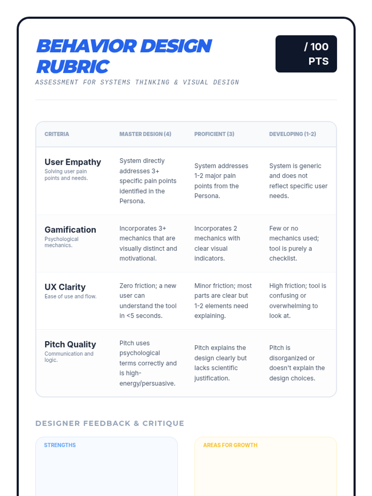 An 8th-grade sequence that merges design thinking with psychology, challenging students to create behavior tracking systems. Students explore user-centered design, gamification, and prototyping to build effective visual reinforcement tools.