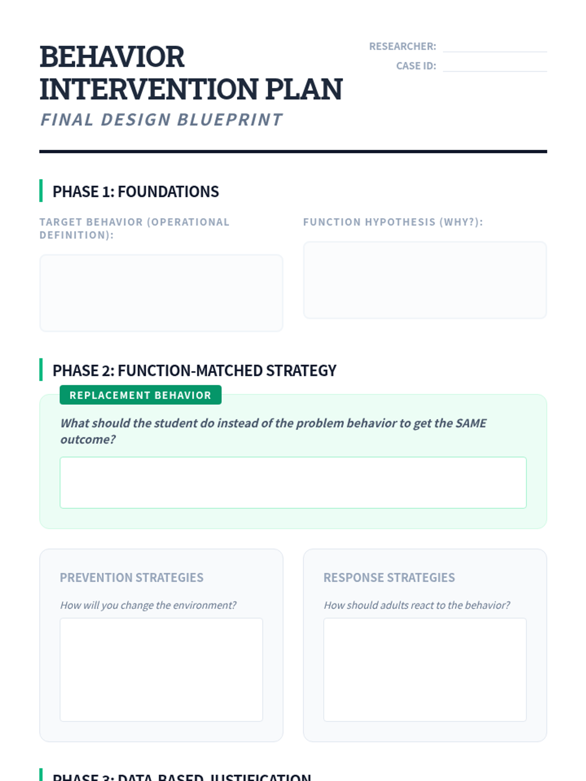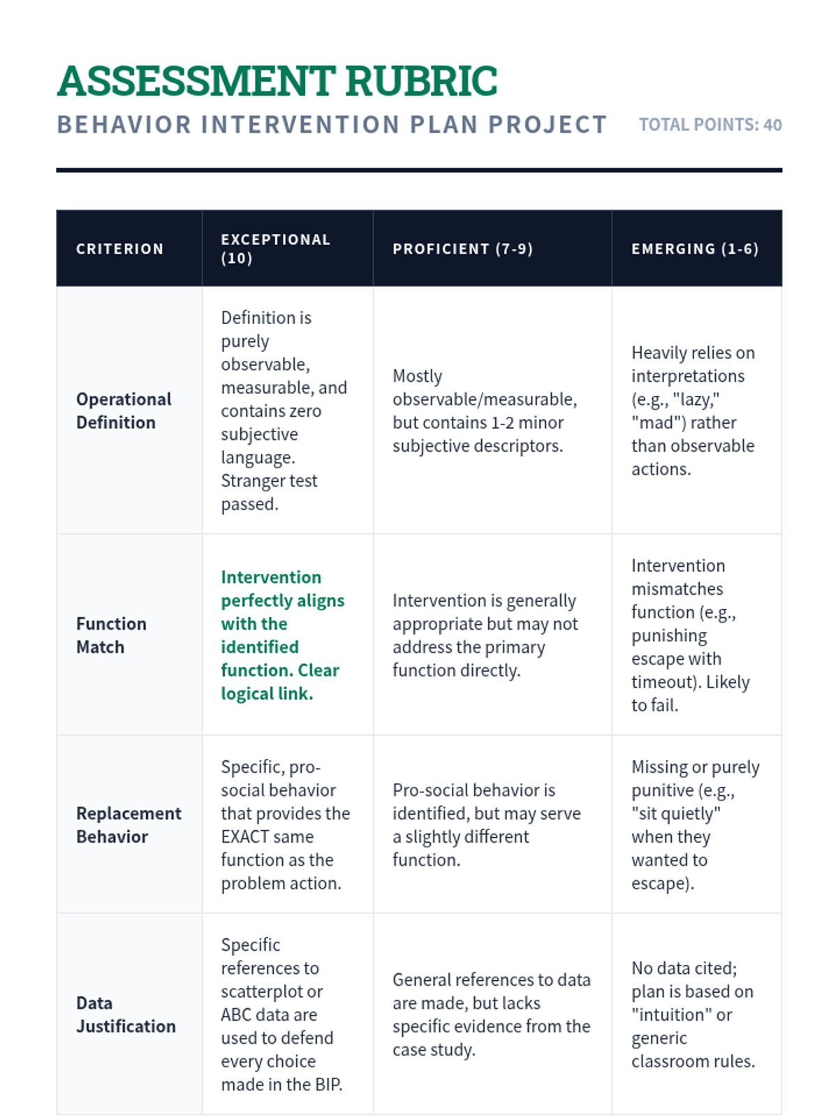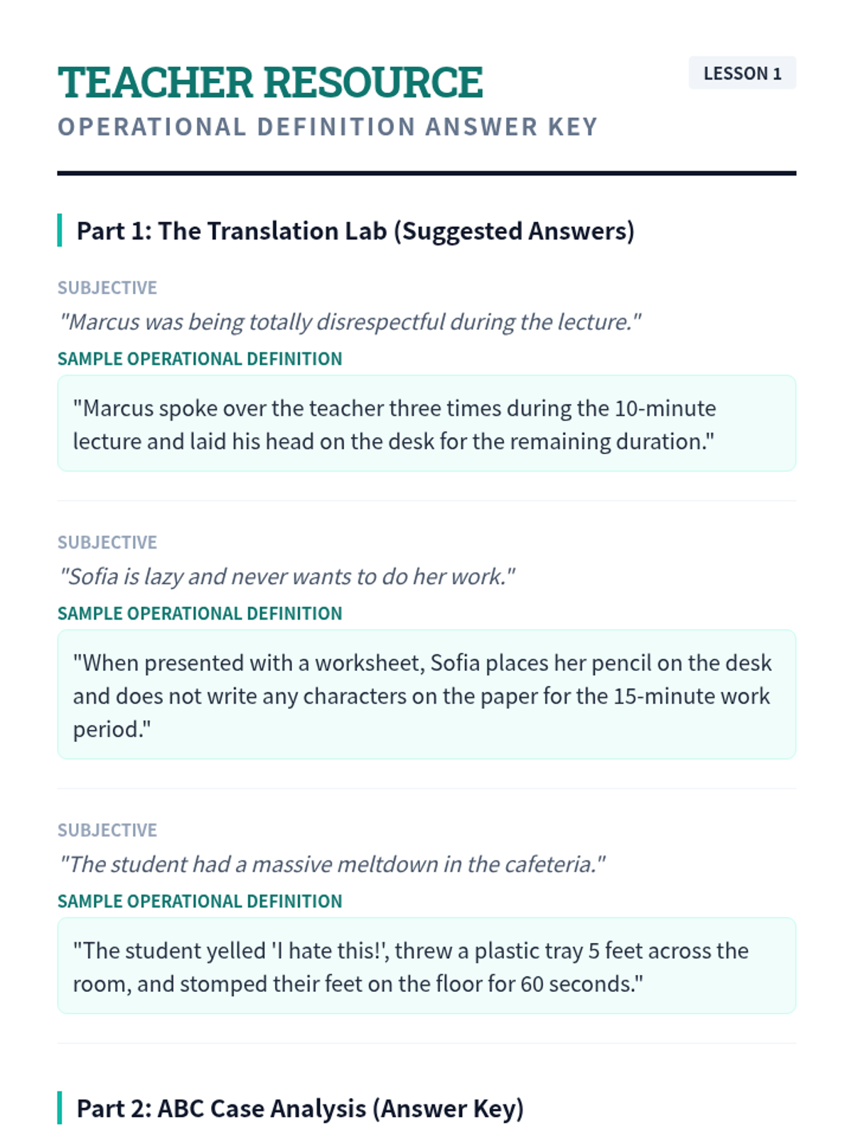 A comprehensive 11th-grade sequence on Functional Behavior Assessment (FBA). Students master the ABC model, quantitative data collection, pattern recognition, and function-matched intervention design to support behavioral growth.