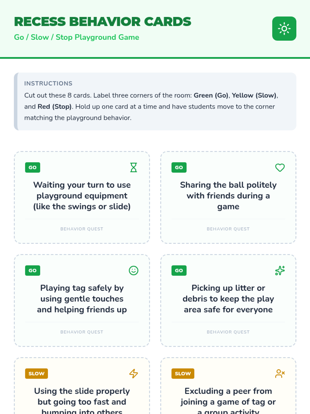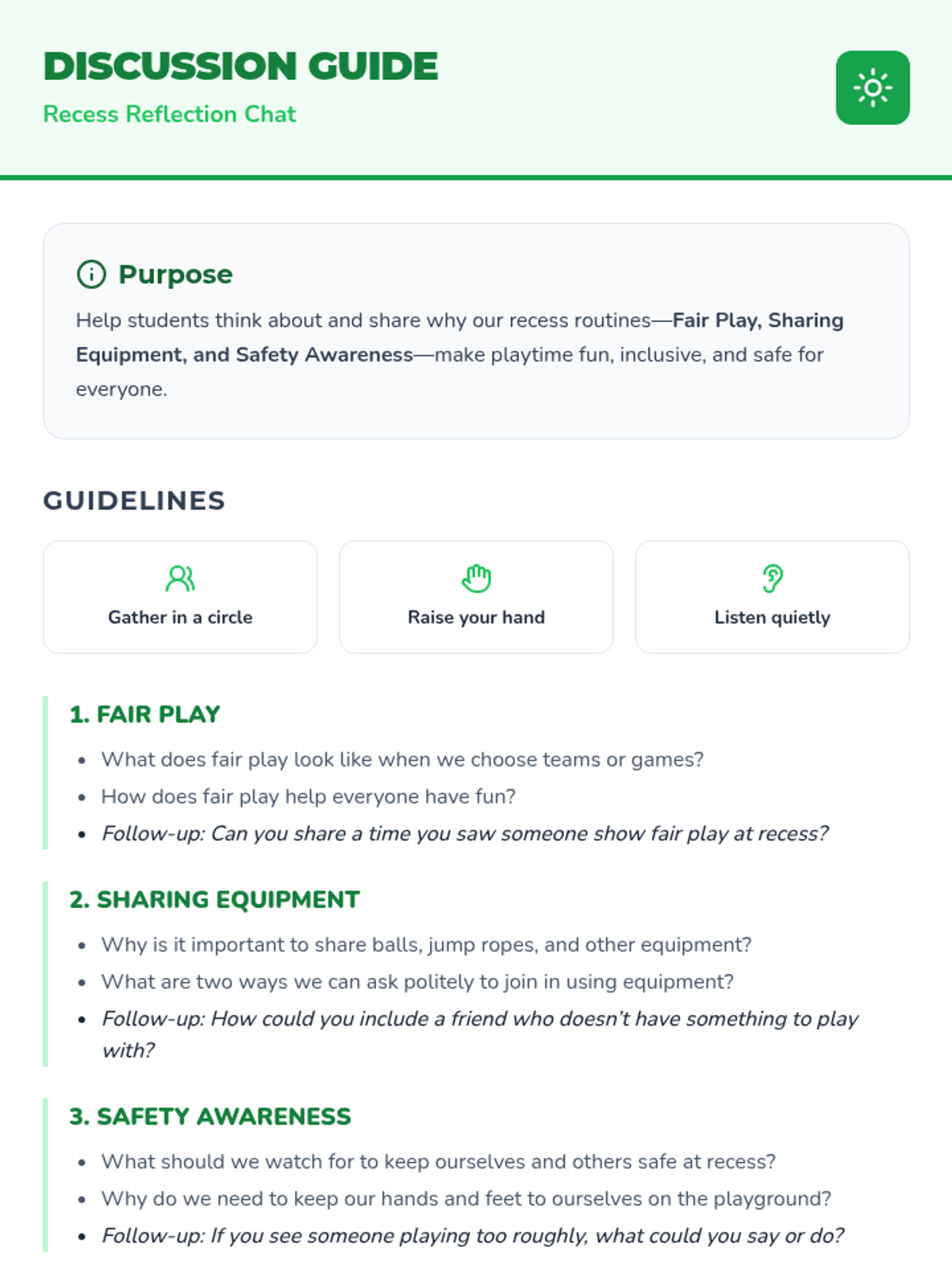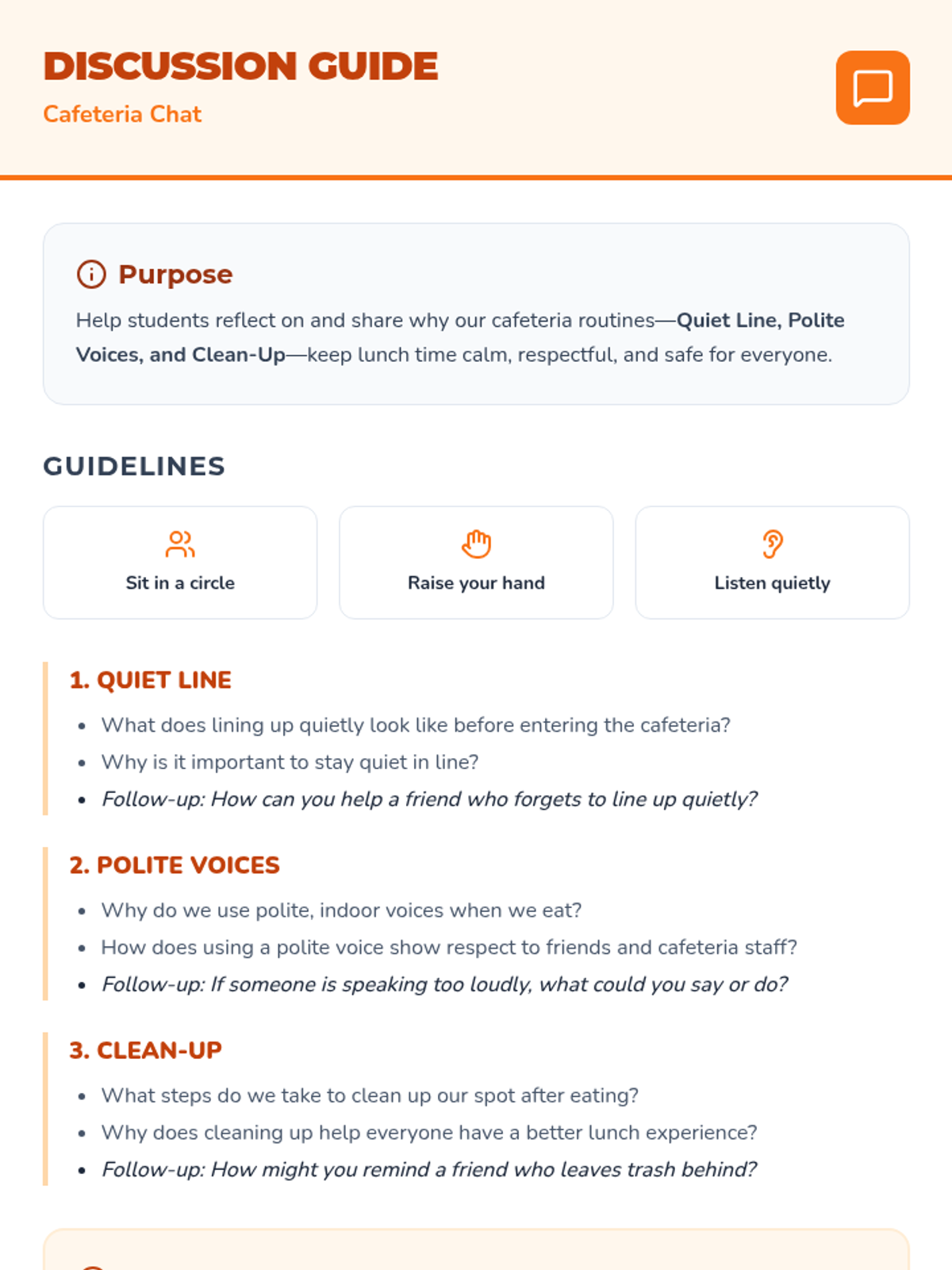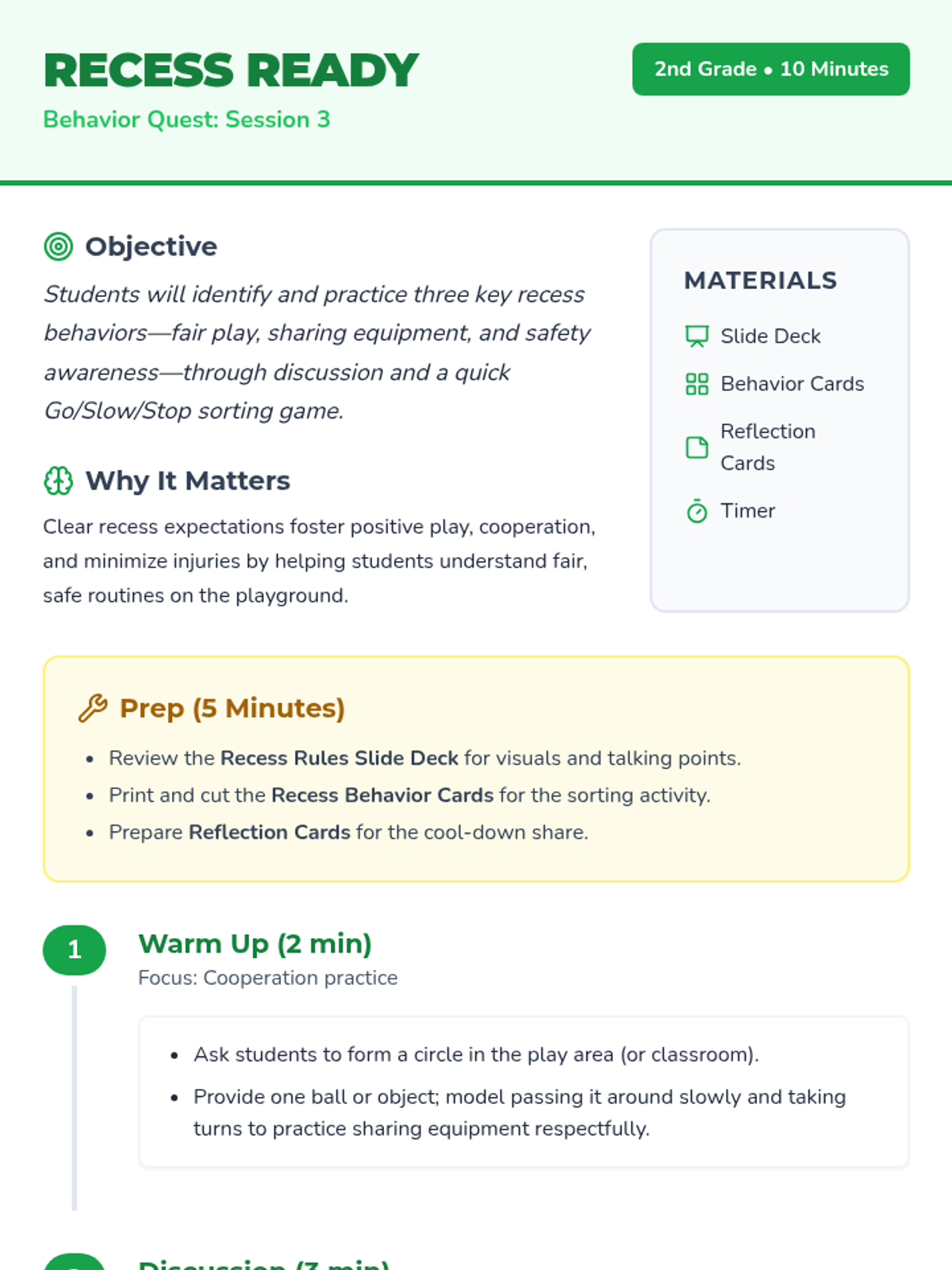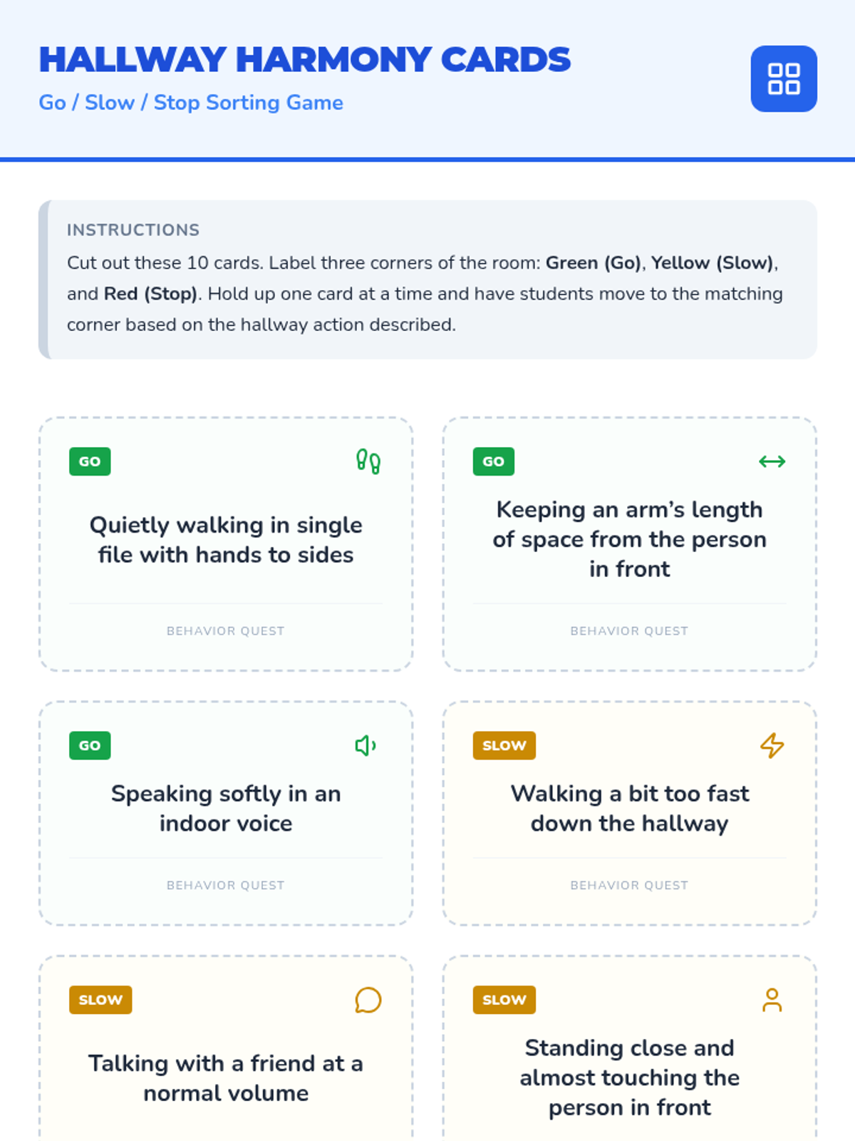 A 4-session classroom series for 2nd graders to learn positive hallway, cafeteria, and recess behaviors through interactive games and reflections.