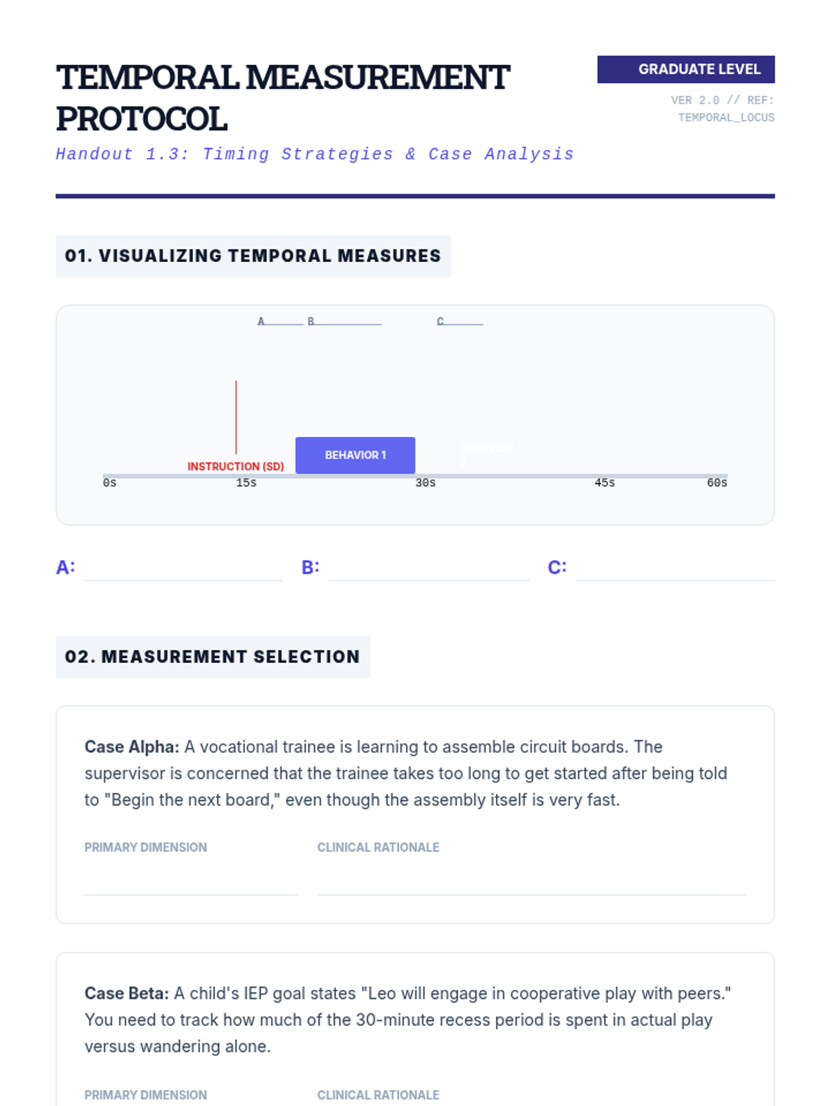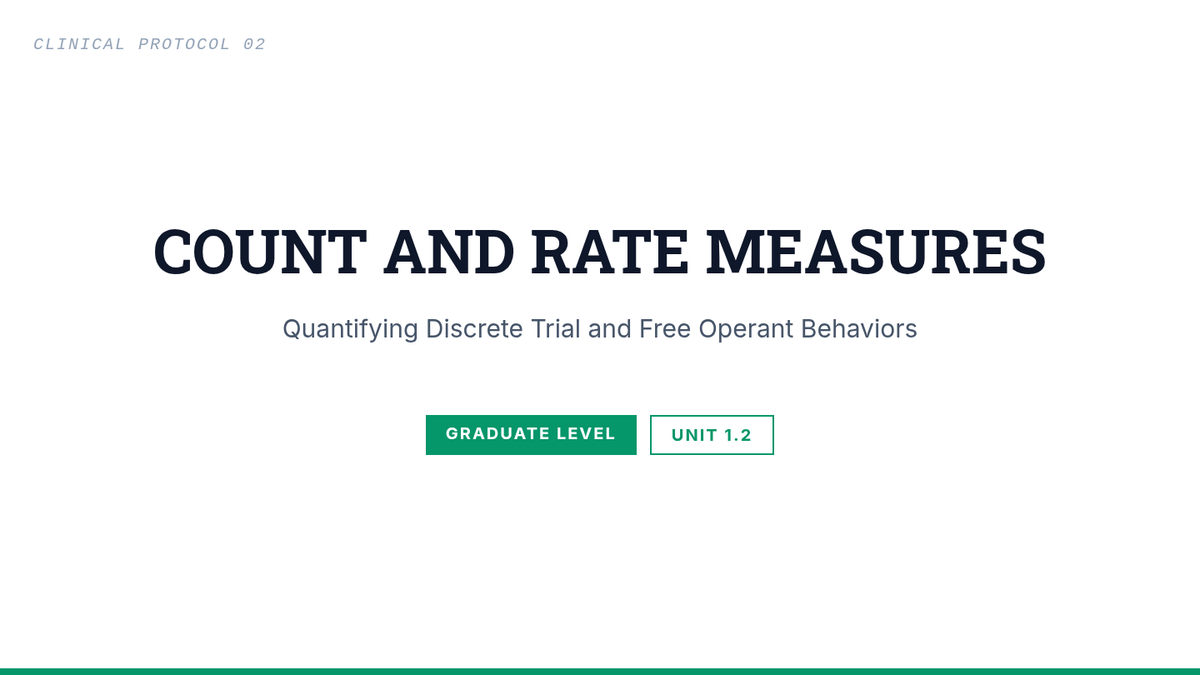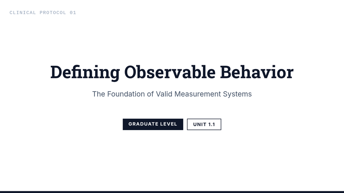 A technical workshop series for graduate students focused on designing valid and reliable behavioral measurement systems. Students master operational definitions, select appropriate measurement dimensions, and calculate Inter-Observer Agreement (IOA) to ensure data quality in clinical and educational settings.