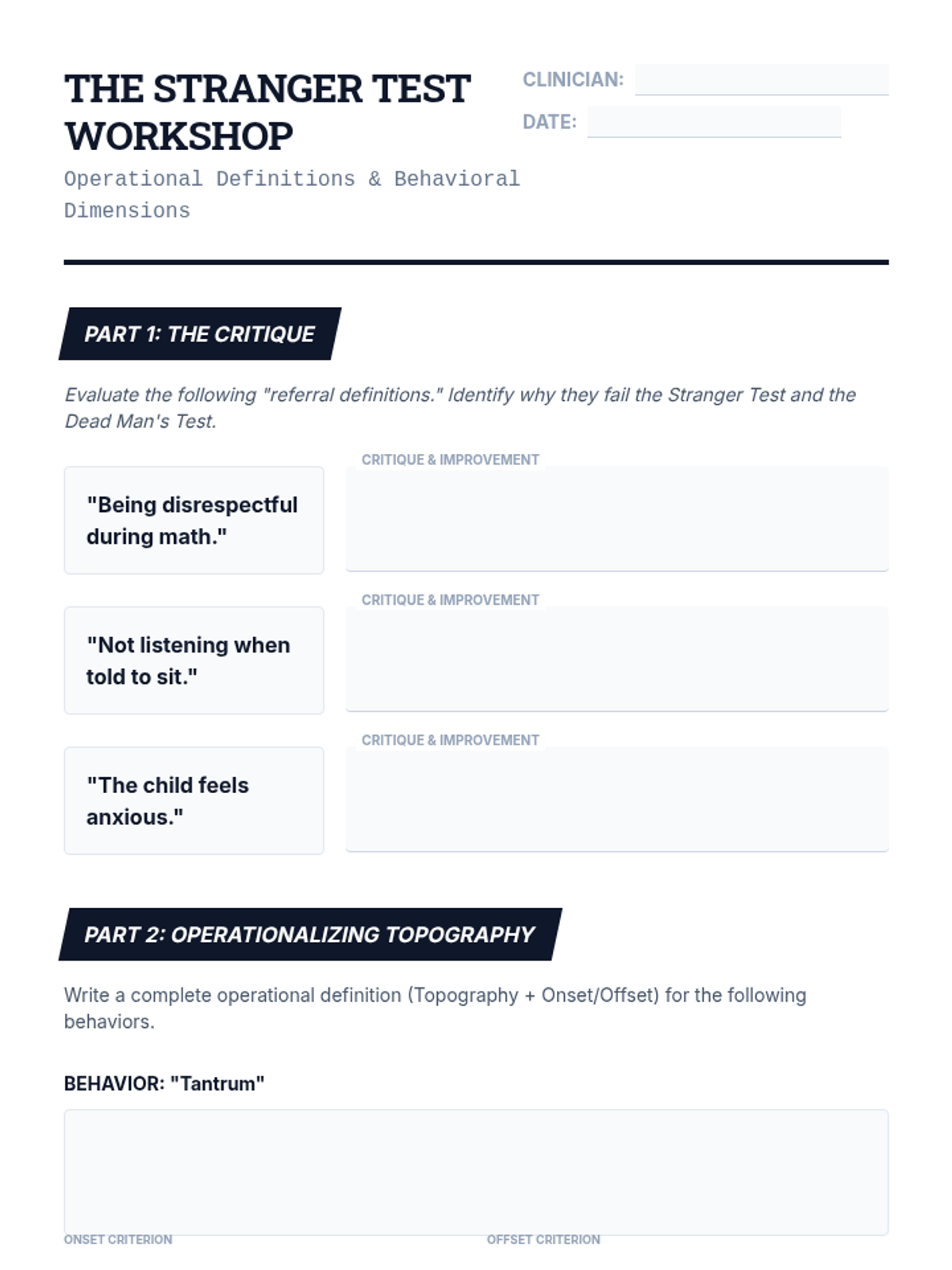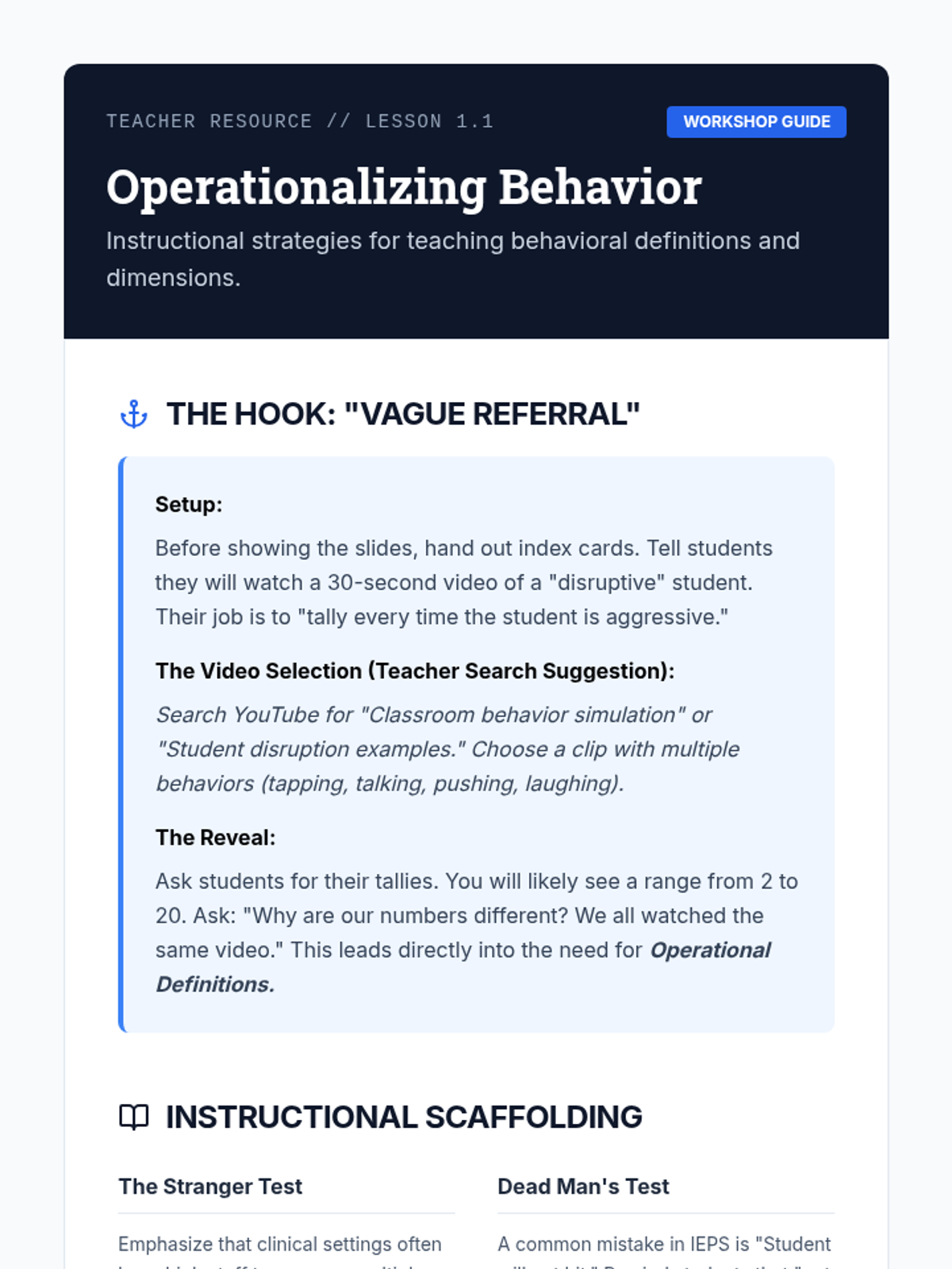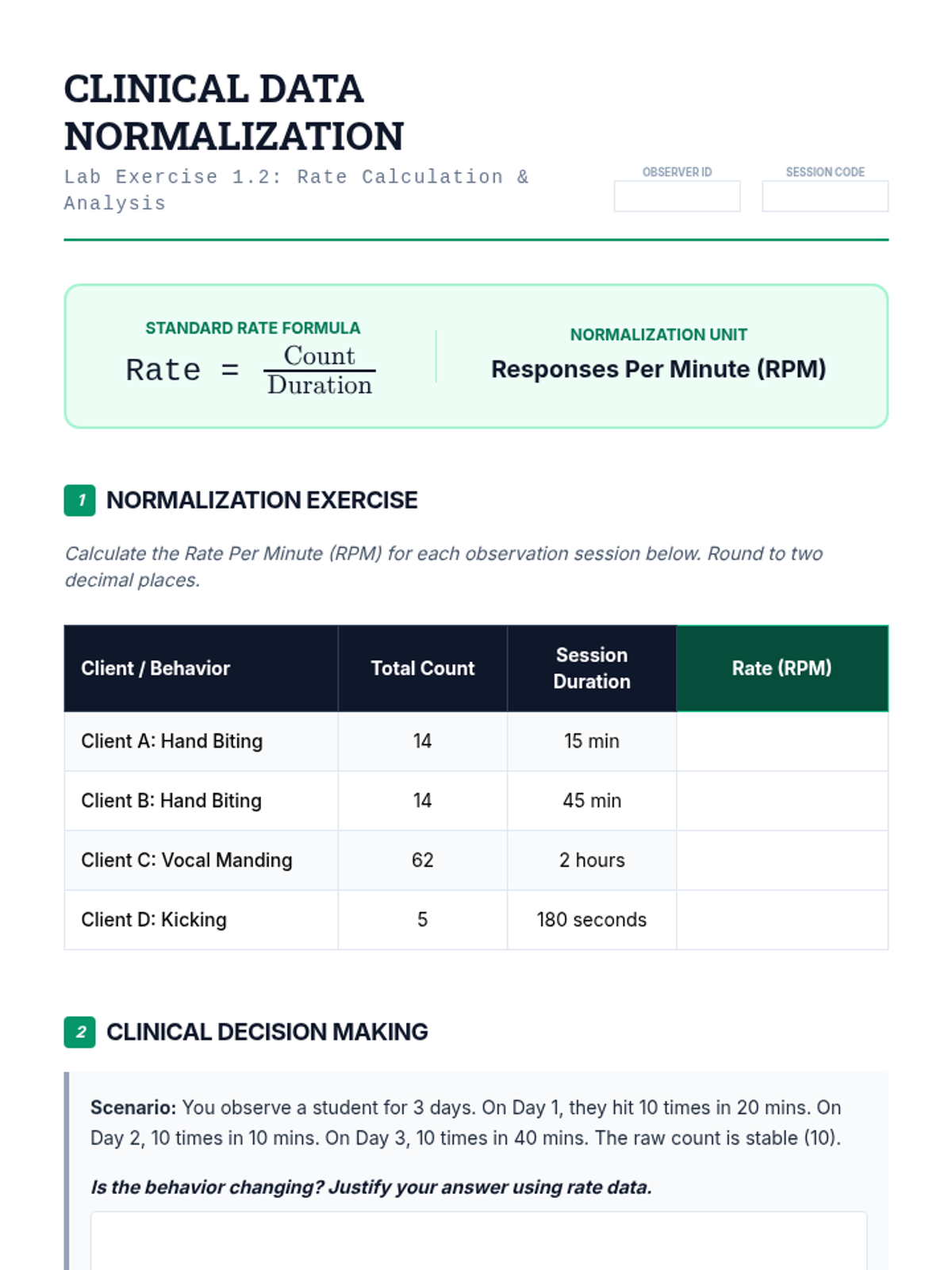 A technical workshop series for graduate students focused on designing valid and reliable behavioral measurement systems. Students master operational definitions, select appropriate measurement dimensions, and calculate Inter-Observer Agreement (IOA) to ensure data quality in clinical and educational settings.