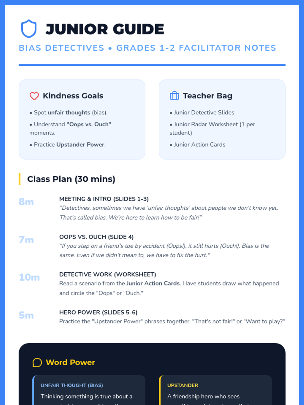 A series of lessons designed to teach elementary students about bias, its impact, and how to be an upstander.