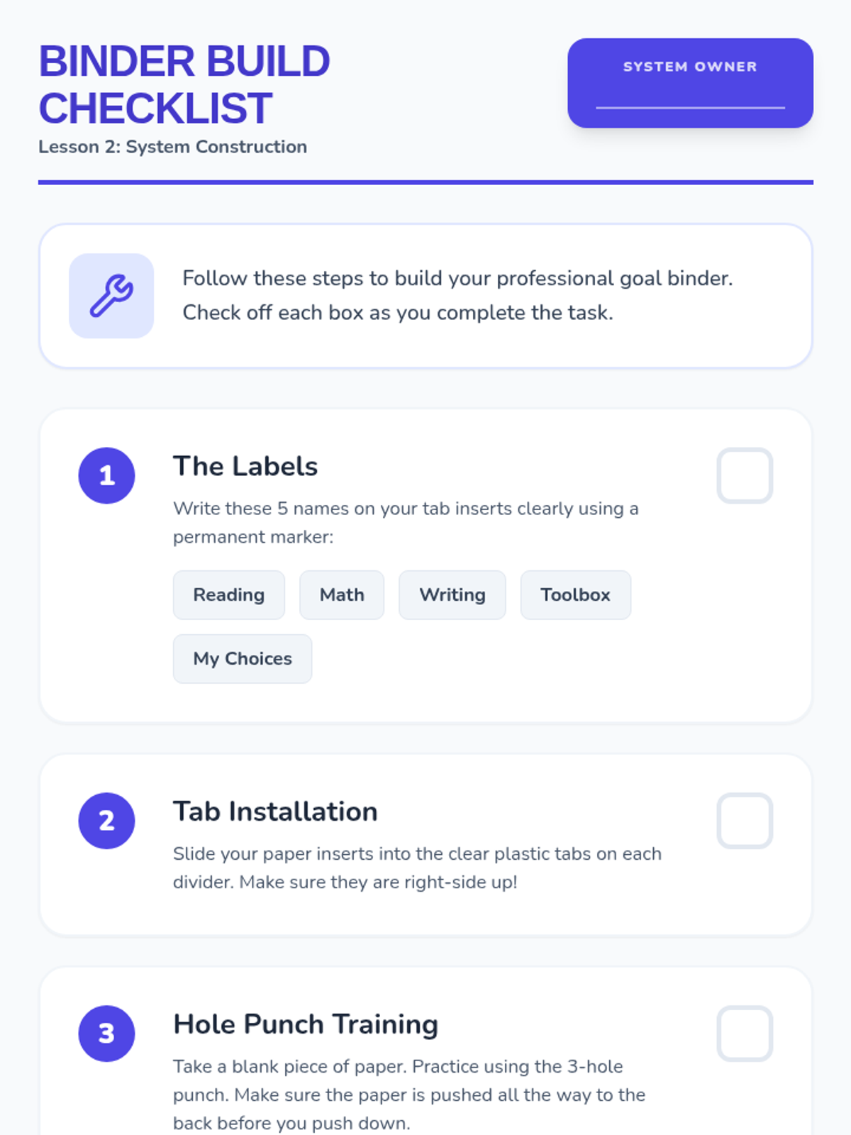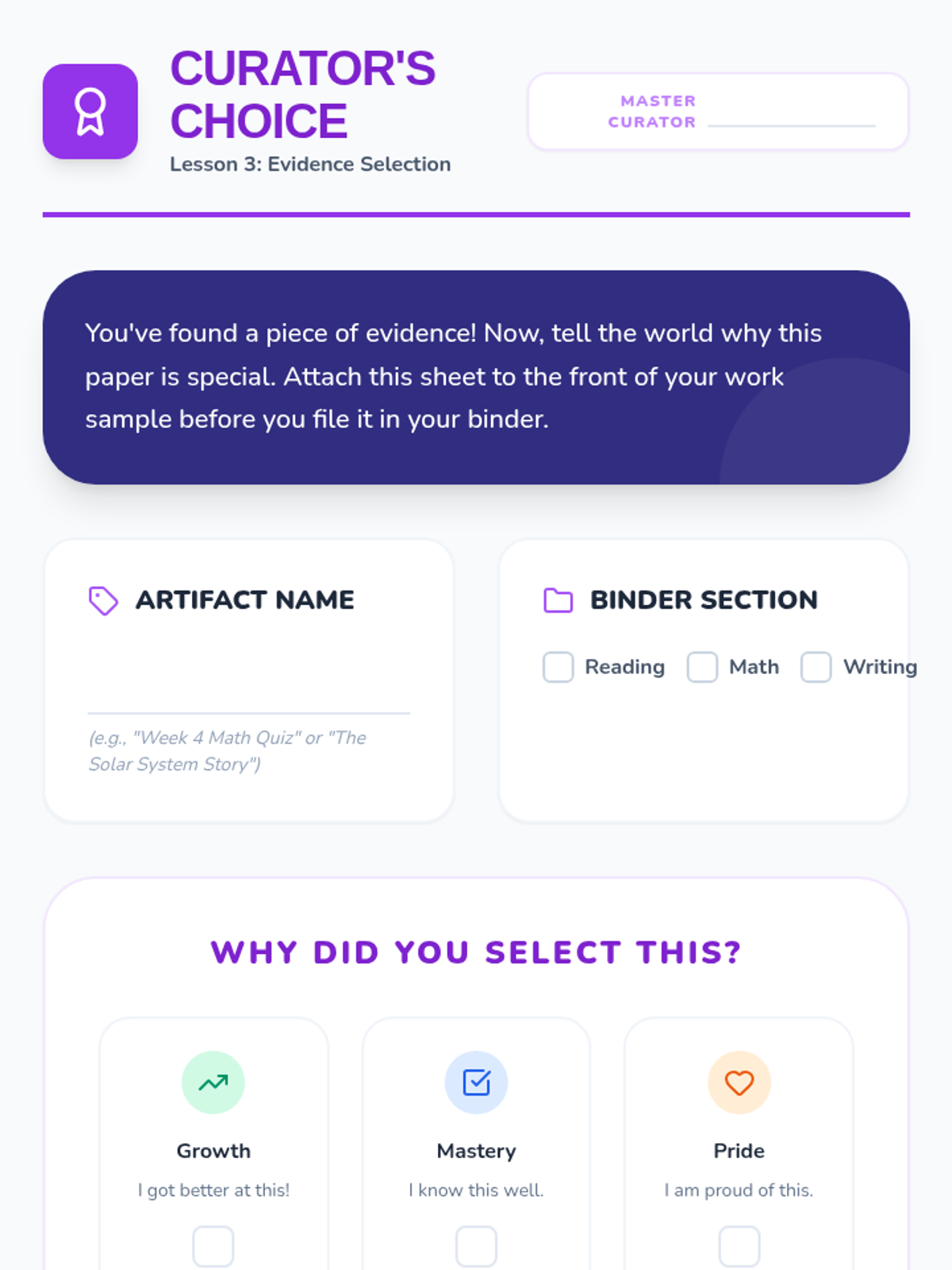 A sequence focused on empowering 4th-grade students to manage their own academic papers and IEP-related goals. Students learn to sort, file, and reflect on their work using a structured binder system, promoting self-advocacy and organization.